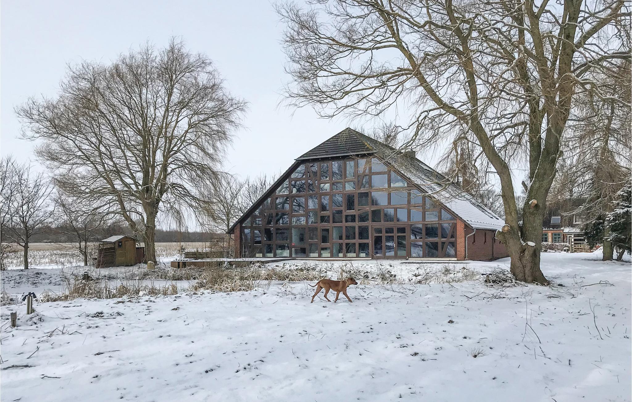 Hele husets forside er en stor vinduesmosaik og giver en betagende udsigt over den omliggende natur. Forskellige former for vildt, harer og rovfugle er en del af udsigten. Indretningen er moderne landhusstil.