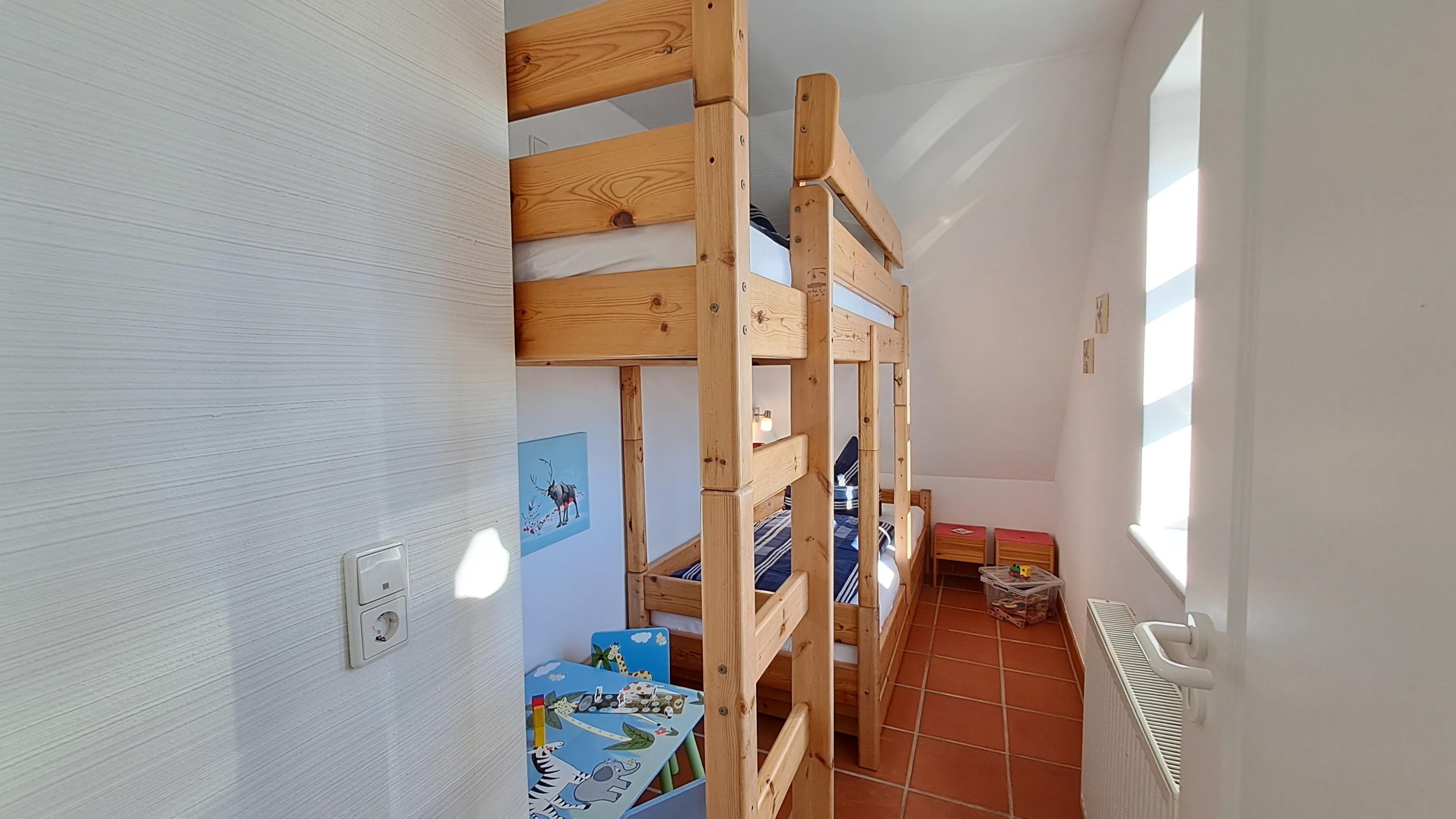- Hochbett (90x200 cm), Spielecke mit Stühlen und Tisch, Steckdosensicherungen