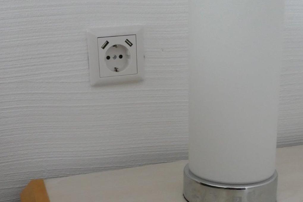 Je eine Steckdose in den Schlafzimmern (und im Wohnbereich) verfügt über USB-Anschlüsse. Dimmbare Nachttischlampen und vom Bett steuerbare Deckenlampen.