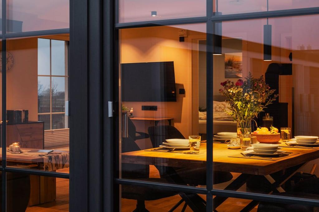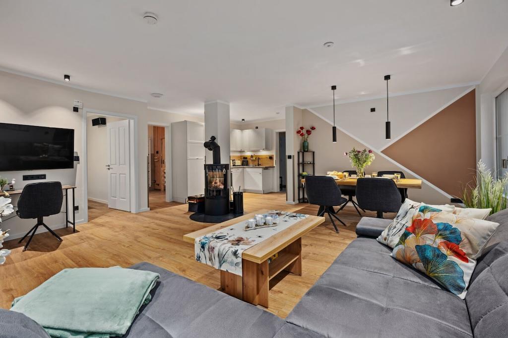NEW in 2024. Luxurious apartment with sauna and fireplace for up to 3 people. Stylishly furnished with smart home equipment. Wallbox, bicycle garage