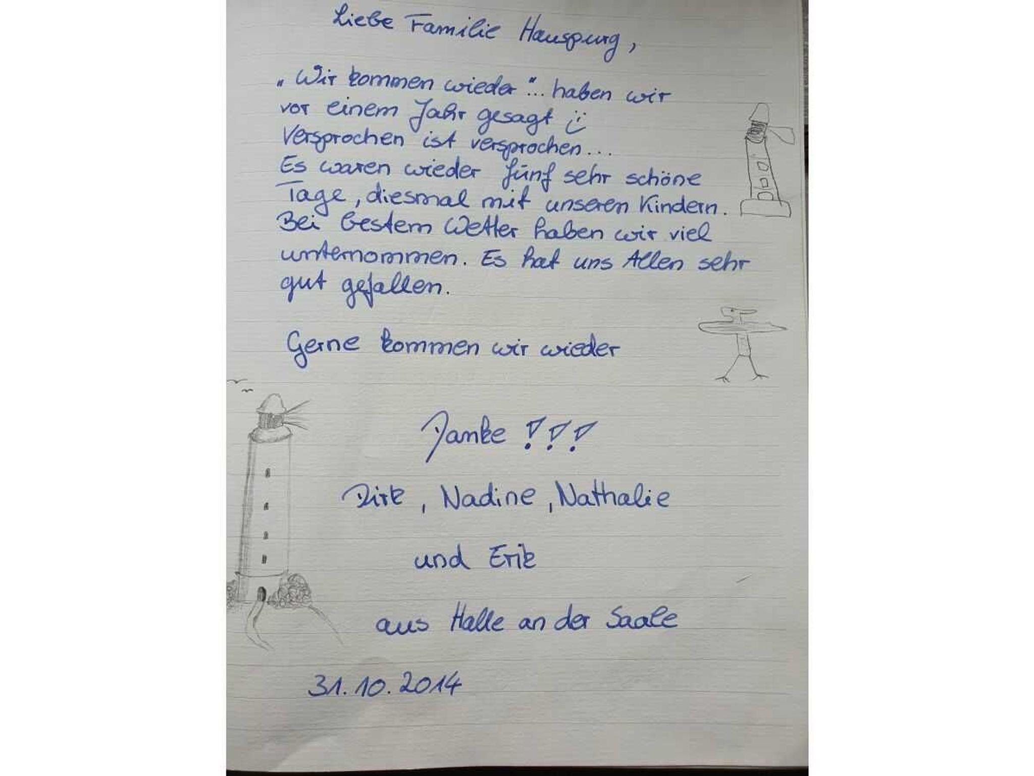 Die weitläufig angelegten Außenanlagen können mit genutzt werden. Spielplätze, Bolzplatz, Volleyballfeld, Tischtennisplatten, Minigolf, Fahrradverleih und Restaurant sind in der Ferienanlage vorhanden, ein Dorfladen mit Brötchenverkauf ist in wenigen Gehminuten erreichbar.