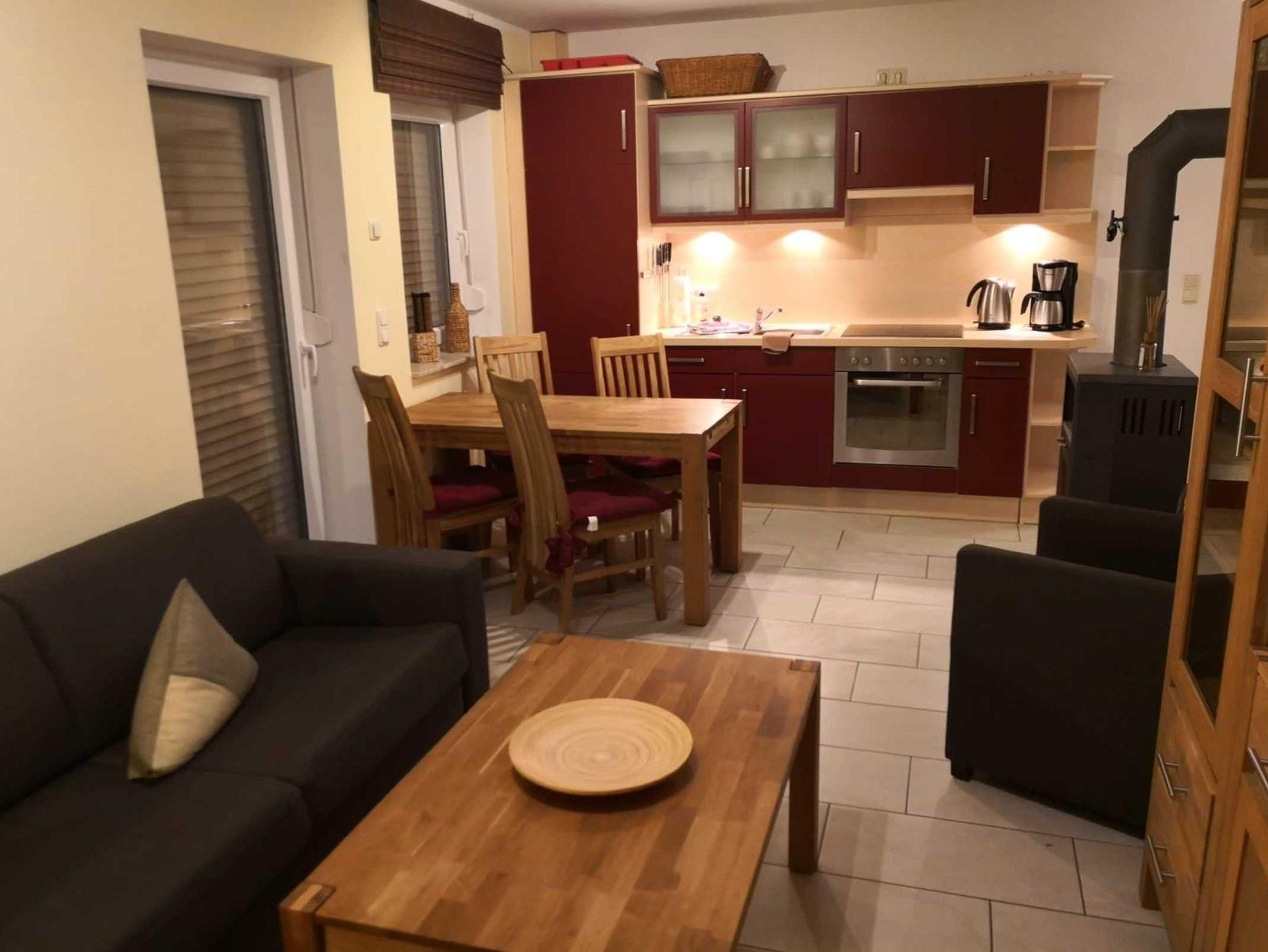 Unsere Nichtraucherwohnungen verfügen über einen großen Wohnraum mit integrierter Küche, Balkon oder Terrasse und separate, Schlafzimmer. Die Wohnungen haben Fußbodenheizung und für gemütliche Abende einen Kaminofen sowie einen Grillplatz und PKW-Stellplatz. Die Küchenzeile im Koch-Wohnbereich verfügt über alles, um sich im Urlaub selbst zu versorgen.