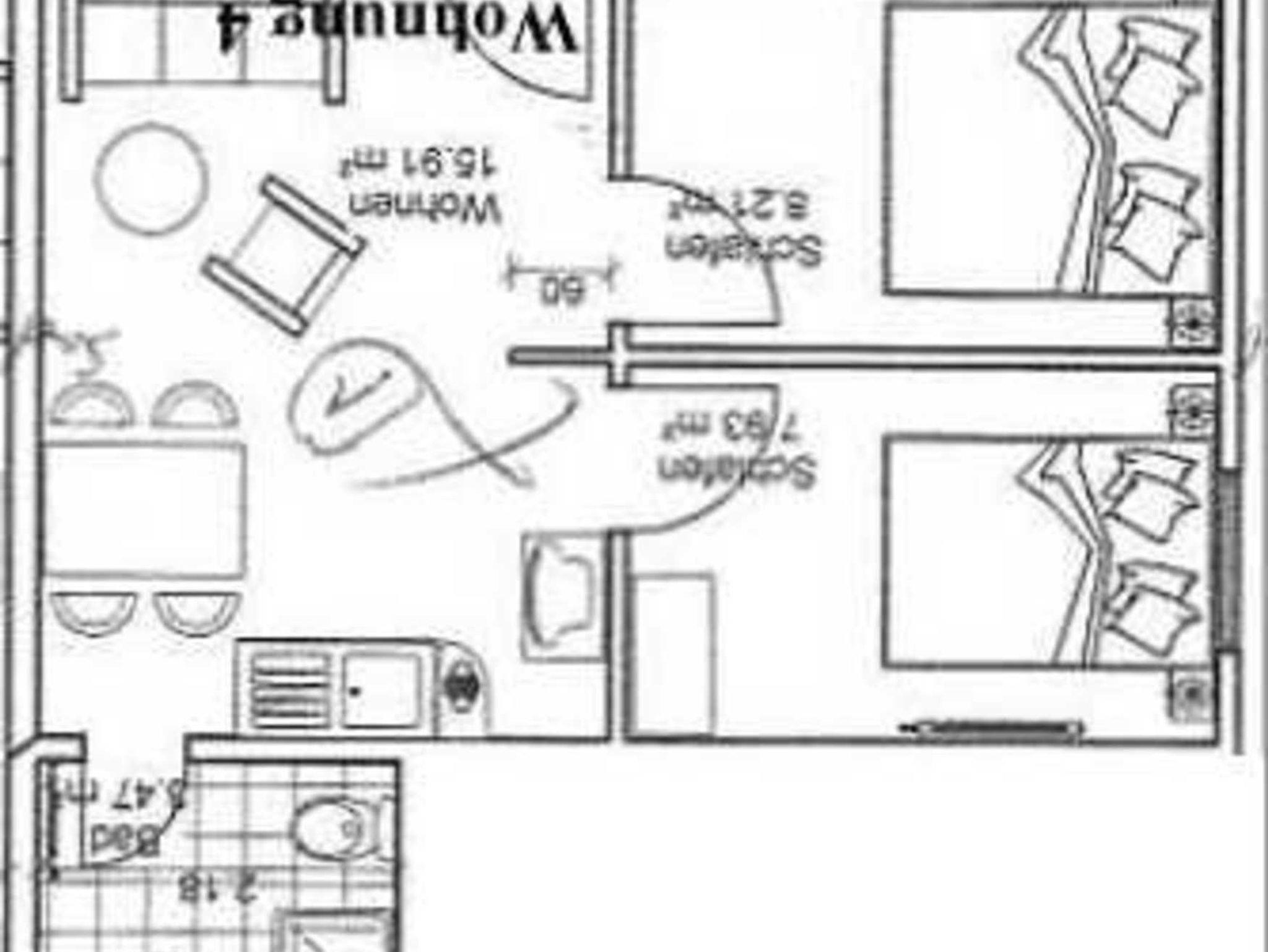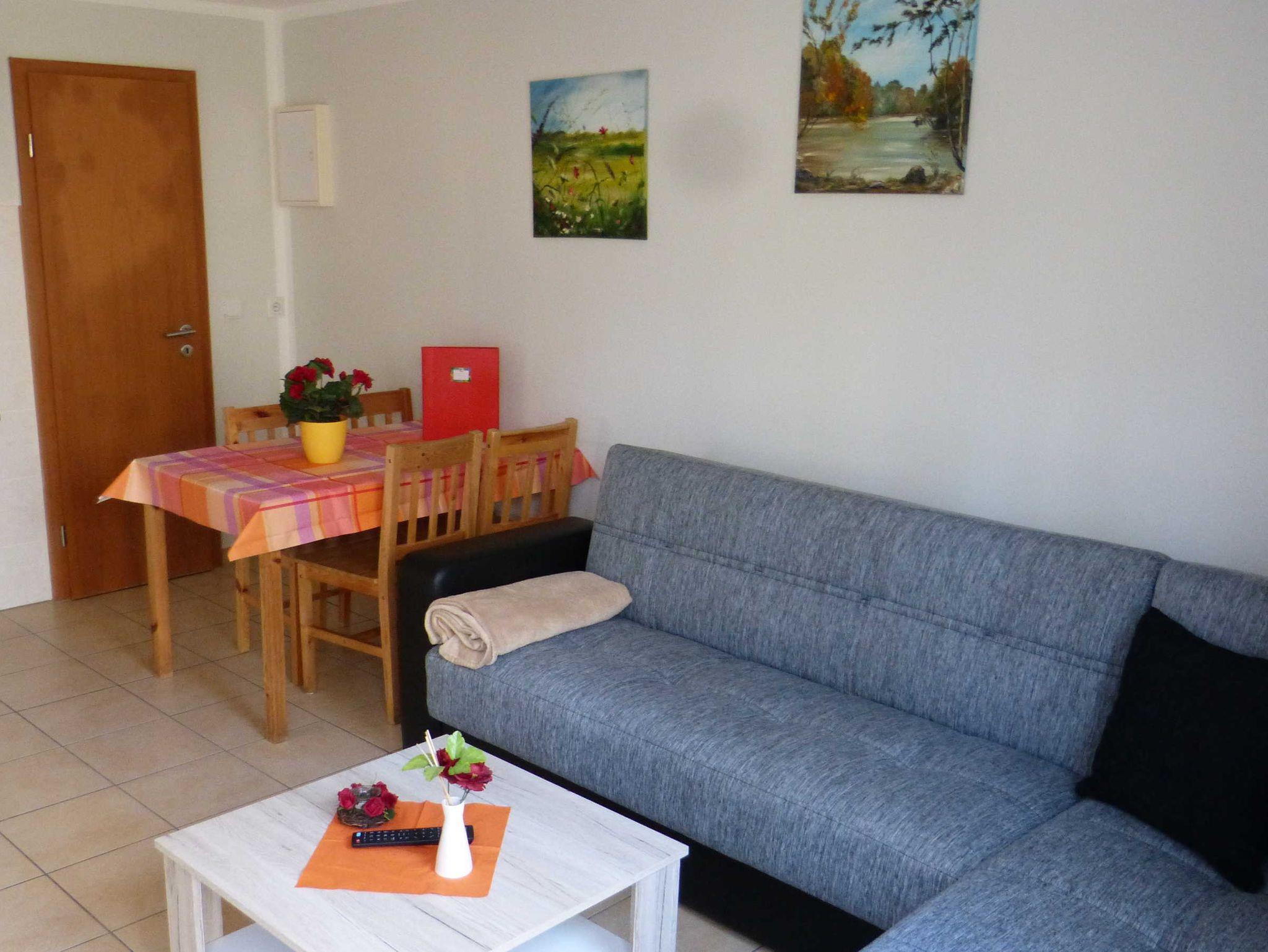 Die Ferienwohnung liegt im Erdgeschoß, hat eine Größe von 36 m² und verfügt über einen Wohnraum mit Pantry, zwei Schlafzimmer mit je einem Doppelbett ein Badezimmer und eine Terrasse. Im Wohnzimmer ist zudem eine Aufbettung möglich (Schlafsofa). In der Miniküche befinden sich zwei Kochplatten, eine Kaffemaschine, ein Wasserkocher, ein Toaster, ein Kühlschrank mit Gefrierfach sowie eine Mikrowelle. Wäsche kann zugebucht werden (Handtuch- Bettwäschepaket 25,00 pro Person). Im Ferienpark kann ein Grill gemietet werden, ebenso ist die Nutzung einer gemeinschaftlichen Waschmaschine möglich (gegen Gebühr).