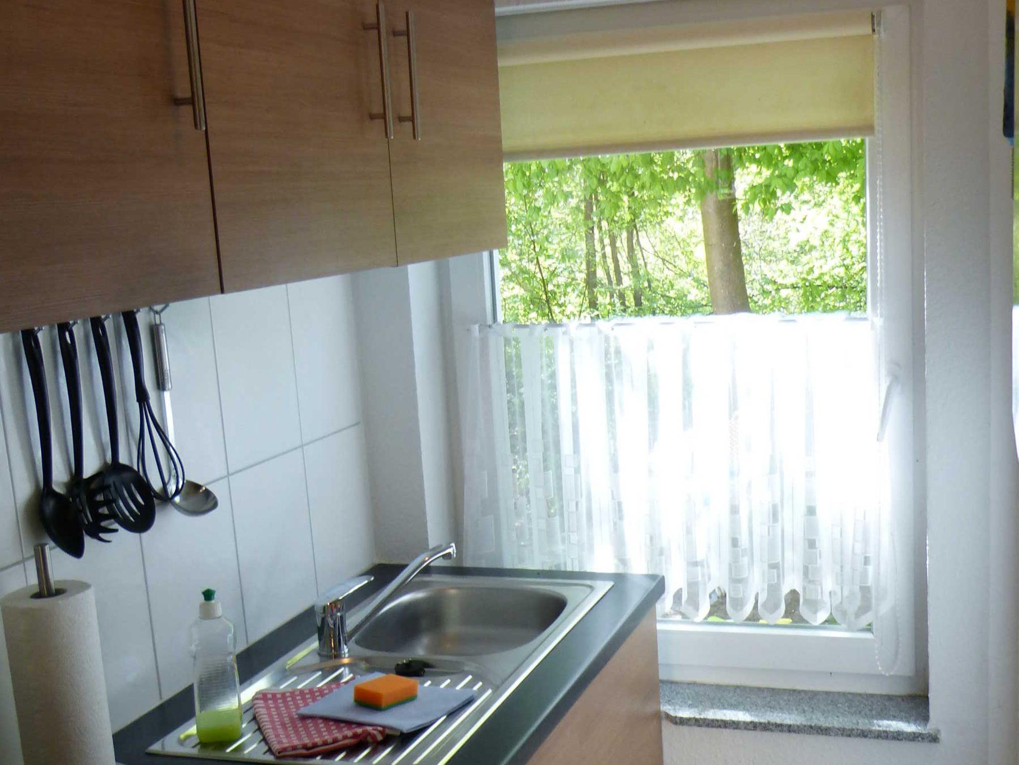 Die Ferienwohnung liegt im Erdgeschoß, hat eine Größe von 44 m² und verfügt über einen Wohnraum mit Pantry, zwei Schlafzimmer (ein Doppelbett, 2 Einzelbetten), ein Badezimmer und eine Terrasse. Im Wohnzimmer ist zudem eine Aufbettung möglich (Schlafsofa). In der Miniküche befinden sich zwei Kochplatten, eine Kaffemaschine, ein Wasserkocher, ein Toaster, ein Kühlschrank mit Gefrierfach sowie eine Mikrowelle. Wäsche kann zugebucht werden ((Handtuch- Bettwäschepaket 25,00 pro Person). Im Ferienpark kann ein Grill gemietet werden, ebenso ist die Nutzung einer gemeinschaftlichen Waschmaschine möglich (gegen Gebühr).