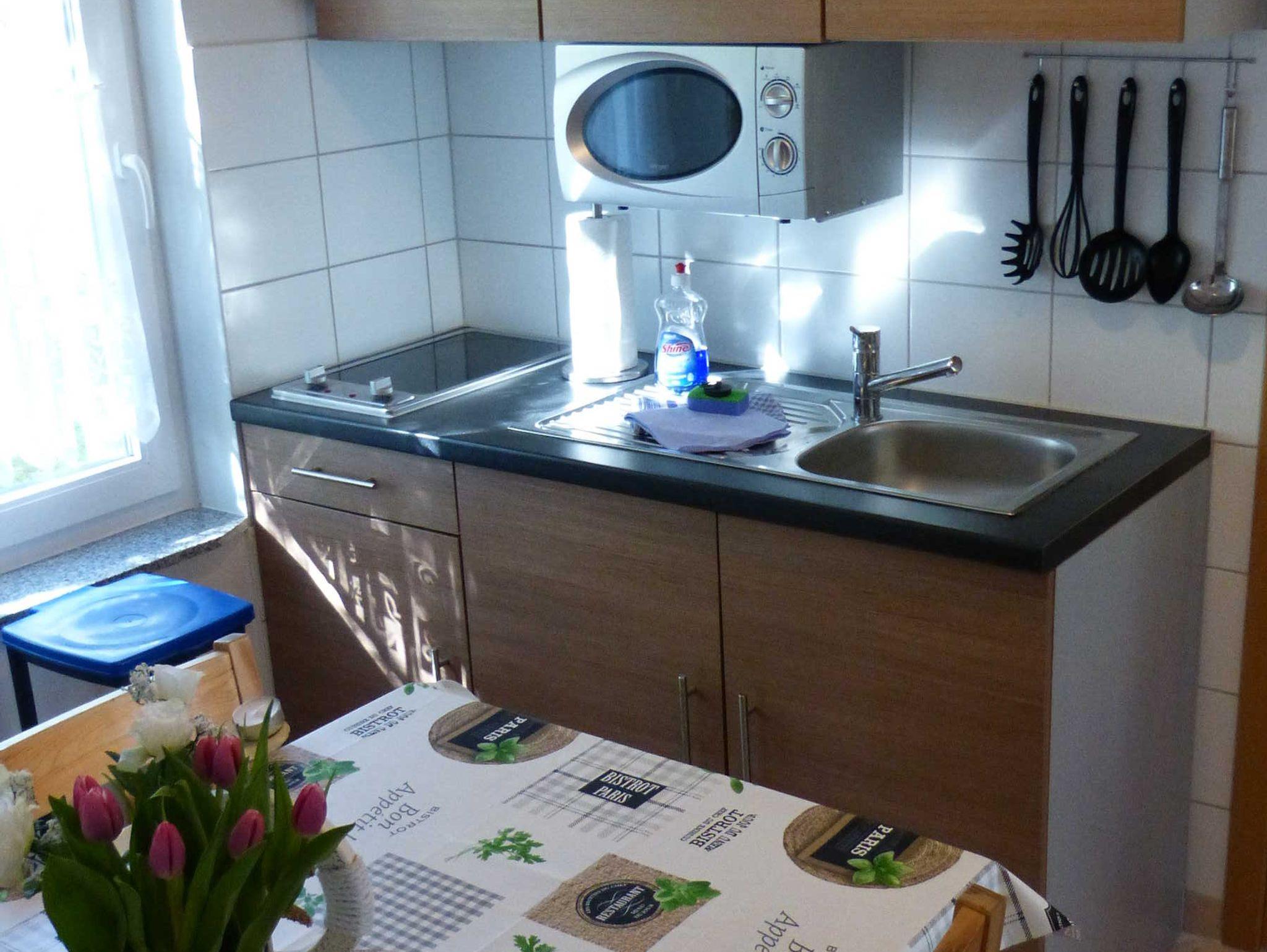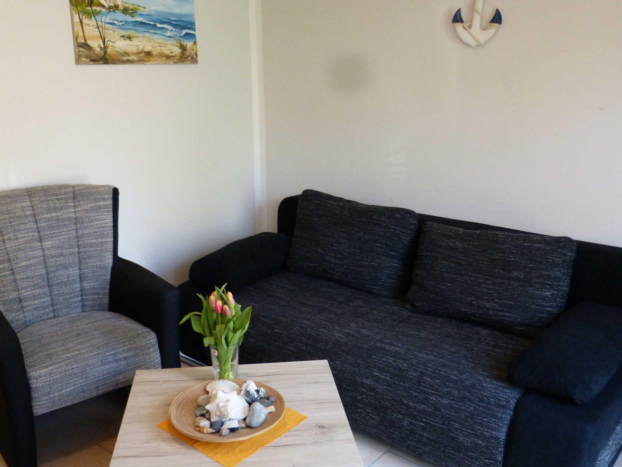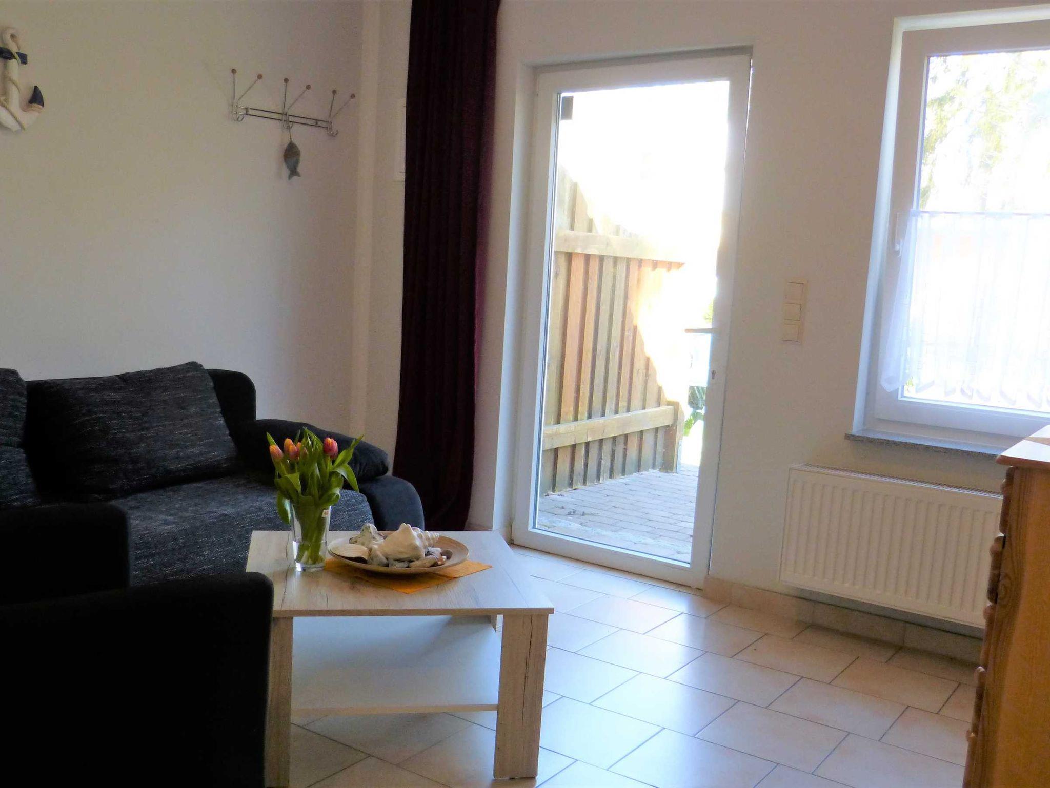 Die Ferienwohnung liegt im Erdgeschoß, hat eine Größe von 36 m² und verfügt über einen Wohnraum mit Pantry, zwei Schlafzimmer (mit je einem Doppelbett), ein Badezimmer und eine Terrasse. Im Wohnzimmer ist zudem eine Aufbettung möglich (Schlafsofa). In der Miniküche befinden sich zwei Kochplatten, eine Kaffemaschine, ein Wasserkocher, ein Toaster, ein Kühlschrank mit Gefrierfach sowie eine Mikrowelle. Wäsche kann zugebucht werden ((Handtuch- Bettwäschepaket 25,00 pro Person). Im Ferienpark kann ein Grill gemietet werden, ebenso ist die Nutzung einer gemeinschaftlichen Waschmaschine möglich (gegen Gebühr).