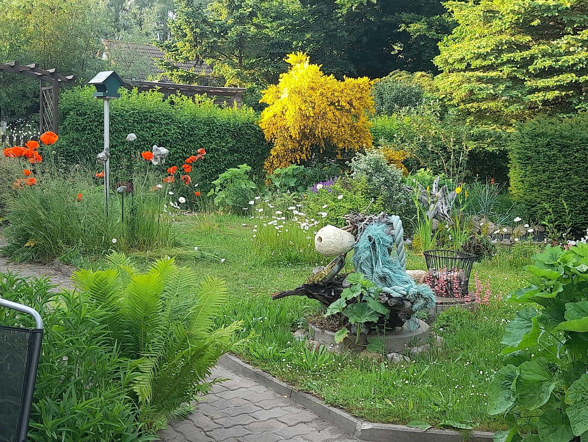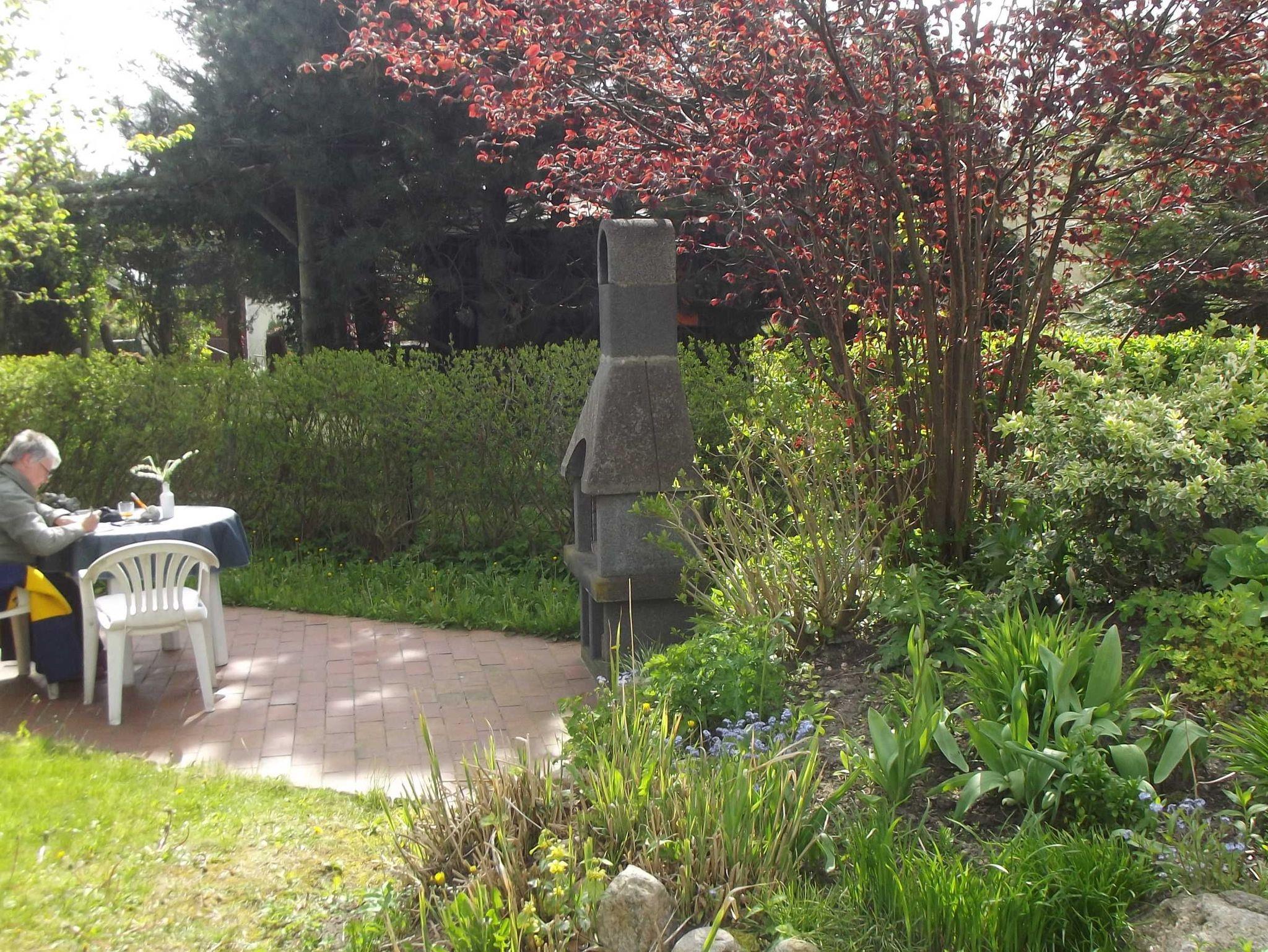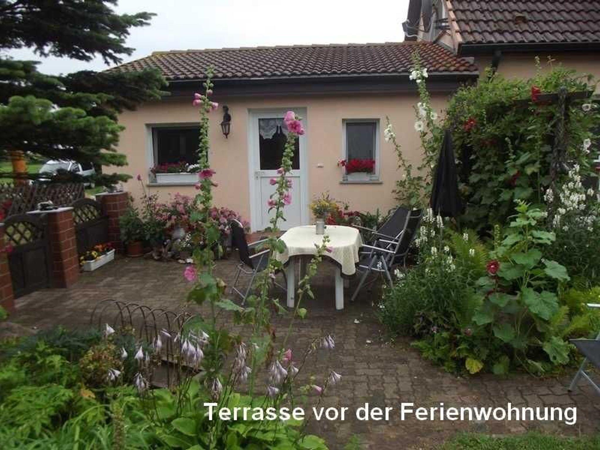 Kleine, idyllisch gelegene Ferienwohnung (ca. 45 qm) mit Blick in den Blumengarten für bis zu 3 Personen. Es gibt ein Familienschlafzimmer mit 1 Doppel- und 1 Einzelbett. Der Wohnbereich ist aufgeteilt in Küche mit Esstisch und gemütlicher Sofaecke. Die Küchenzeile ist ausgestattet mit Kühlschrank und Frostfach, Kochfeld, Geschirrspüler sowie einer Mikrowelle. Ein kleiner Backofen ist auch vorhanden. Es gibt ein Duschbad mit WC. Eine Terrasse schließt sich direkt an die Ferienwohnung an. Ein paar Schritte weiter befindet sich noch eine Grillecke im Grünen.