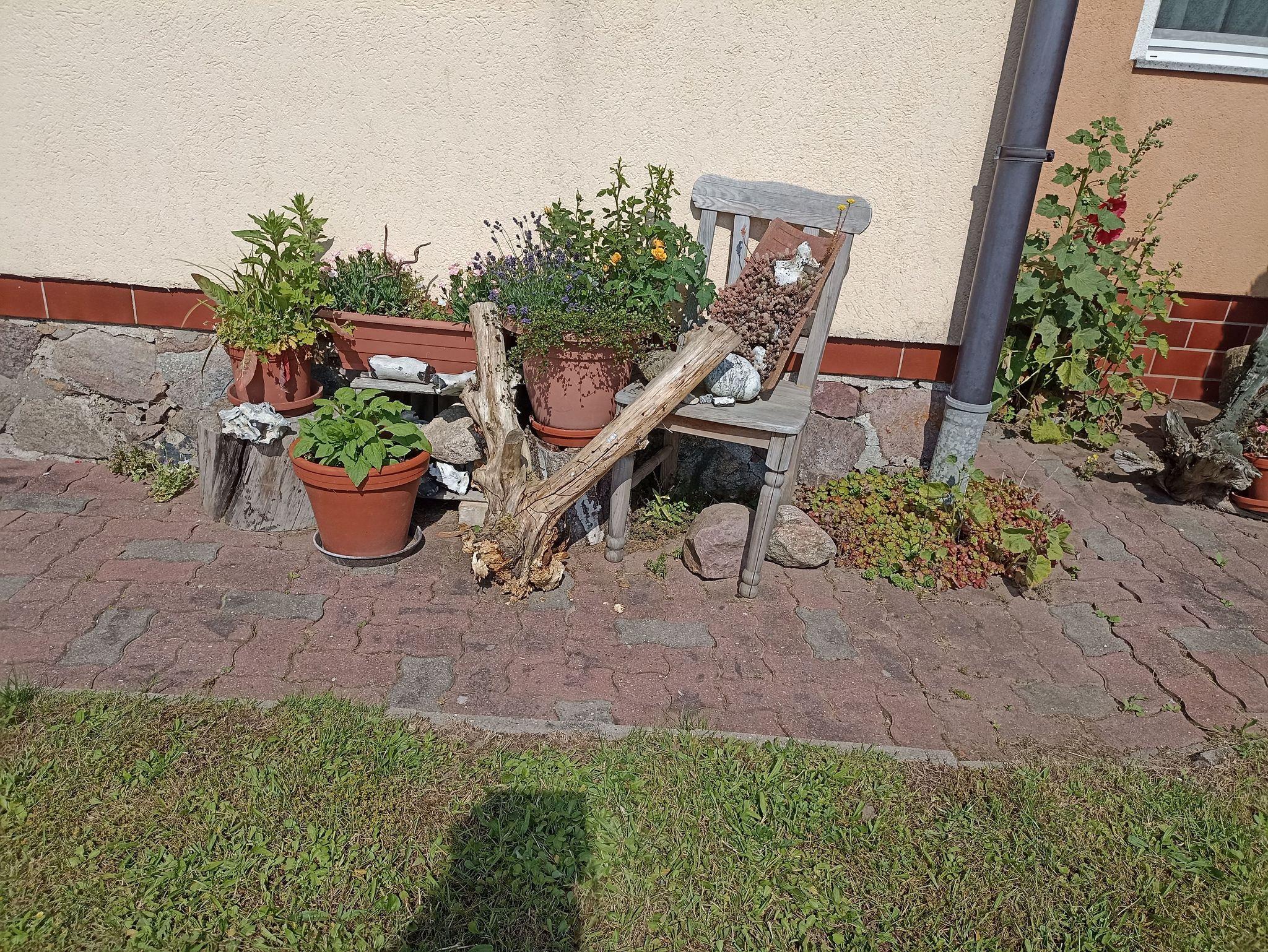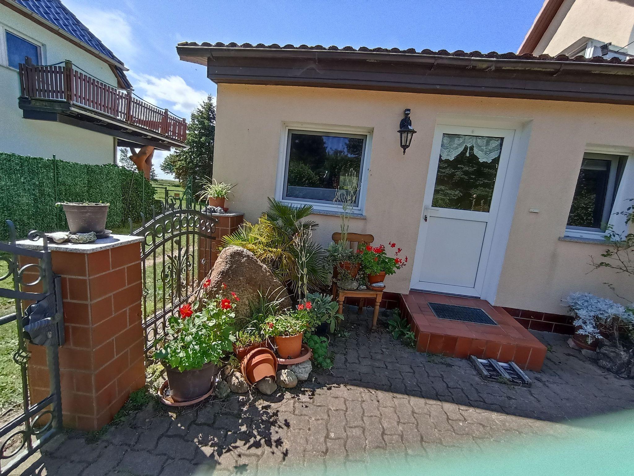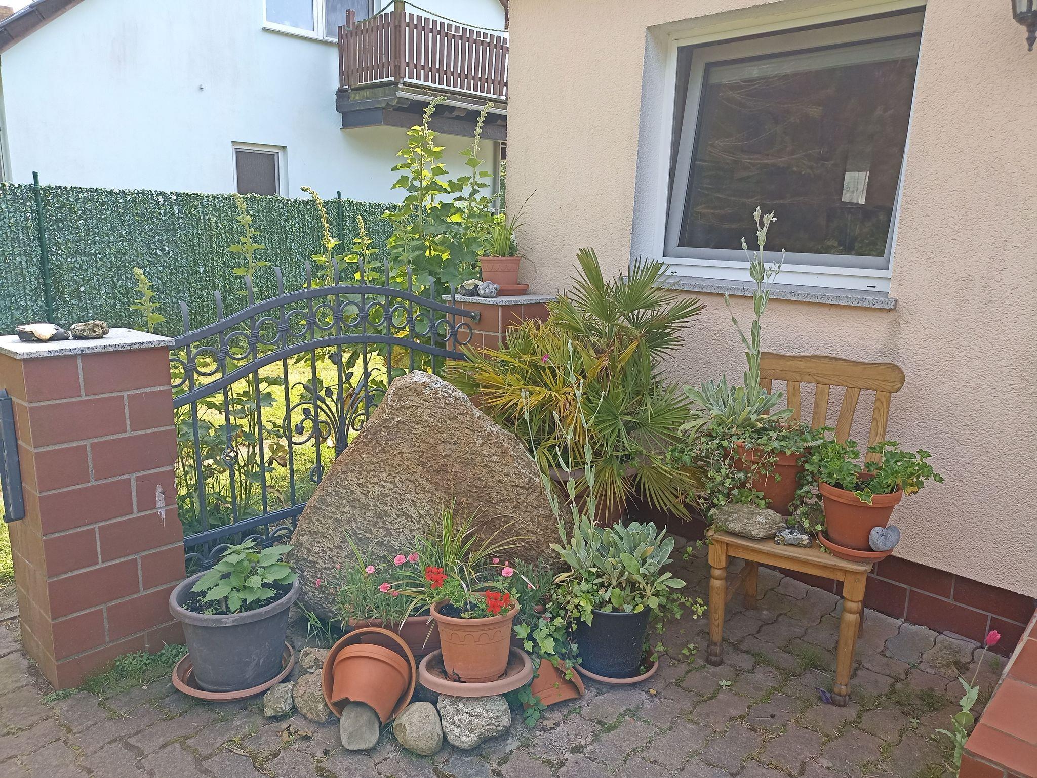 Kleine, idyllisch gelegene Ferienwohnung (ca. 45 qm) mit Blick in den Blumengarten für bis zu 3 Personen. Es gibt ein Familienschlafzimmer mit 1 Doppel- und 1 Einzelbett. Der Wohnbereich ist aufgeteilt in Küche mit Esstisch und gemütlicher Sofaecke. Die Küchenzeile ist ausgestattet mit Kühlschrank und Frostfach, Kochfeld, Geschirrspüler sowie einer Mikrowelle. Ein kleiner Backofen ist auch vorhanden. Es gibt ein Duschbad mit WC. Eine Terrasse schließt sich direkt an die Ferienwohnung an. Ein paar Schritte weiter befindet sich noch eine Grillecke im Grünen.