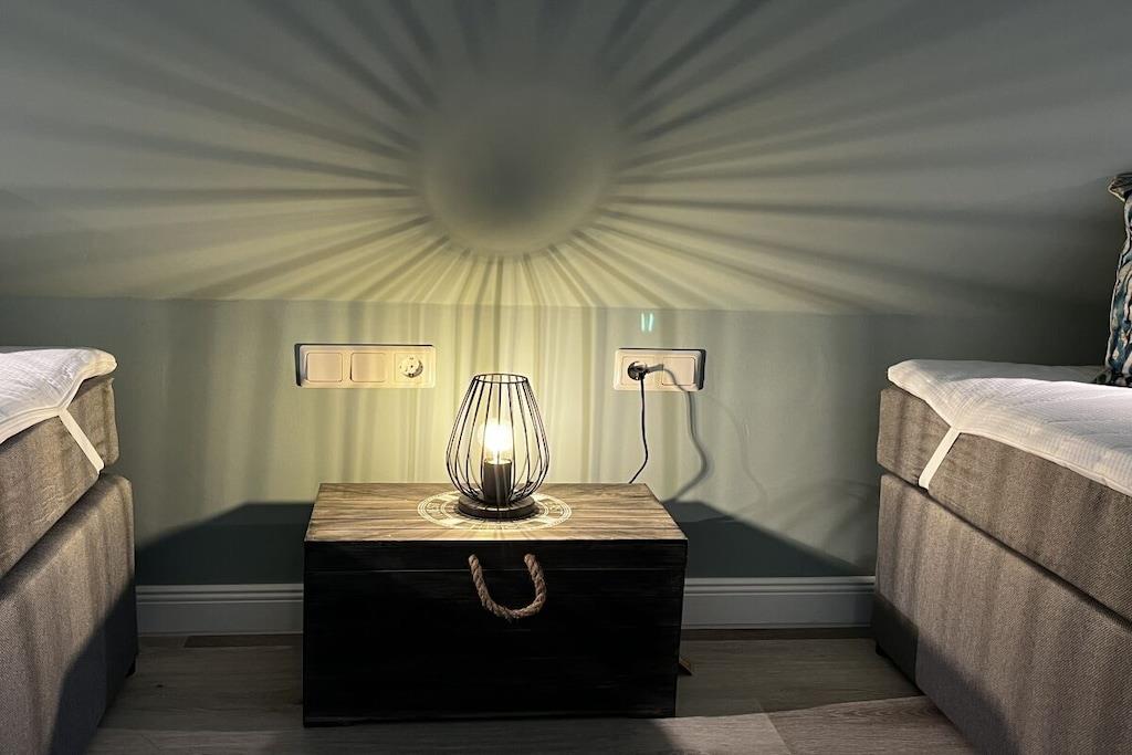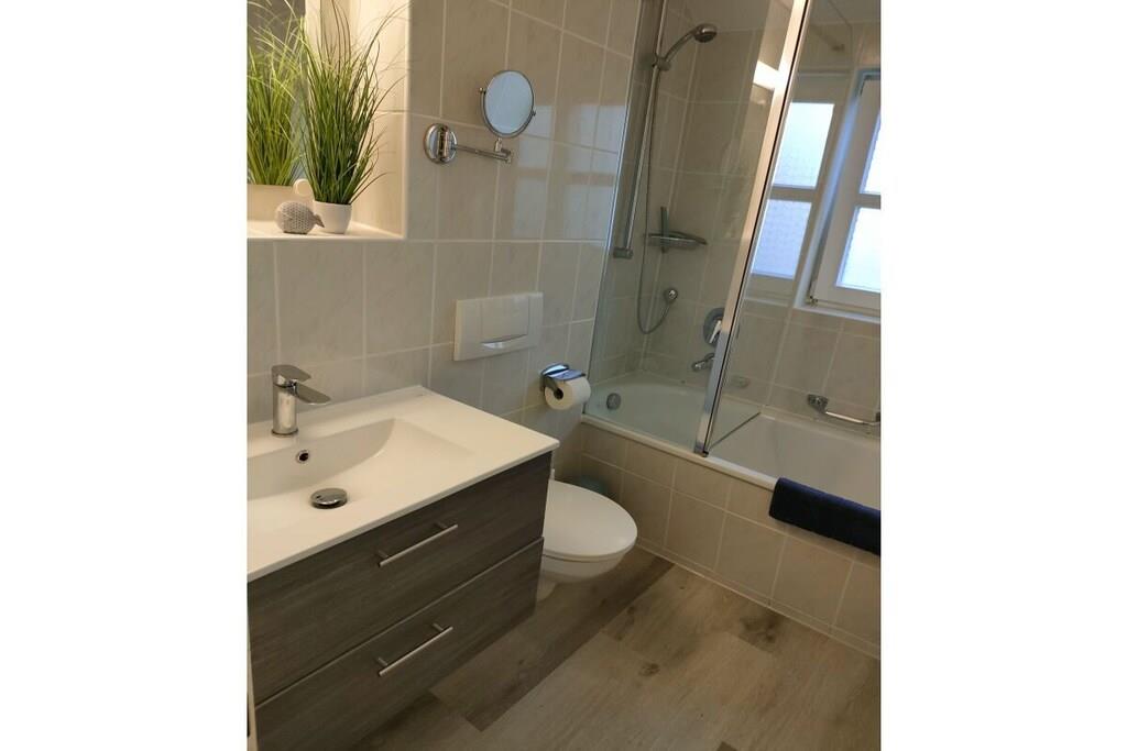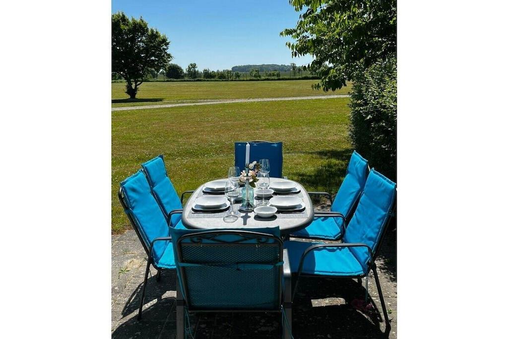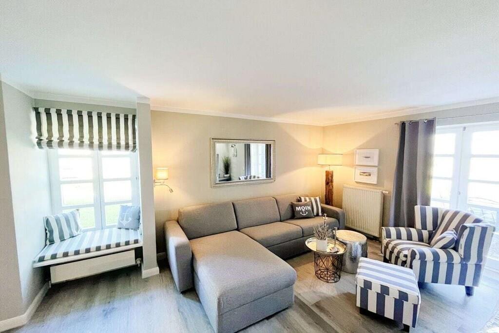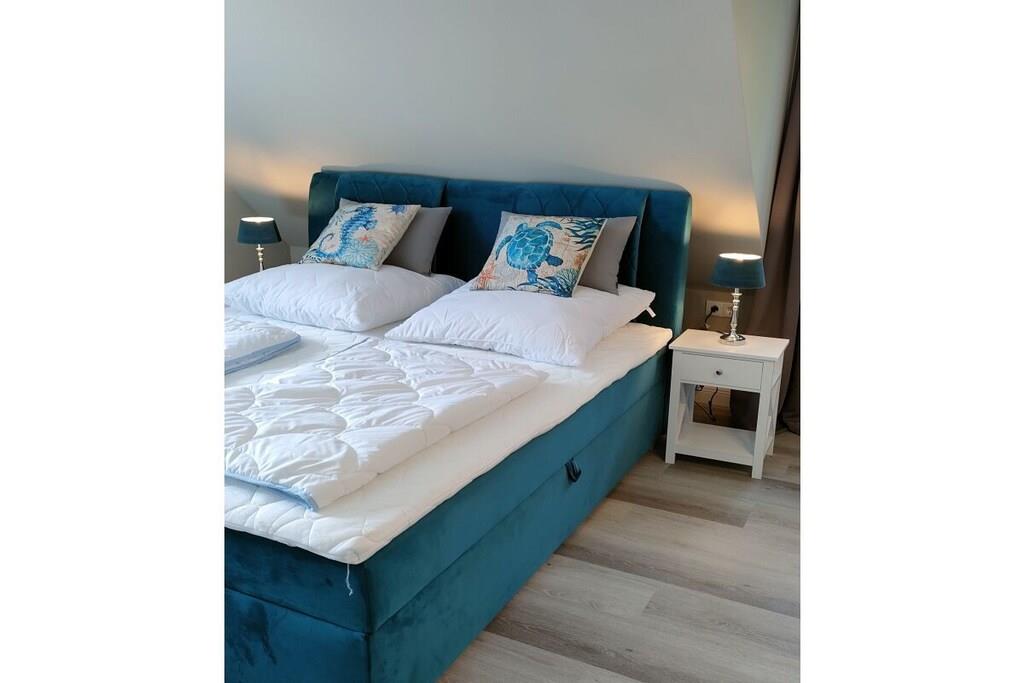 Vores nyrenoverede feriehus RUGIAMARE (Rügenhavet) ligger på grunden af ??feriebyen Bakenberg i landsbyen C 51, i Dranske Nord Rügen, omkring 400 meter fra klipperne og stranden. Den udlejes privat til feriegæster og tilbyder dig, dine børn og sidst, men ikke mindst din hund, et behageligt sted at bo og et skønt sted at løbe rundt. Legepladsen for børn, bageriet og den lille butik i feriekomplekset er naturligvis åbne for dig, ligesom restauranten "Alte Liebe". Huset byder på 75 kvadratmeter boligareal og 3 værelser fordelt på 2 etager. Huset er blevet renoveret og nyindrettet de sidste par måneder! RUGIAMARE har to soveværelser. Inklusiv højkvalitets sovesofa (med madras) nedenunder i stuen er der plads til op til 6 voksne eller børn. Til meget små børn er en foldbar babyseng også tilgængelig. Nedenunder er der et lille, men moderne, fuldt udstyret køkken med opvaskemaskine, køleskab, keramisk kogeplade, ovn-mikroovn kombination, kaffemaskine og vaskemaskine-tørretumbler. I samme plan ligger den hyggelige og stilfuldt indrettede opholds- og spiseafdeling samt et gæstetoilet ved siden af ??entréen. De to soveværelser med dobbeltsenge med boxspring eller to enkeltsenge er på øverste etage. De indbyggede skabe giver masser af opbevaringsplads til tøj, kufferter og andre ting. Du vil nyde den smukke udsigt over Bodden og landskabet gennem kviste! Badeværelset med badekar/bruser kombination er også placeret ovenpå. RUGIAMARE er udstyret med Wi-Fi, to moderne fladskærms-tv og et moderne lydsystem. Huset modtager varme og varmt vand fra fjernvarme i hele anlægget. Alt er der, der skal til for en ubekymret og afslappende ophold på RUGIAMARE på ethvert tidspunkt af året. Når du træder udenfor fra opholdsstuen (sydsiden), befinder du dig på en 14 kvm terrasse udstyret med havemøbler og grill. Udearealet omfatter desuden to parkeringspladser inden for synsvidde og to cykelstativer lige udenfor hoveddøren. Nyd de rummelige grønne omgivelser! RUGIAMARE er en del af en sammensætning af sommerhuse i bindingsværk/landhusstil, som er samlet omkring et lille landsbytorv. Dette bidrager til den idylliske stemning på stedet. Blot et par hundrede meter længere kan du opdage Kreptizer Heide over klipperne, eller lige så tæt på kan du tage trappen ned til den omfattende sandstrand, som indbyder til at blive hængende, svømme eller gå en tur på stranden, selv med din hund. Og sidst, men ikke mindst, har du et vidunderligt udgangspunkt for udflugter i det omkringliggende område og til andre attraktive destinationer på Rügen. VELKOMMEN til RUGIAMARE