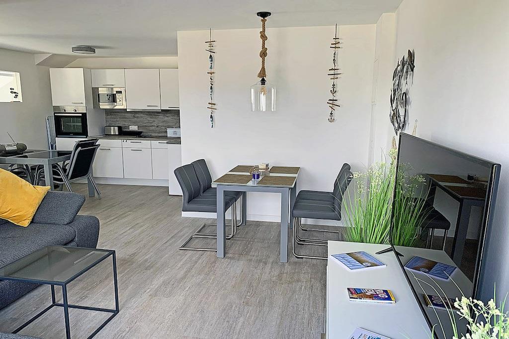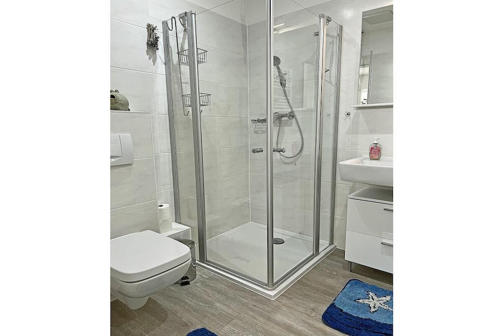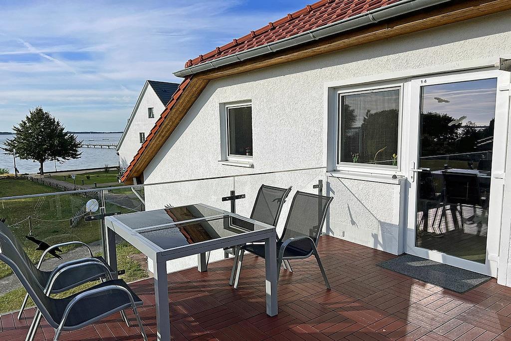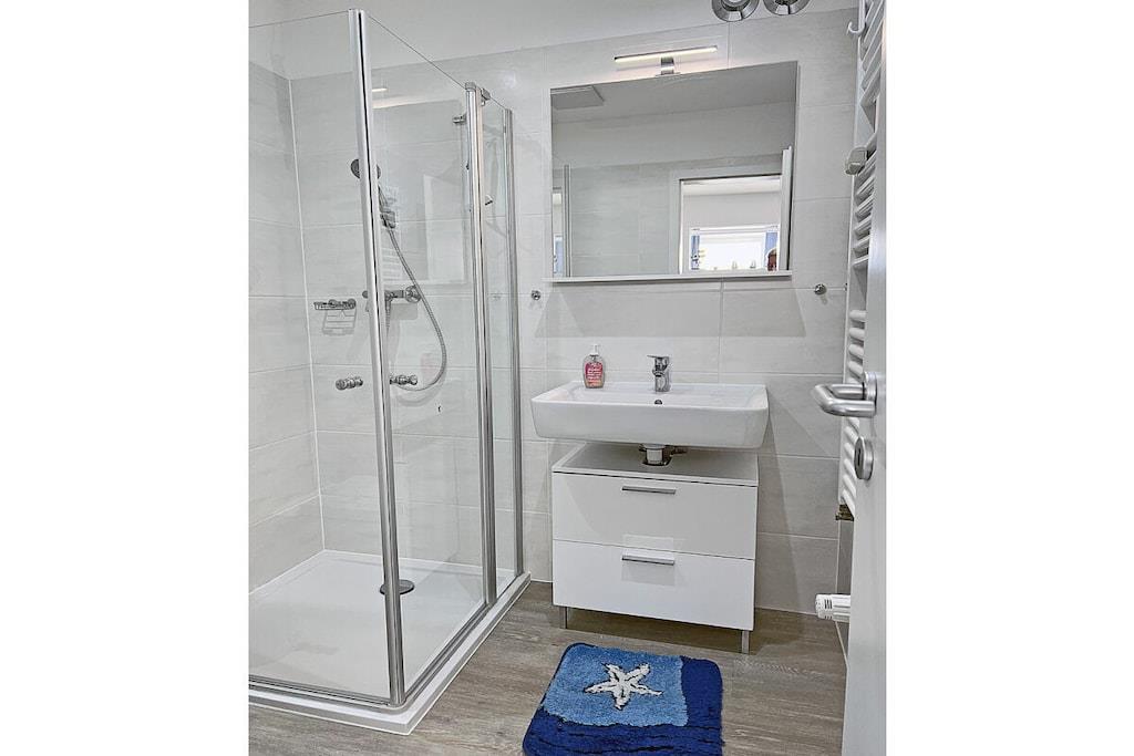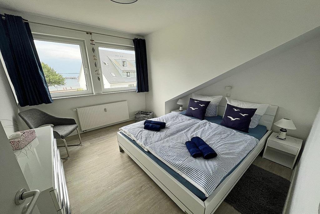 Hochterrasse: moderner Wohn- Essbereich mit Terrassenzugang, gemütlicher Couch, TV/ Sat (Flatscreen), Bücher und Gesellschaftsspiele für gemütliche Abende, offene komplett ausgestattete Einbauküche mit 2- Plattenherd (Ceranfeld), Backofen, Kühlschrank mit kleinem Gefrierfach, Geschirrspüler, Mikrowelle und diversen Elektrogeräten, 1. Schlafzimmer mit Doppelbett (2 Matratzen je 80 x 200) und Kleiderschrank, 2. Schlafzimmer mit Doppelbett (2 Matratzen je 80 x 200), Sideboard mit viel Stauraum, Bad mit Dusche, WC, Fön Außenbereich: schöne sonnige Hochterrasse (linke Seite offen ohne Sichtschutz) mit Meerblick und bequemen Gartenmöbeln für 4 Personen, Elektrogrill vorhanden Besonderes: Ihre Auszeit im Norden von Rügen in unserer neuen Ferienwohnung „Lütt Matten” Die Ferienwohnung ist komfortabel und modern eingerichtet. Der Badestrand ist nur 50 m entfernt und geht sehr flach ins Meer über und ist somit sehr gut für Kinder geeignet. Der Ostseestrand ist 1 km entfernt. Die sonnige Hochterrasse mit ca. 20 m² (Doppelnutzung mit der Nachbarwohnung-ohne Sichtschutz) mit herrlichem Boddenblick lädt zum Verweilen und Entspannen ein. Die Ferienwohnung „Lütt Matten“ ist eine Nichtraucherwohnung. Es gibt einen eigenen großen PKW-Stellplatz direkt am Objekt. Einkaufsmöglichkeiten, Bäcker, Restaurants befinden sich in unmittelbarer Nähe. Es gibt optimale Rad- und Wandermöglichkeiten um die Insel zu erkunden. Nur 80 m entfernt ist ein Anlegesteg für Schifffahrten nach Hiddensee und ca. 250 m entfernt gibt es die Wassersportschule „Rügen-Piraten“, bei der man auch Equipment für Kayak, SUP, Segeln, Kiten und Windsurfen ausleihen kann. Reitmöglichkeiten in 5 km Entfernung beim „Pferdezentrum Balance“ und in 10 km Entfernung der „Reiterhof-Schwarbe“ mit Boddenritt und Ponyführen für die Kleinen, runden das Angebot ab. Haustiere sind bei uns leider nicht erlaubt.