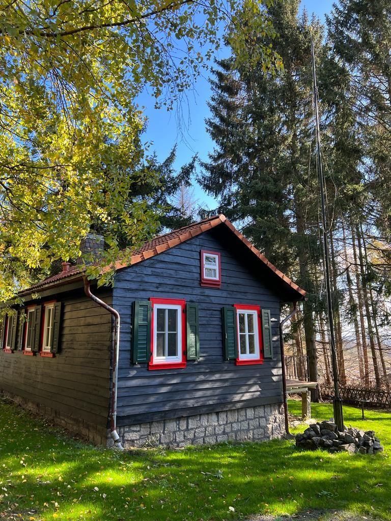 Im Wald bei Drei Annen Hohne, ca. 12 Kilometer westlich von Wernigerode steht die Steinbachhütte 1.