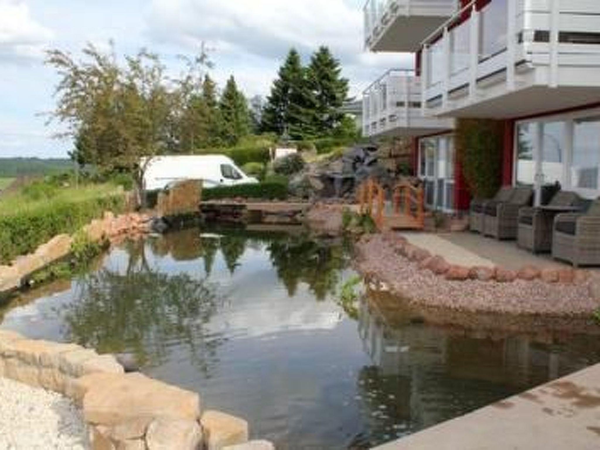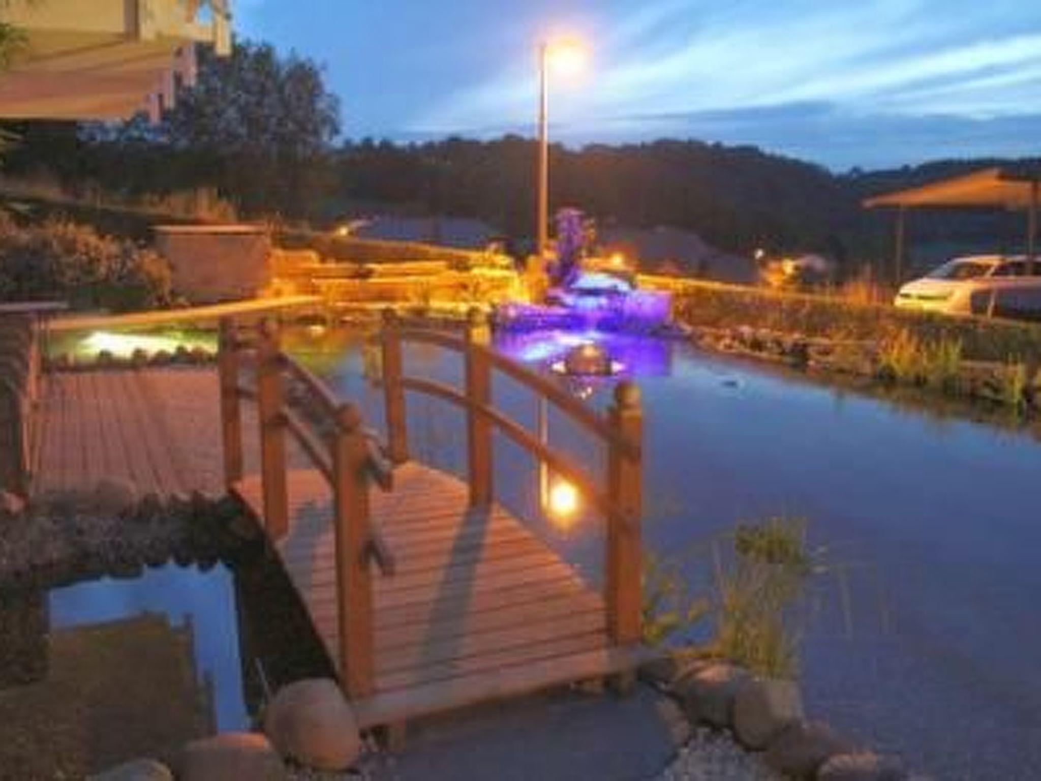 Maarberg Resort, Maaridyll holiday flat Stylish holiday flat in the "Maarberg Resort" apartment complex in Schalkenmehren am See, with steam shower! New: 2-person jacuzzi (whirlpool) in the sauna room can be used free of chargeThe "Maarberg Resort" apartment complex has been completely renovated and refurbished. It is beautifully situated on the outskirts of Schalkenmehren am See, on a hillside at the edge of the forest. The lake and village centre are only about 400m away. You can enjoy the beautiful view of the lake from many of the holiday flats in the Maarberg Resort. Each flat has WLAN/WIFI internet access (free of charge). House with new sauna (also for private use) New: 2-person Jacuzzi (whirlpool) in the sauna room can be used free of charge! The beautiful outdoor facilities with ornamental ponds and waterfalls will delight you! Holiday flat Maaridyll in the Maarberg ResortElegant, completely newly furnished holiday flat for 2 to 6 people. Approx. 54 m² living space, balcony facing the lake and lower ornamental pond with a wonderful panoramic view of the lake, the two ornamental ponds, the waterfalls, streams and the ornamental gravel area.the Maaridyll holiday flat is on the ground floor (no stairs). In the beautiful living room you will find a new sofa set with bed function and a large 127 cm HD/3D TV. Large selection of TV and radio stations in many languages from 4 different satellites. There is also a 3D Blueray player and DVD player. There is also a music system with radio, CD etc. There is free internet access with WIFI (Wlan). The bright and friendly furnished flat conveys a natural flair with lots of wood and stone. In addition, the electric fireplace and an elegant ceiling fan create a special, cosy atmosphere. So you get a special holiday atmosphere even on cold and wet days.it is a non-smoking flat (smokers please use the balcony or outdoor area)The new fitted kitchen has a 4 plate cooker (ceramic hob) and oven, dishwasher, fridge with freezer compartment, microwave, 2 coffee machines (filter and pad machine, Bosch-Tassimo). Toaster, kettle etc. Pots and pans as well as cutlery and crockery for the maximum possible number of people are of course available. A cot and high chair can be provided free of charge and the dining area is suitable for up to 6 people. The holiday flat has 2 separate bedrooms with high-quality box-spring beds (180 cm x 200 cm and 140 cm x 200 cm). So nothing stands in the way of a good night's sleep. There are also full-length mirrors in the bedrooms and a new double sofa bed in the living room as an additional sleeping option. The bathroom has a modern steam shower and the bright bathroom has a modern steam shower. Pamper yourself with light therapy and many other functions. The steam shower is equipped with a rain shower, side massage jets, foot massage and LED's. The blue illuminated floor LED's throughout the bathroom provide a great atmosphere. A large, illuminated mirror, a hotel hairdryer and bathroom scales are available. Modern, chrome heating with towel warmer. The flat has a lovely balcony with lounge chairs and a cocktail or coffee table. New: Large sliding windows to the balcony New: Hanging chair facing the lake on the balcony If you would like to eat really well on the balcony, you will find another dining table as a folding table ready to take away on each floor. The flat has central heating and of course a separate entrance. In the house: entrance hall with reception. You will find the new sauna in the basement of the "Maarberg Resort". You can also use the new sauna on your own (lockable). New: 2-person Jacuzzi (whirlpool) in the sauna room can be used free of charge! Also in the basement a room with washing machine, tumble dryer, iron and ironing board. In the reception hall you will find hiking maps, postcards and free information material on the many excursion destinations and leisure activities in the region. There is also a drinks fridge in the reception hall with drinks to take away on a trust basis. Large aquarium in the entrance area / reception. The outdoor area will inspire you! Two beautifully and elaborately designed ornamental ponds with koi and other fish, 2 waterfalls, 2 streams and a well-kept ornamental gravel area are part of the complex. The outdoor facilities are romantically illuminated in the evening. There are also turtles in the ponds. Sit comfortably with a coffee or a cocktail on the balcony or terrace and watch the fish and turtles. Or gaze down into the valley over the lake and find plenty of parking spaces and a bicycle storage area outside. There is a barbecue area with a view of the lake behind the house. There are good restaurants, cafés and a shopping centre in the village. In the district town of Daun, 5 km away, you will also find many shopping facilities and supermarkets.Brief descriptionOther : Non-smoking houseShort description 1Number of kitchens : 1Bedroom 1Other bedroom furnishings : Box spring bed 1.80 m wideBedroom 2Other bedroom furnishings : Box spring bed 1.40 m wideKitchen 1Other kitchen furnishings : 2 coffee machines, pad and filter, dishwasher, all newly furnishedSurroundingsLeisure facilities : Car hire, boat hire, bicycle hireSports facilities in the surrounding area : Fishing, football pitch, ice skating, golf course, hunting, canoeing, climbing, mountain biking, paragliding, bicycle tours, riding stables (guests), riding hall, riding arena / riding possibilities, tobogganing, rowing, skiing (cross-country), skiing (alpine), sports centre, squash, surfing, tennisSurroundings 1Location description : Description of the holiday resort, the holiday region and the surroundingsSchalkenmehren is a very beautiful and well-known tourist resort with approx. 600 inhabitants at an altitude of approx. 450 metres, situated directly on the Schalkenmehrener Maar (crater lake).in addition to the many water sports facilities, swimming, fishing, boating etc., you can expect a variety of beaut