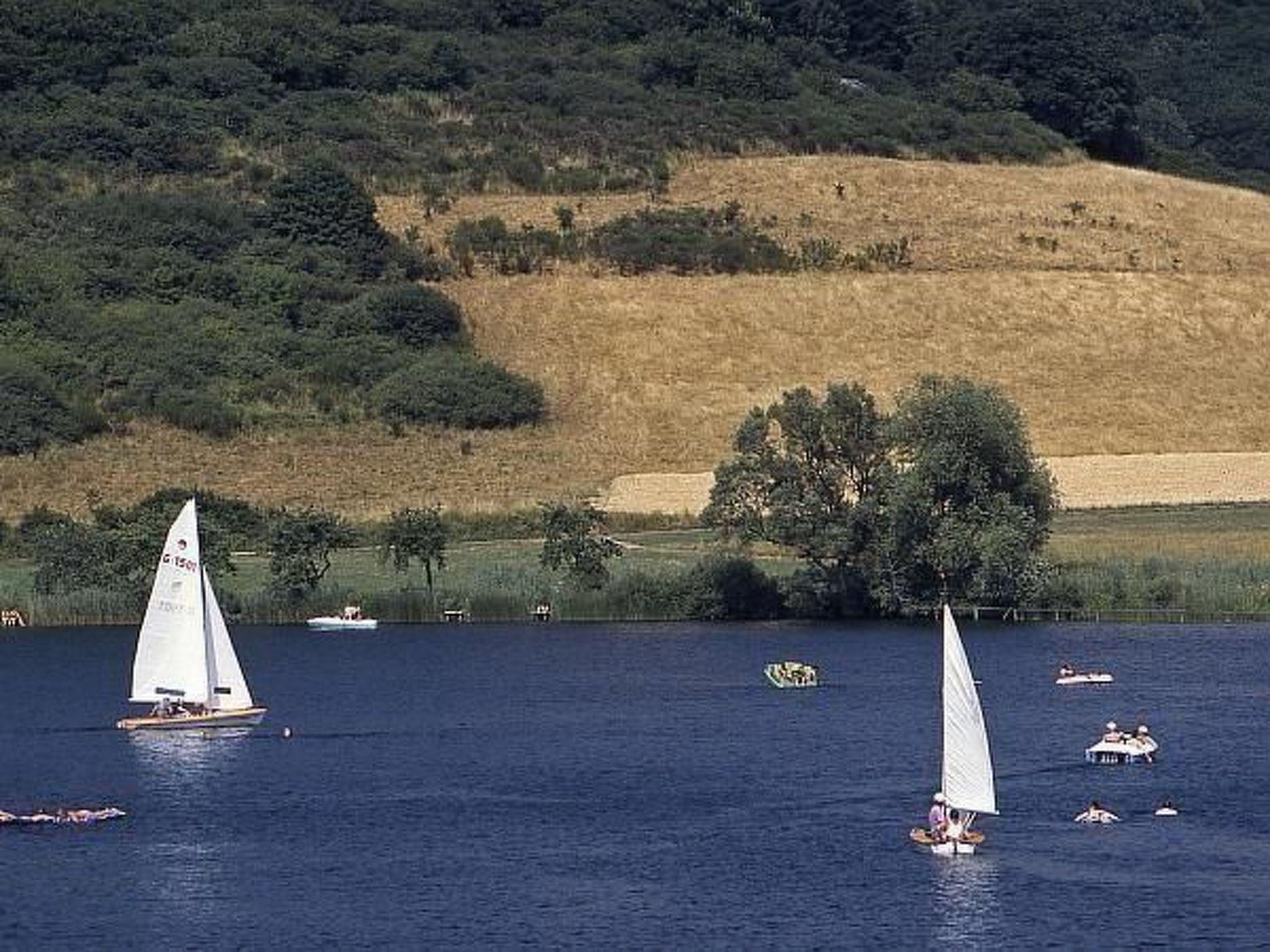 The apartment measures around 75m² and is suitable for 2 to 6 people. It has a big living and sleeping room with a double sofa bed, a dining corner with a panoramic view of the lake, two separate bedrooms, one with a big double bed and one with a French double bed (140cm wide), a new quality kitchen with a dishwasher, four-ring ceramic hob, oven, fridge with freezer compartment, two coffee machines (pads and filter), and a storage room. There is a shower room with a WC and washbasin and there is an additional guest WC with a little washbasin. The apartment also has a hallway, cloakroom space and central heating. The living room provides a flatscreen digital TV (107cm, HD TV, two satellites: Astra and Hotbird with many German and international channels), digital radio, a DVD player, CD player, a stereo system and games. Wireless Internet access is available in all rooms for your own digital devices. There are also digital TVs in the two bedrooms.