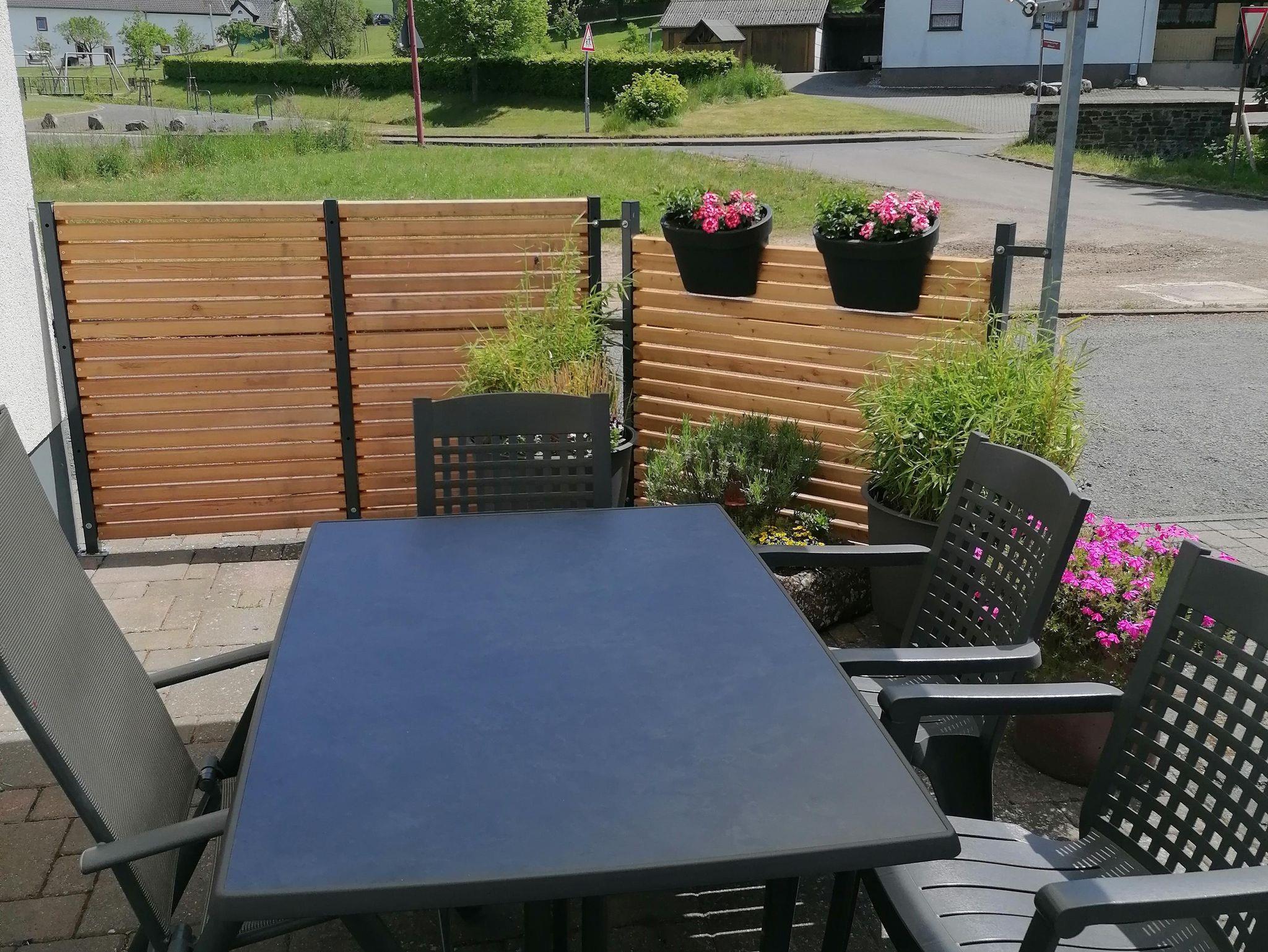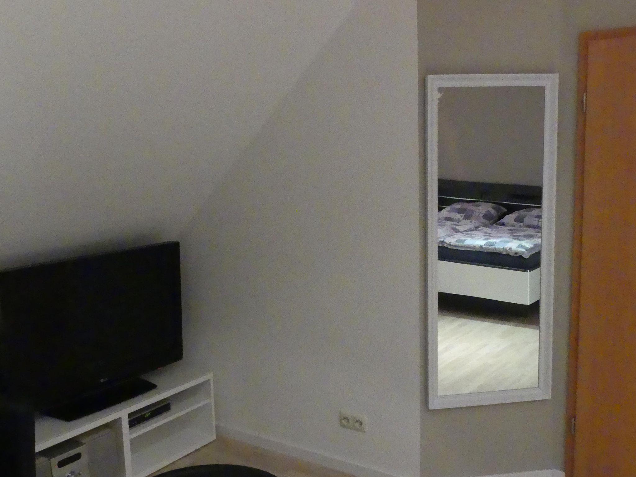 Die Wohnung im Erdgeschoss verfügt neben der Eingangsdiele über ein Schlafzimmer, eine Essküche mit separatem Spind, ein geräumiges behindertengerechtes Badezimmer sowie ein Wohnzimmer mit Zugang zur Terrasse. Im Schlafzimmer befindet sich ein Doppelbett. Im Wohnzimmer, das mit Flachbildschirm, Stereoanlage und Internetzugang ( Telekom Hotspot ) ausgestattet ist, können 2 Personen auf einer Schlafcouch übernachten. So haben in der Wohnung max. 4 Personen Platz.