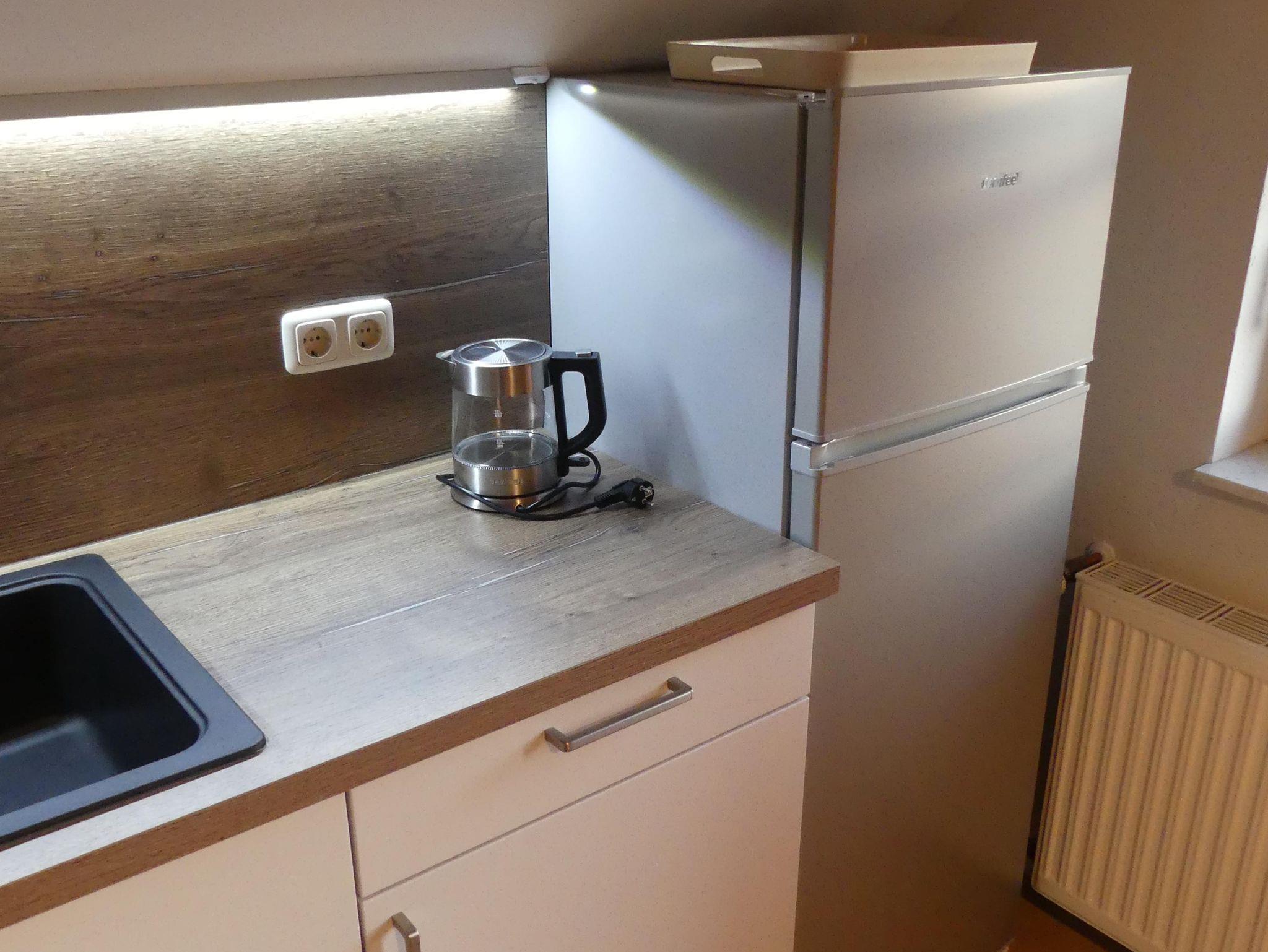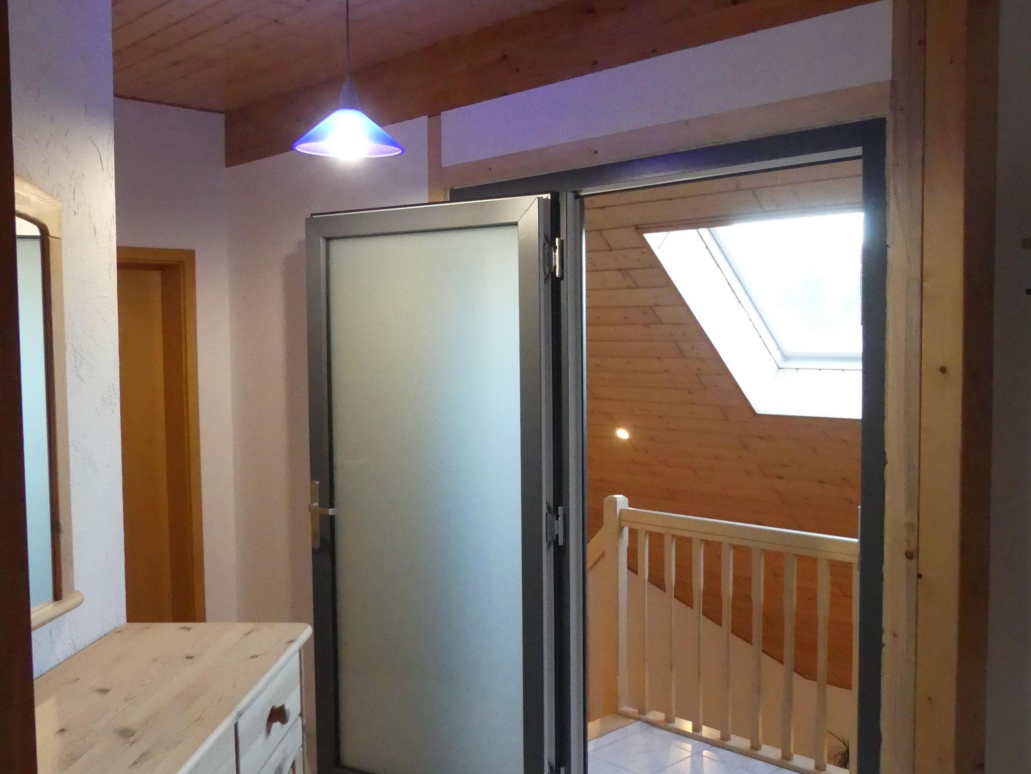 Unsere 2022 neu entstandene Ferienwohnung im Dachgeschoss erreichen Sie über ein abgeschlossenes Treppenhaus.