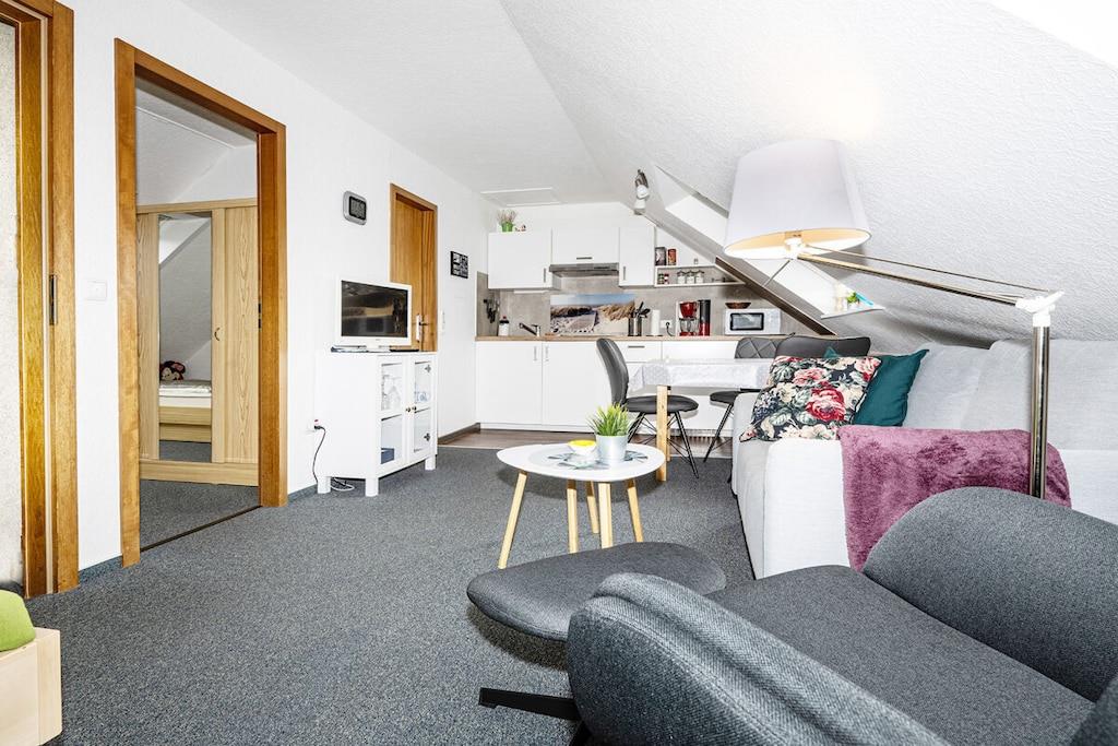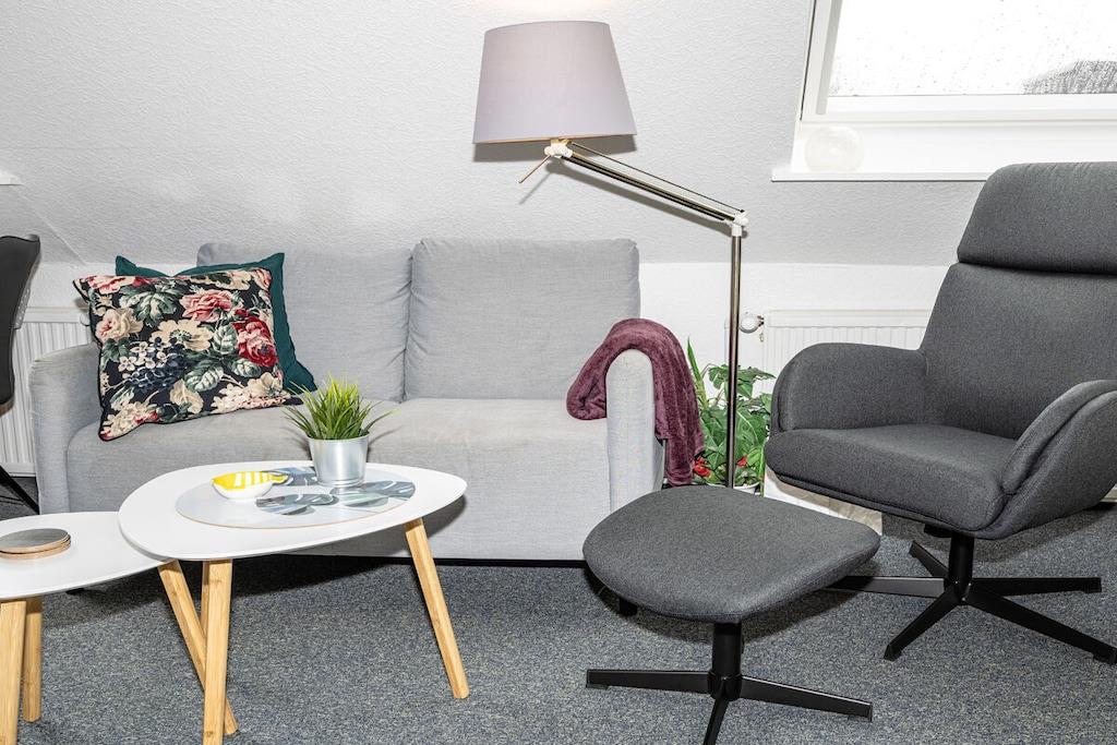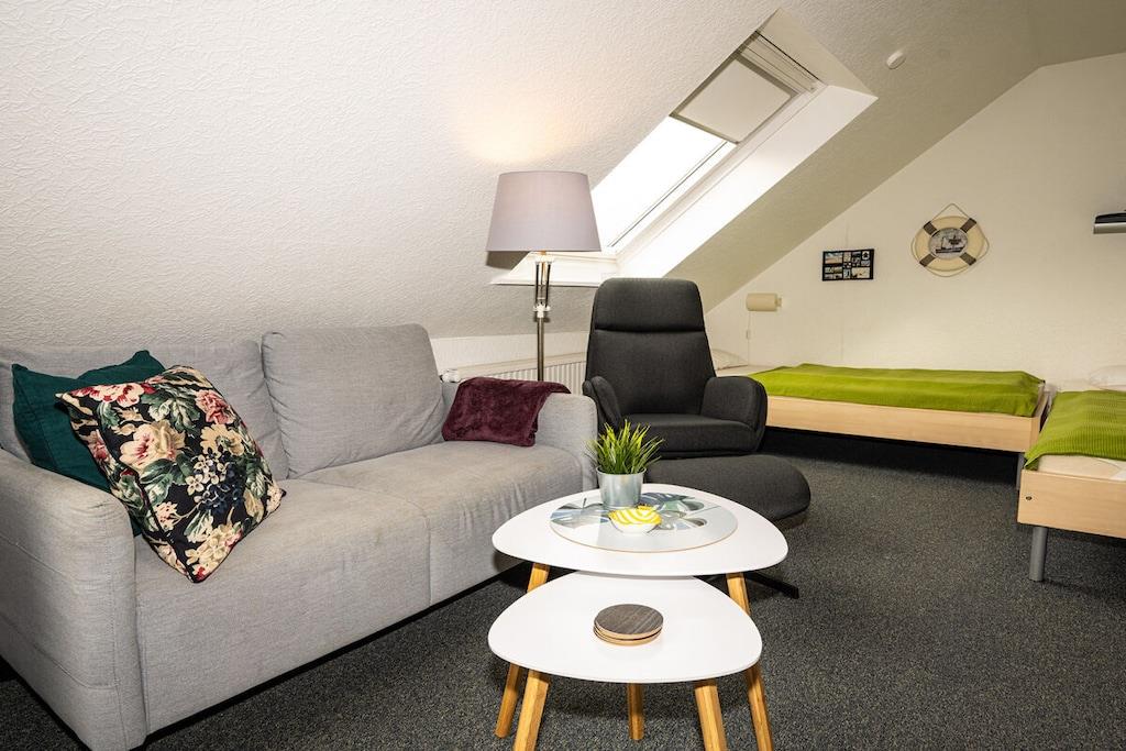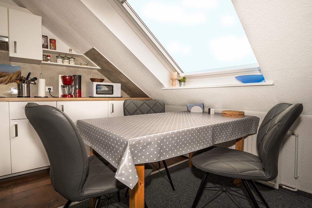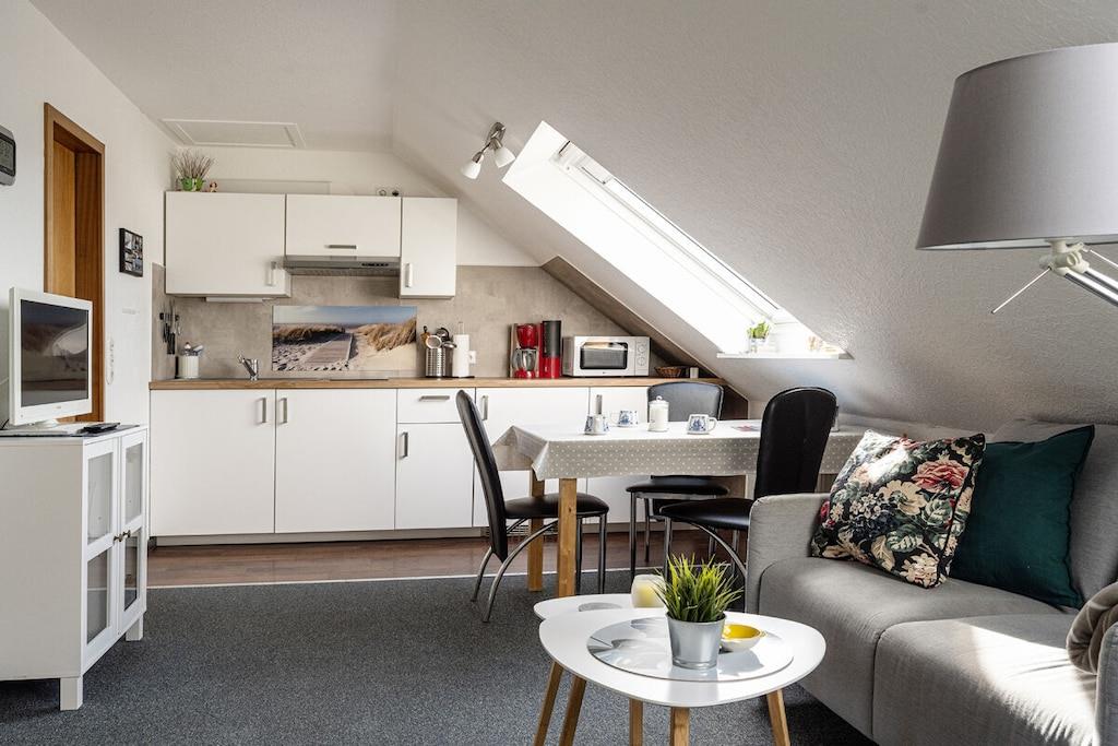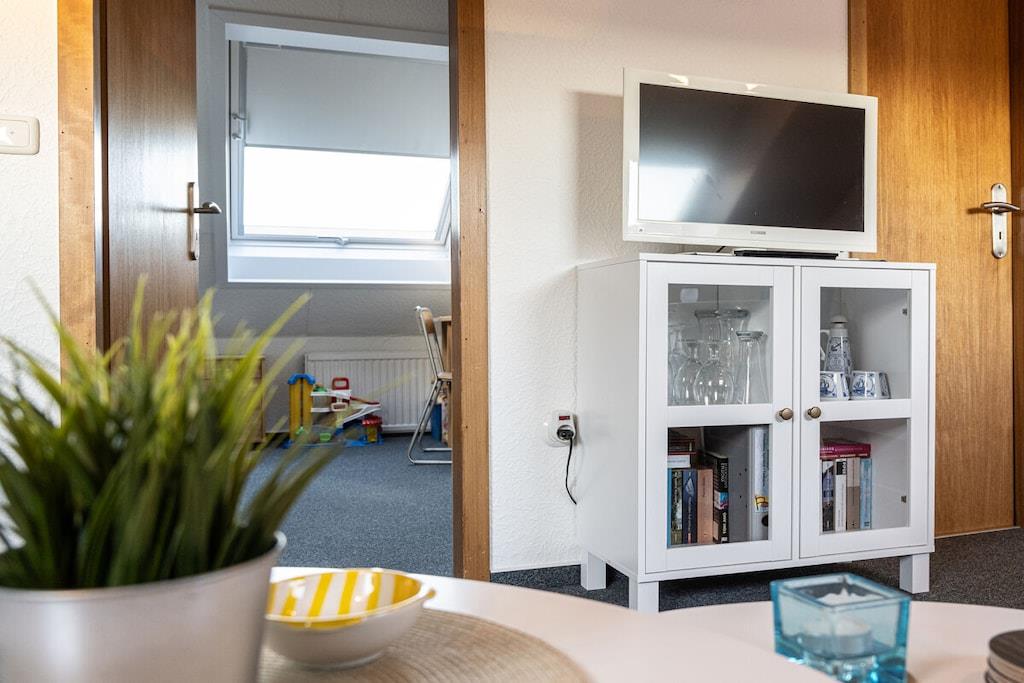 Das Ferienhaus liegt in einer ruhigen Seitenstraße nicht weit vom Strand entfernt. Die Wohnung ist gemütlich und für kleine Familien geeignet. Hat 2 Schlafplätze im Wohn- Ess- Küchenbereich, Küchenzeile, Esstisch, Sofa + ein kleines, separates Schlafzimmer mit einem Bett + Schreibtisch. Bad mit Dusche/WC. Kostenloses Internet. Es gibt einen Sitzplatz im Garten mit Gartenmöbel für diese Wohnung. Dort gibt es auch u.a .eine Sandkiste, Schaukel, Bollerwagen, Grill und Gartenspielzeug. Unser Dachapartment im 2. Stock ist reichhaltig ausgestattet mit Spielen, Büchern, Kabel-TV, Radio,. Eine Waschküche mit Waschmaschine und Trockner ist im Hause. Pkw-Stellplatz vorm Haus. 2 weiter 3-Zimmer-Wohnung sind noch im Haus für 4 bzw. 5 Personen
