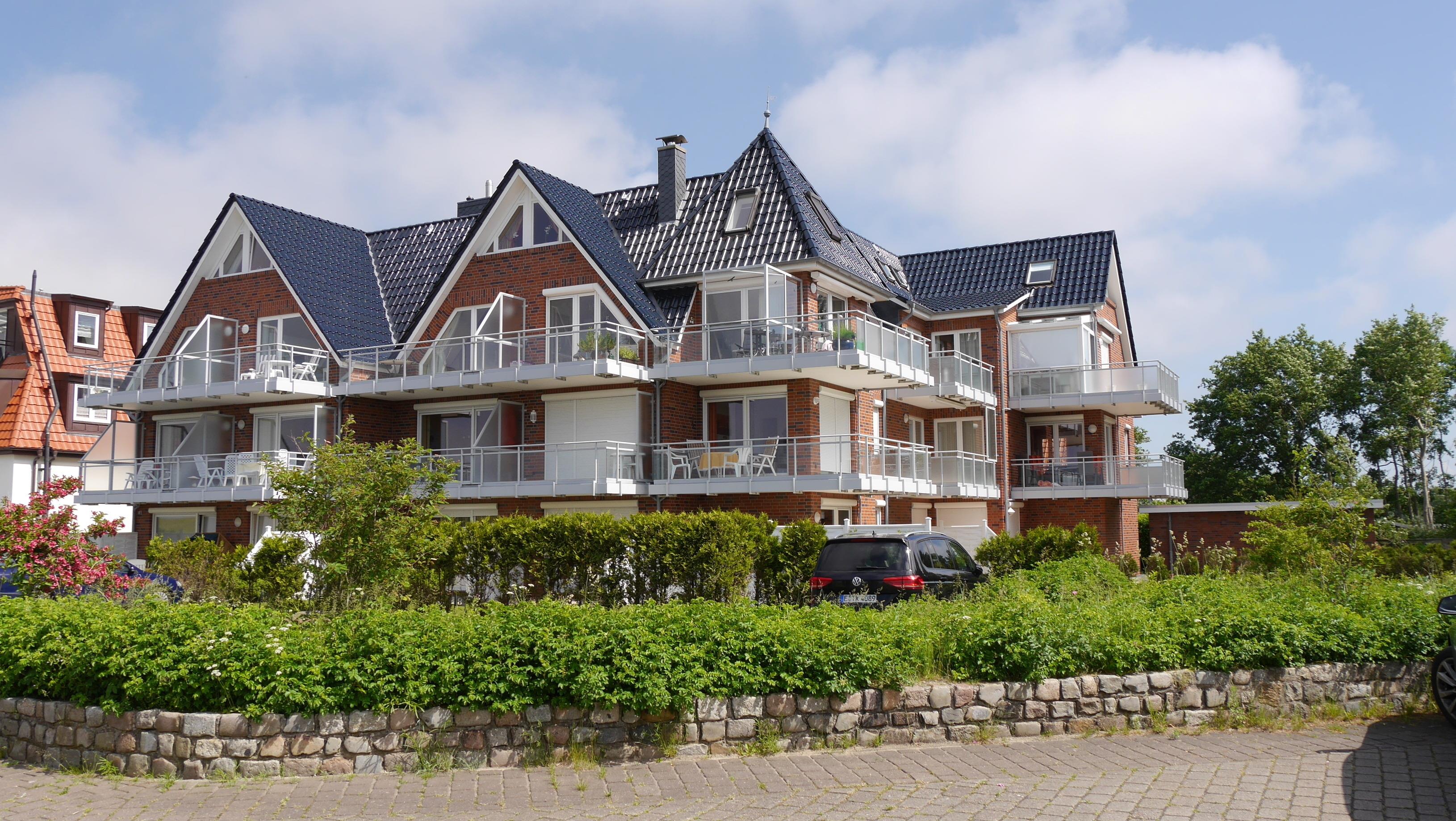 Die Wohnung 7 im Haus Duhner Seedüne befindet sich direkt am Deich von Duhnen und am Naturschutzgebiet Duhner Heide, mit Blick auf die Nordsee, das Wattenmeer und die Insel Neuwerk. Das Haus befindet sich an einer verkehrsberuhigten Straße.