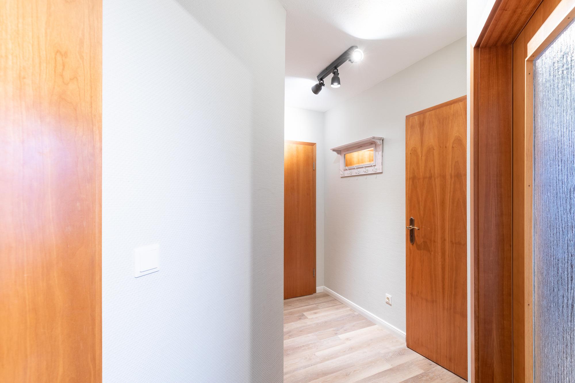 Die Ferienwohnung (im 2. Obergeschoss) mit einer Größe von ca. 60 m² Wohnfläche ist komplett für bis zu 5 Personen ausgestattet. 1 Wohnzimmer mit Essplatz, 1 Flachbildfernseher (Blue-ray-Player, DVD-Player, CD-Player), gemütlichem Sofa, Küchenzeile mit Geschirrspüler, Cerankochfeld, Backofen, Kühlschrank, Kaffeemaschine, Senseo Maschine, Toaster und Wasserkocher, Schlafzimmer 1 mit Doppelbett (180x200cm) und Kleiderschrank, Schlafzimmer 2 mit Doppelbett (160x200) und Kleiderschrank, Flur, Bad mit Dusche, WC, Bidet, Waschbecken und Spiegel, Tresor, Bügeleisen, Balkon mit Balkonmöbeln, Nichtraucherwohnung, keine Haustiere, PKW-Stellplatz am Haus.