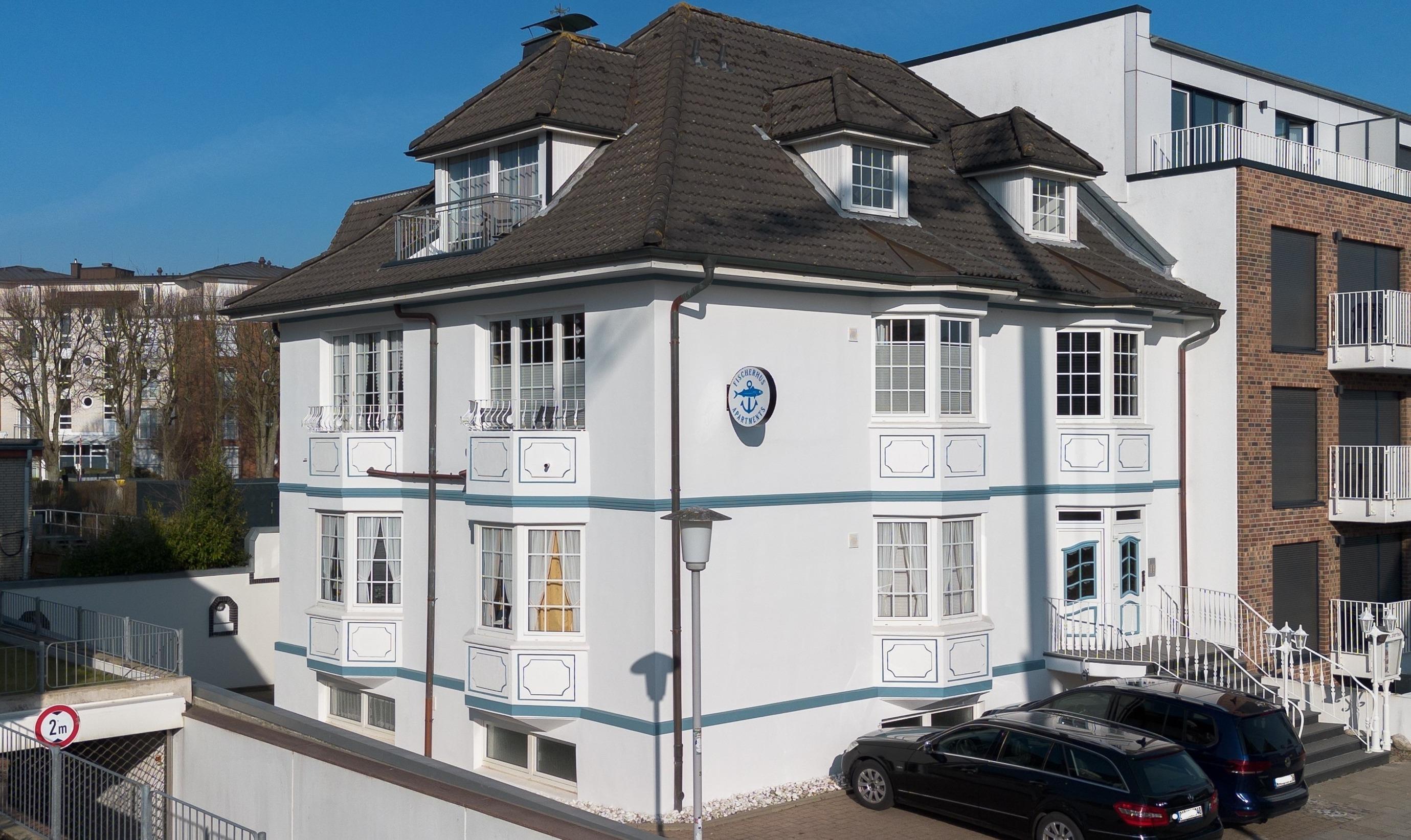 Die Ferienwohnung 10, Zum weißen Kliff, im Fischerhus liegt in einer kinderfreundlichen und verkehrsberuhigten Sackgasse, nahe dem Zentrum von Cuxhaven Duhnen und nur wenige Gehminuten vom Sandstrand und der Promenade, mit seinen Geschäften und Restaurants entfernt.