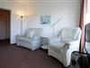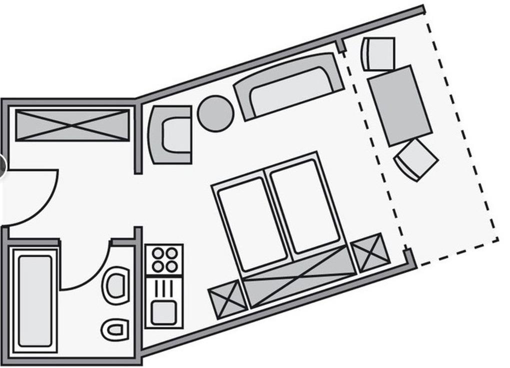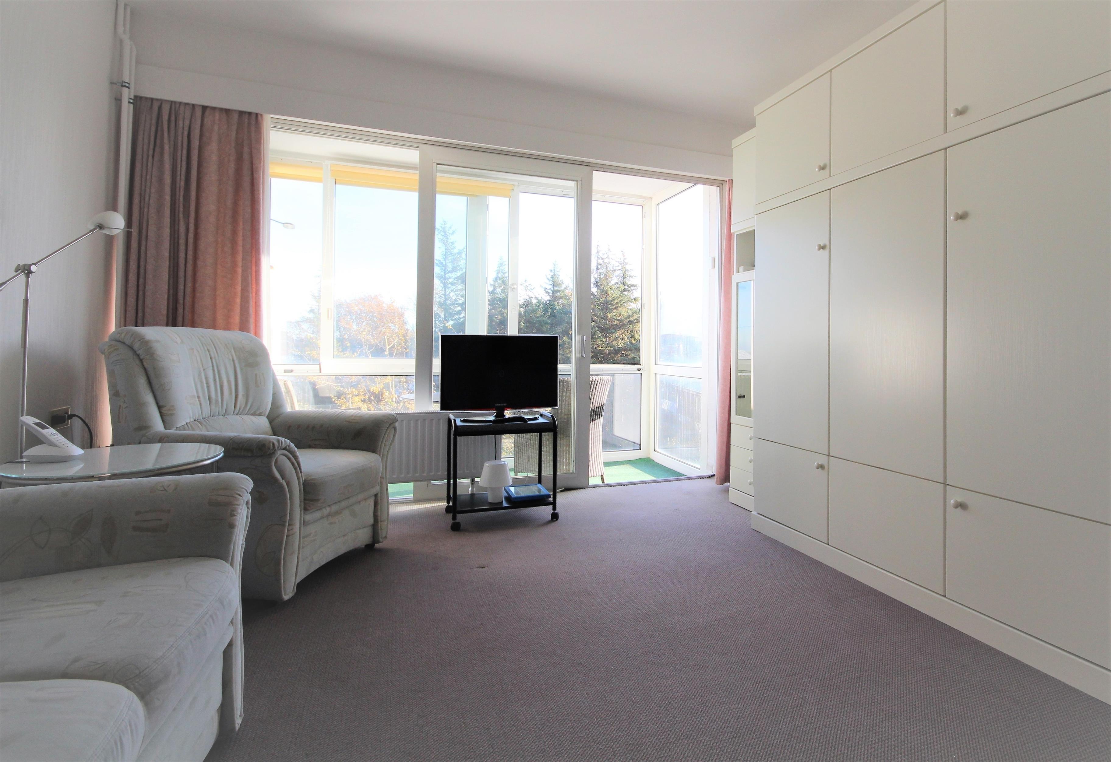 Die 1 Raum Ferienwohnung mit Seesicht Richtung Elbe - den Weltschifffahrtsweg, in der 4. Etage eine Größe von ca. 35 m² Wohnfläche ist komplett bis zu 2 Personen ausgestattet. Das Wohnzimmer verfügt über 2 Schrankbetten (mit 2 Einzelnen Matratzen), Küchenzeile (2 Plattenherd, Wasserkocher, Kaffeemaschine, Toaster), 2 Sessel und kleinem Tisch, Zugang zur verglasten Loggia mit Essplatz für 2 Personen, 1 Bad mit Dusche (ebenerdig) und WC, Waschmaschine und Wäschetrockner im Haus (kostenpflichtig, mit Münzautomat),1 Flatscreen TV (Wohnzimmer), Nichtraucherwohnung, keine Haustiere, Fahrstuhl im Haus, reservierter PKW Stellplatz am Haus.