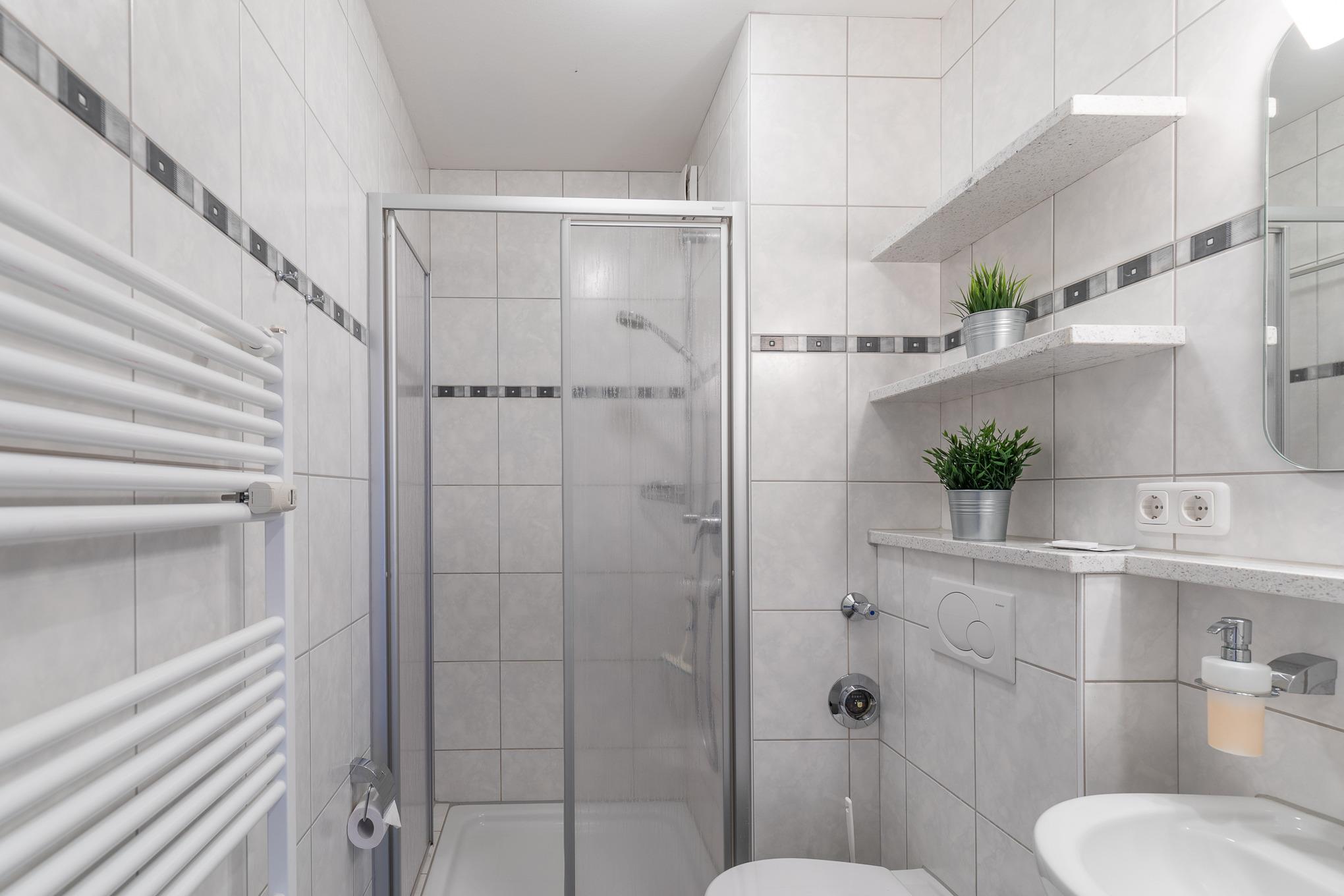Die Wohnung ist für bis zu 4 Personen ausgestattet. 1 Schlafzimmer mit Doppelbett, 1 Schlafzimmer mit Etagenbetten, ein Wohnzimmer mit 2 Sessel, Flatscreen TV, Essplatz mit 4 Stühlen und Zugang zum Balkon (mit Gartenmöbel), Küchenzeile (Cerankochfeld, Mikrowelle, Dunstabzugshaube, Kaffeemaschine, Wasserkocher, Toaster), 1 Bad mit Dusche und WC, Flur, PKW-Stellplatz am Haus, Nichtraucher, es sind keine Tiere erlaubt.