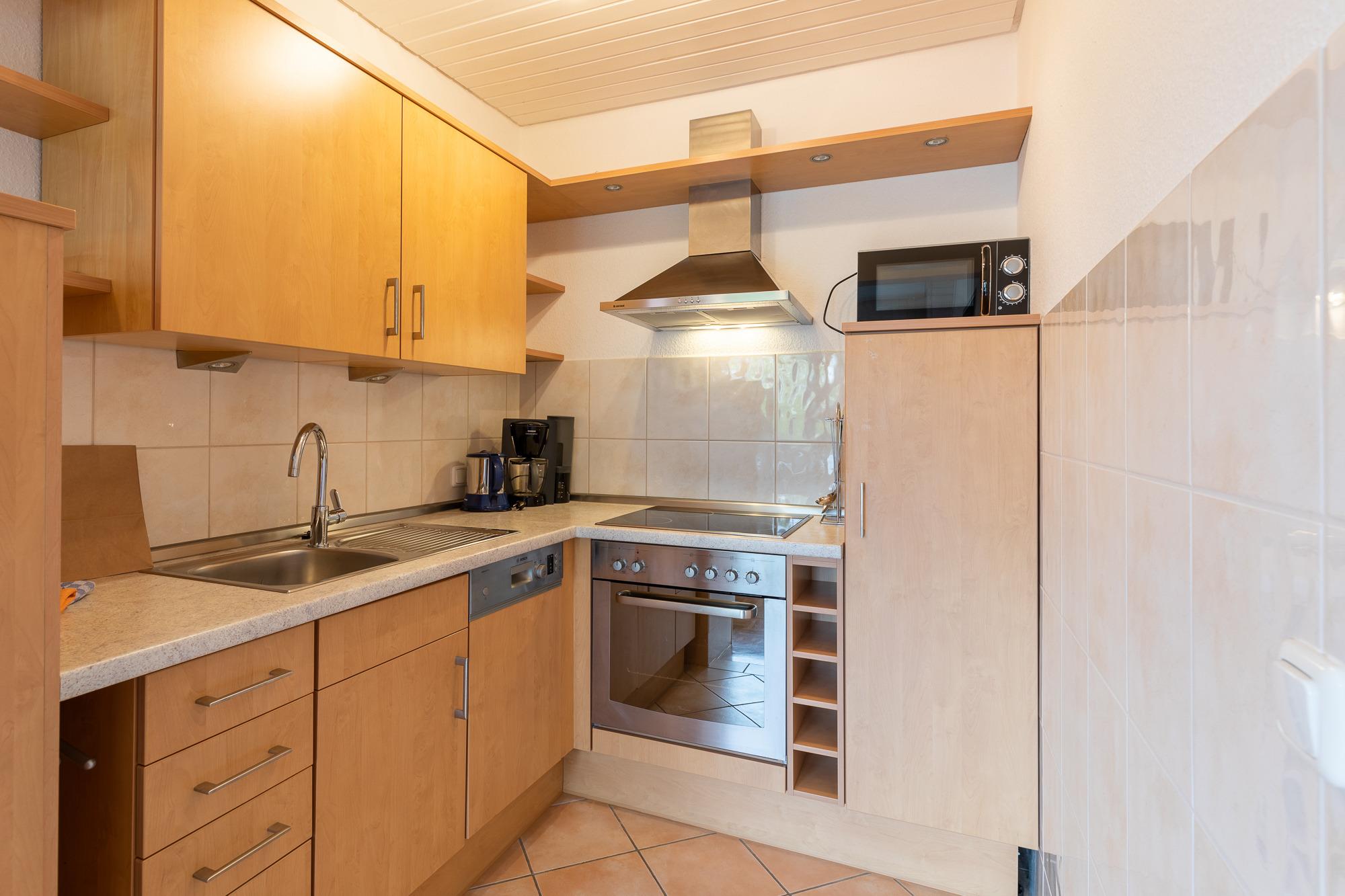 Die 3 Raum Ferienwohnung (befindet sich im 1. OG) mit einer Größe von ca. 58 m² Wohnfläche ist komplett bis zu 4 Personen (1 Zustellbett ist möglich) ausgestattet.