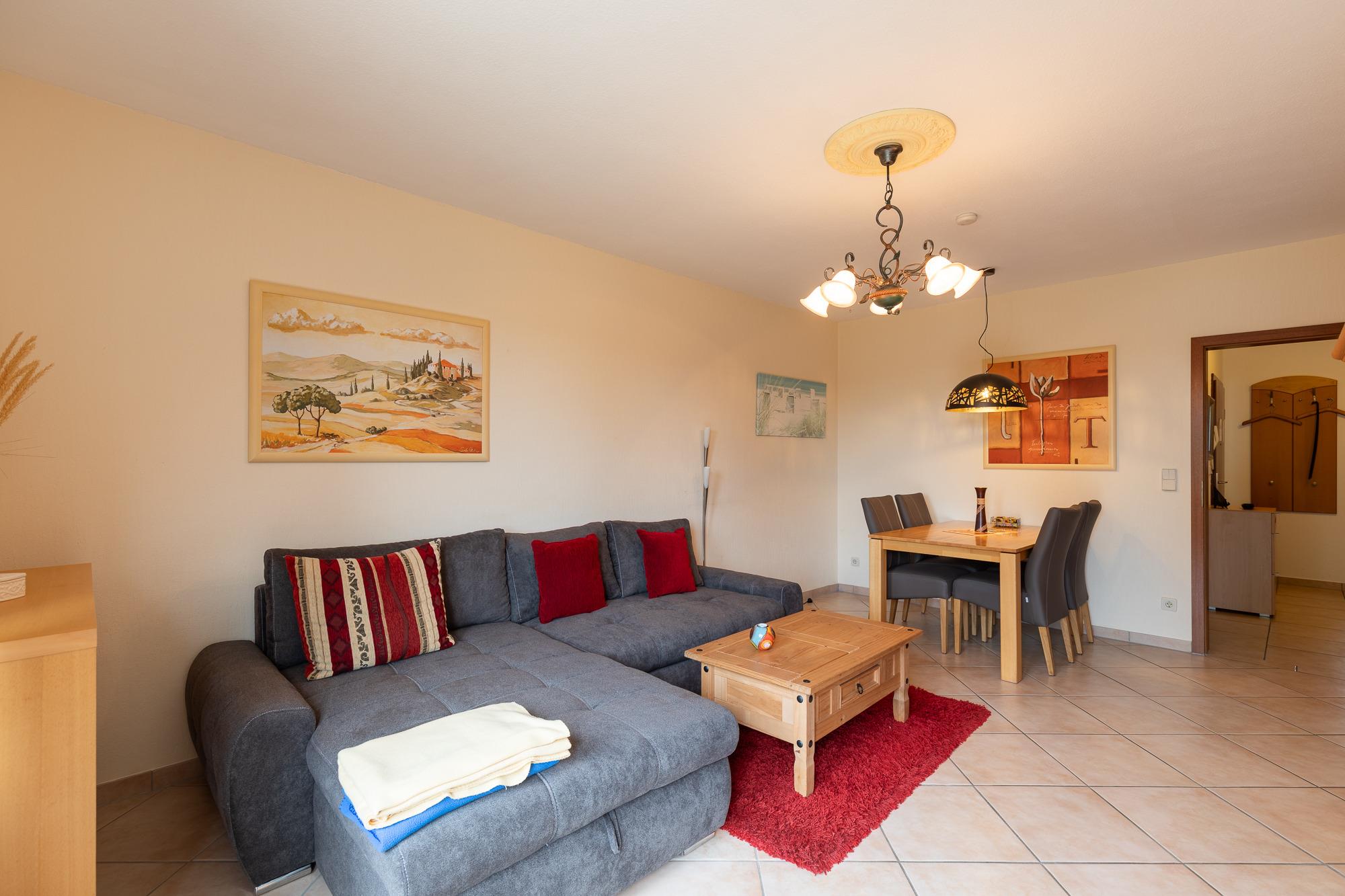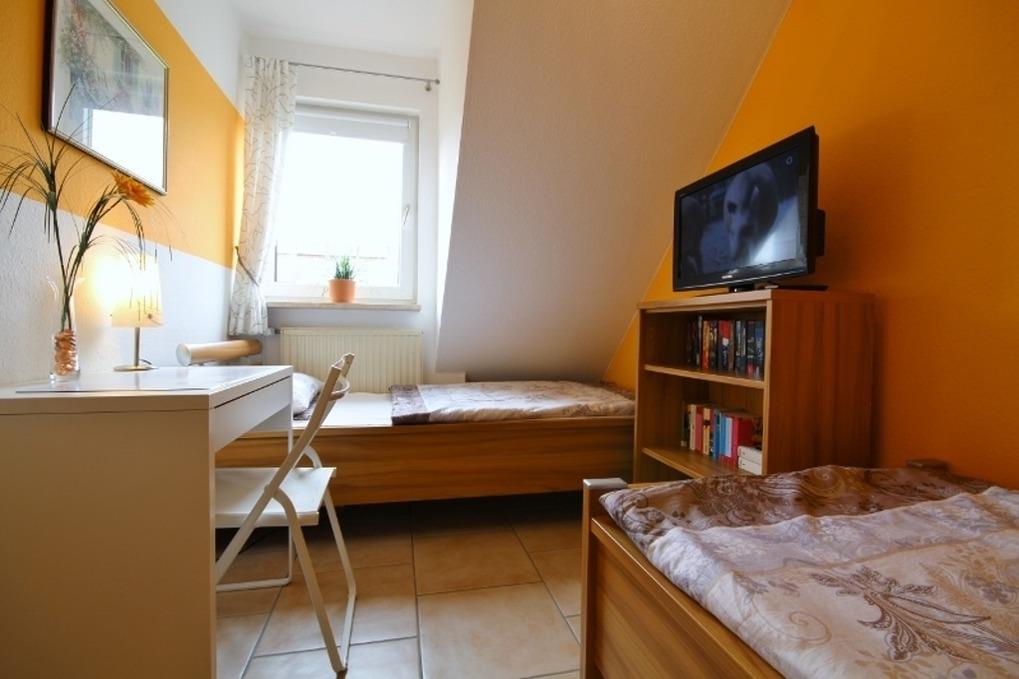 Sehr schöne helle 3-Raum-Wohnung mit ca. 65 m², 1. Etage, WLAN inkl. 1 Schlafzimmer mit Doppelbett, 1 Schlafzimmer mit 2 Einzelbetten und TV, Einbauküche (Geschirrspüler, Mikrowelle, Gefrierfach, Cerankochfeld und Backofen), Wohnzimmer mit Kabel/TV und Stereoanlage, Bad mit Dusche und WC, Balkon mit Balkonmöbeln.