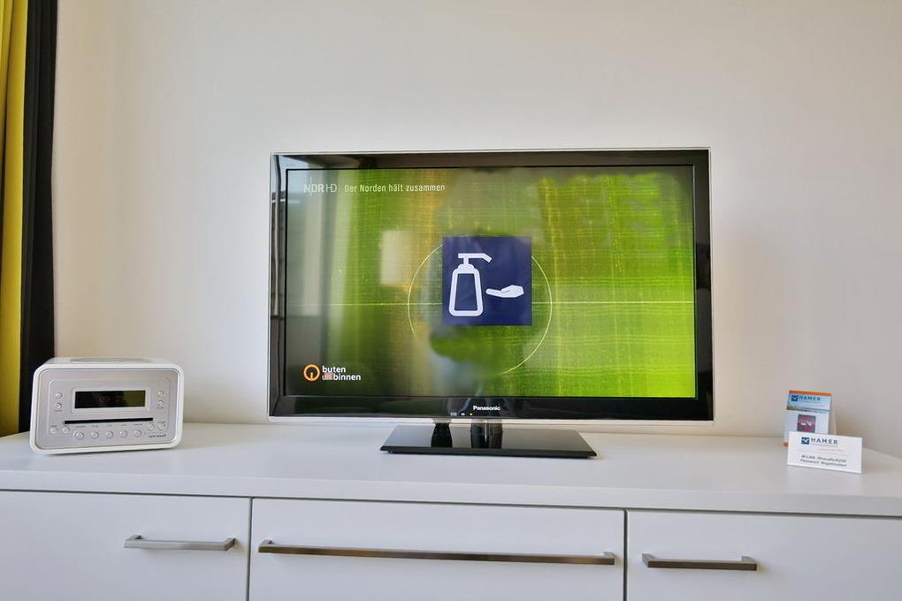Tolle 2-Raum-Ferienwohnung in der 2.Etage für bis zu 3 Personen. Die vollständige Küchenzeile mit Mikro, Back., Geschirrsp. etc. garantiert höchsten Komfort. 2xSAT-TV, CD-Kompaktanlage, USB-Steckdosen, kostenloses W-Lan, separates Schlafzimmer mit hochwertigen Boxspringbetten, Schlafcouch für die 3. Pers., allergikerfreundlich, ebenerdige Dusche/WC, Föhn, großer Westbalkon mit Balkonmöbeln und Sonnenschirm (saisonabhängig), Tiefgaragenstellplatz (3m breit), keine Haustiere und natürlich Nichtraucher. Bettwäsche u. Handtücher inkl., Lage:2.OG