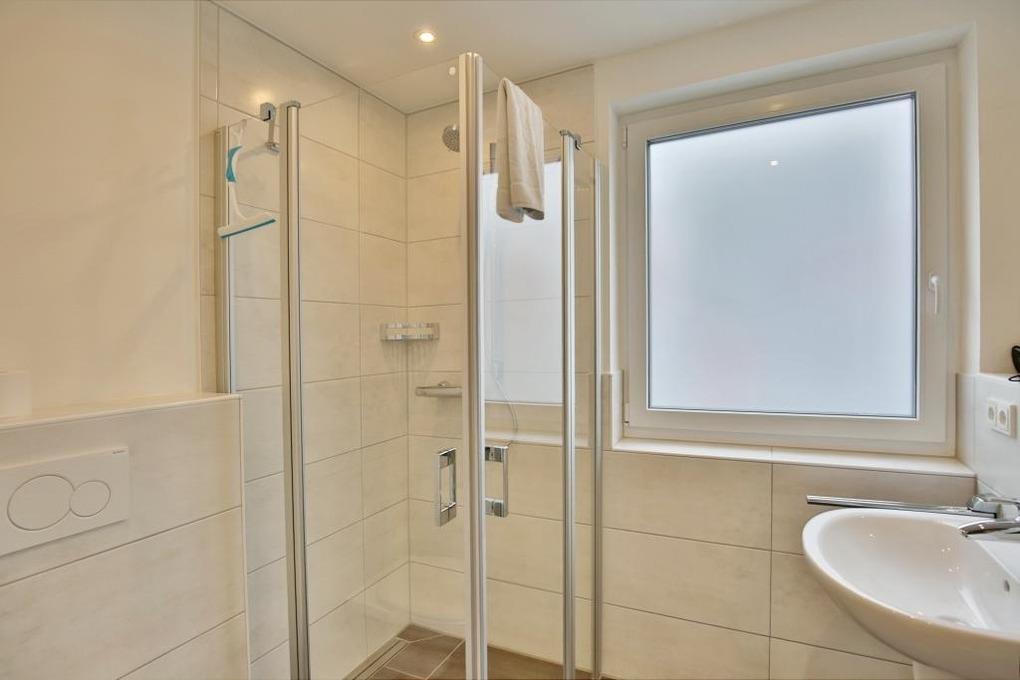 Moderne und geschmackvolle Ferienwohnung bis 3 Personen auf ca. 47m², EG, mit großer Terrasse (süd), 1 Schlafzimmer mit Doppelbett und TV, Wohn-/Schlafzimmer mit hochwertiger Schlafcouch u. TV, Blue-Ray-DVD, kostenfreies W-LAN, vollständige Küchenzeile mit Geschirrspüler, Gefrierfach, Backofen, Mikrowelle, ebenerdige Dusche/WC mit Föhn, alle Räume mit Rollladen, reservierter Pkw-Stellplatz #3 am Haus, Nichtraucherwohnung, keine Haustiere gestattet.