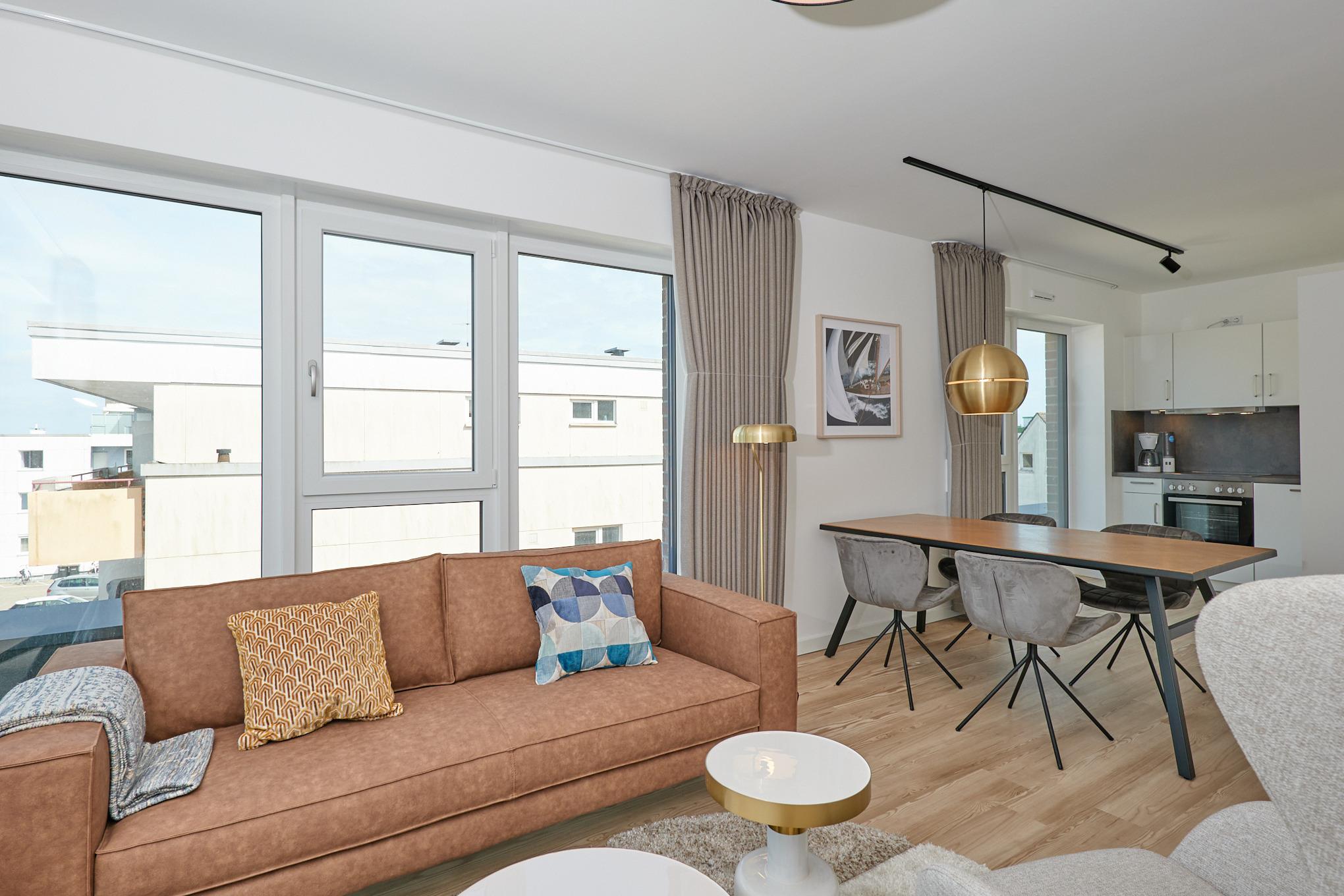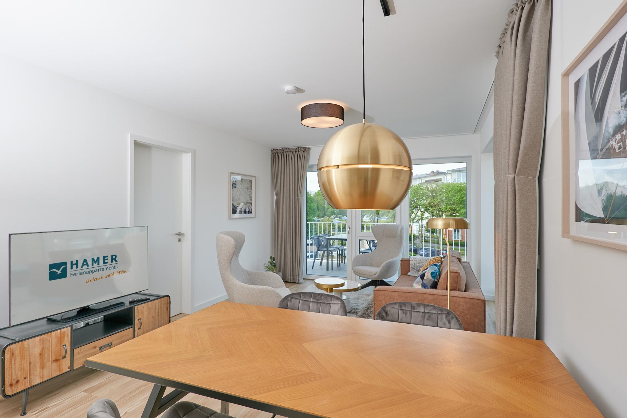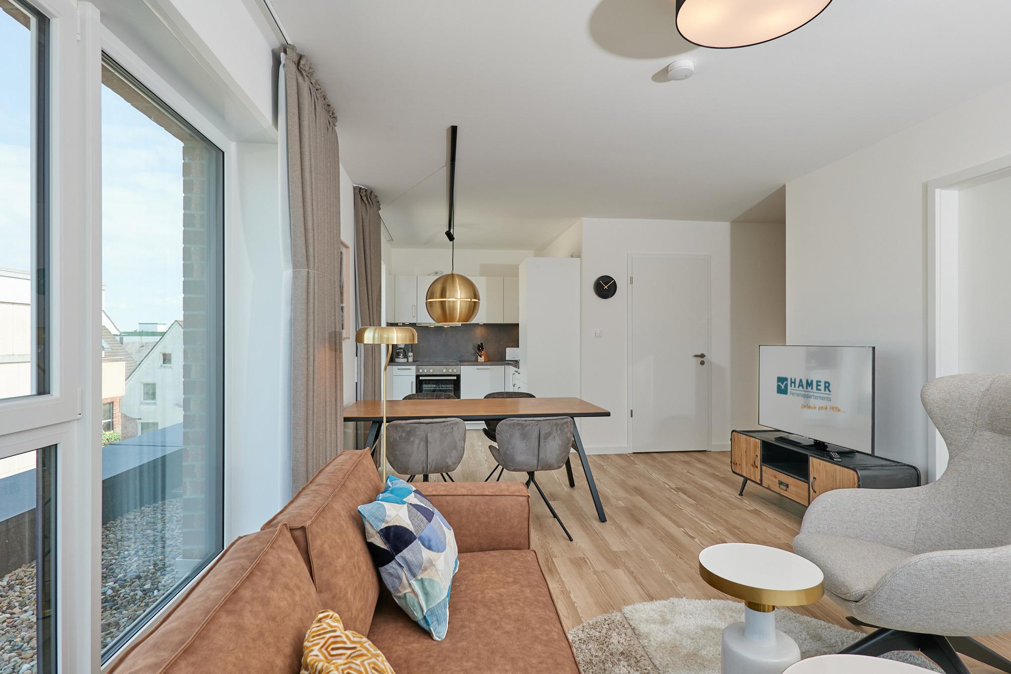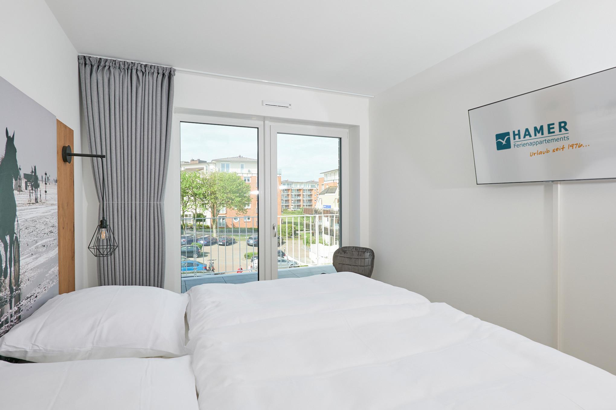Neubau Mai 2023! Sehr schöne, moderne 3-Raum-Wohnung bis 4 Pers. voll ausgestattet auf ca. 87 m² in der 3.Etage gelegen, 2 Schlafzimmer (1x Doppelbett, 1x 2 Einzelbetten) und Außenjalousien an allen Fenstern, ebenerdige Dusche/WC, Wohnzimmer mit großer Küchenzeile (Backofen, Geschirrspüler, Mikrowelle) und Teilseesicht, 2x Kabel-TV, Radio, kostenfreies W-LAN-Internet, großer Balkon (west) mit Teilseesicht, Personenaufzug, reservierter Pkw-Stellplatz in der Tiefgarage inkl., es sind keine Haustiere erlaubt und natürlich Nichtraucher. Durchfahrtshöhe Tiefgarage: 2,05m.