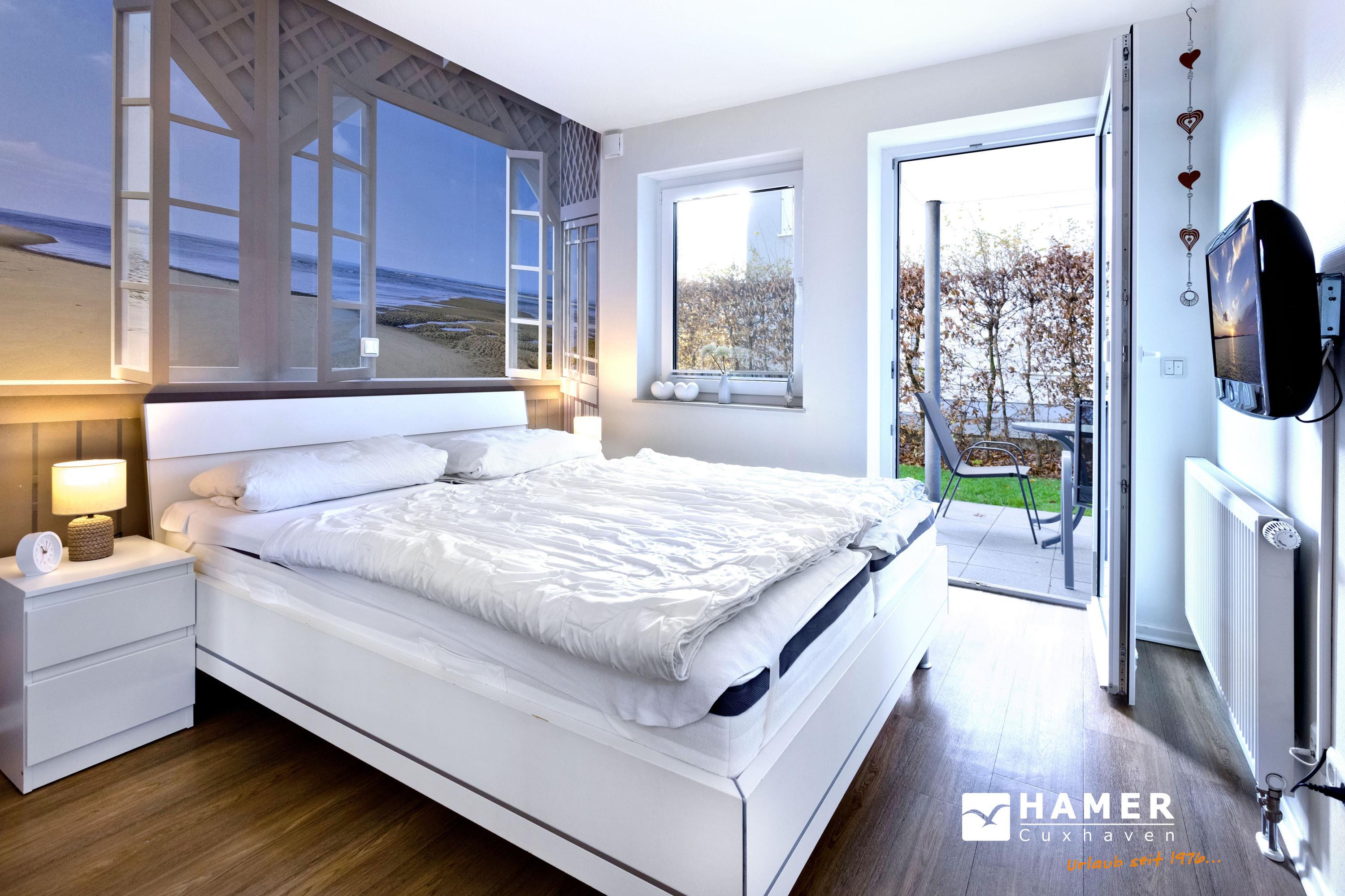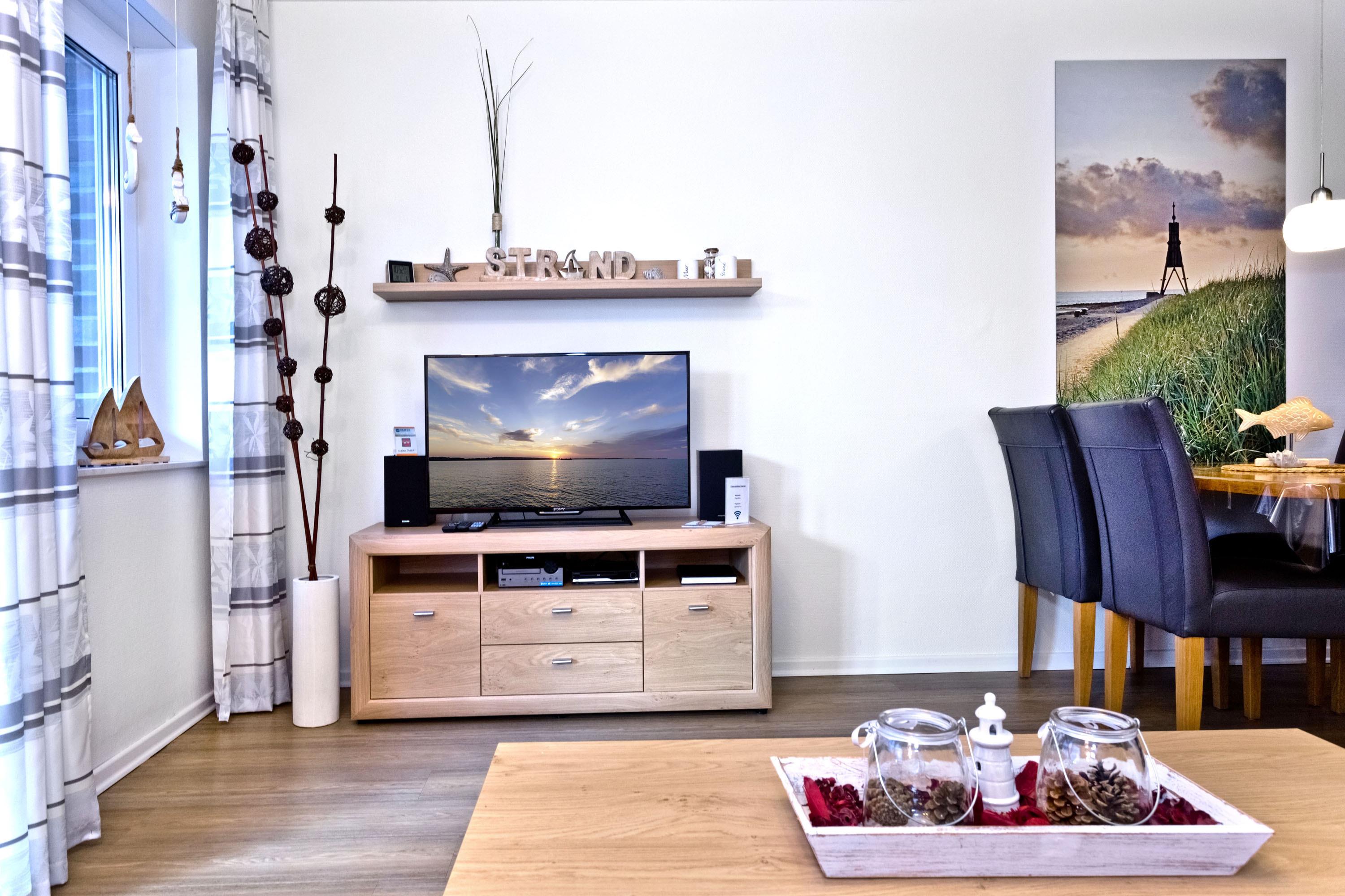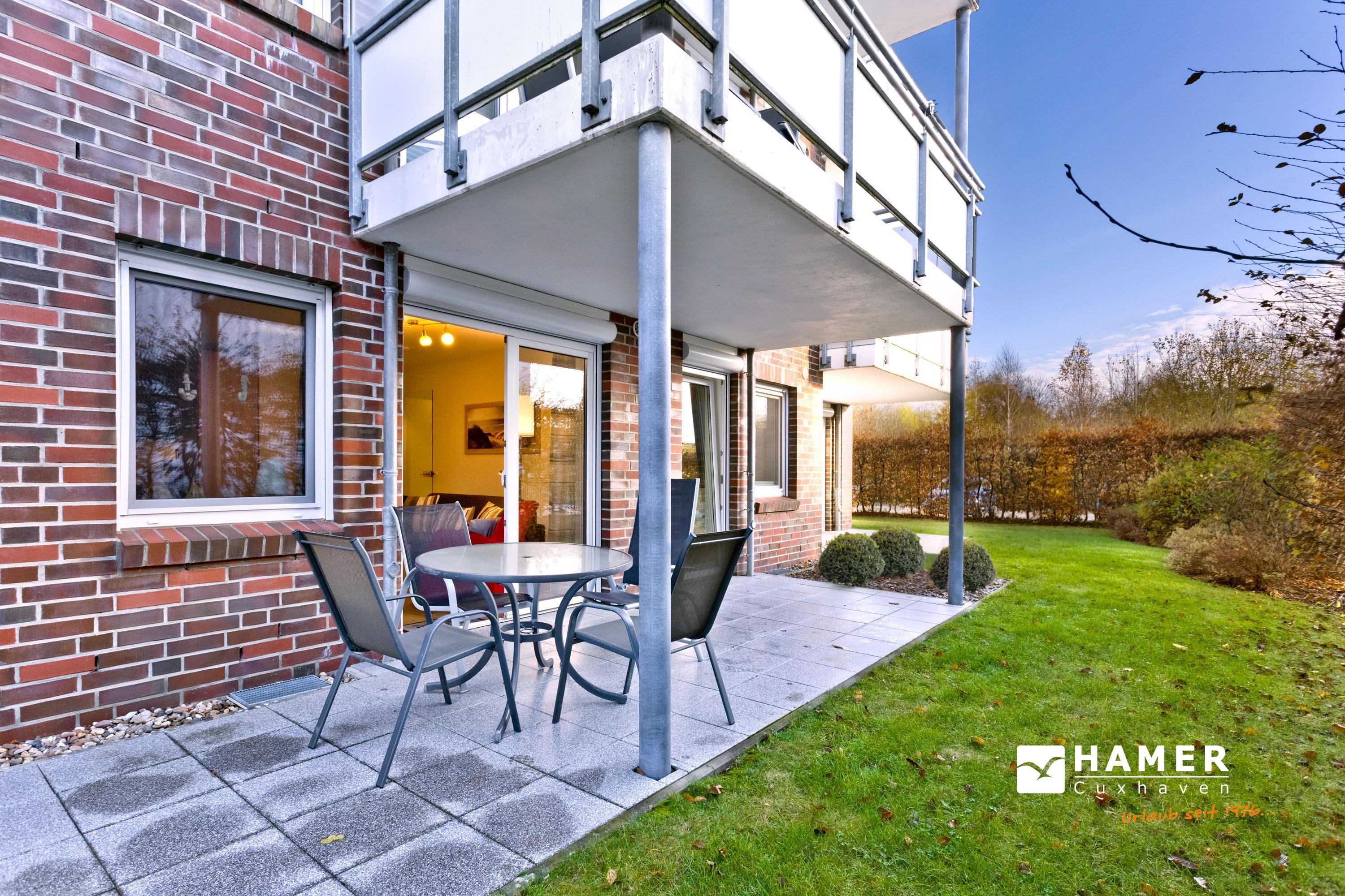 Geschmackvoll und vollständig ausgestattete Wohnung auf ca. 46m² bis 4 Pers., parterre mit großer Terrasse und Rasenanteil (süd), 1 Schlafzimmer mit Doppelbett, Wohn-/Schlafzimmer mit Schlafcouch, 2x SAT-TV,DVD,CD, W-LAN kostenlos., vollständige Küchenzeile mit Geschirrspüler, Mikrowelle, Backofen, Gefrierfach, ebenerdige Dusche/Wc, Föhn, alle Räume mit Rollladen, Nichtraucher, Pkw-Stellplatz #11, keine Haustiere gestattet.