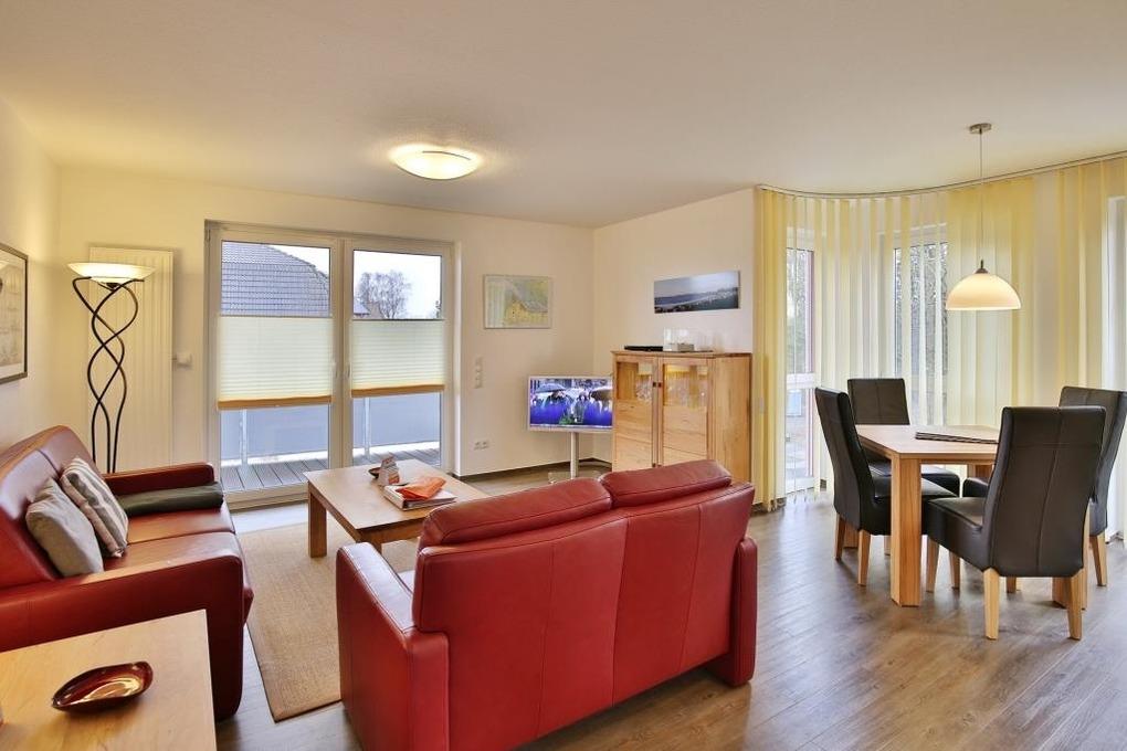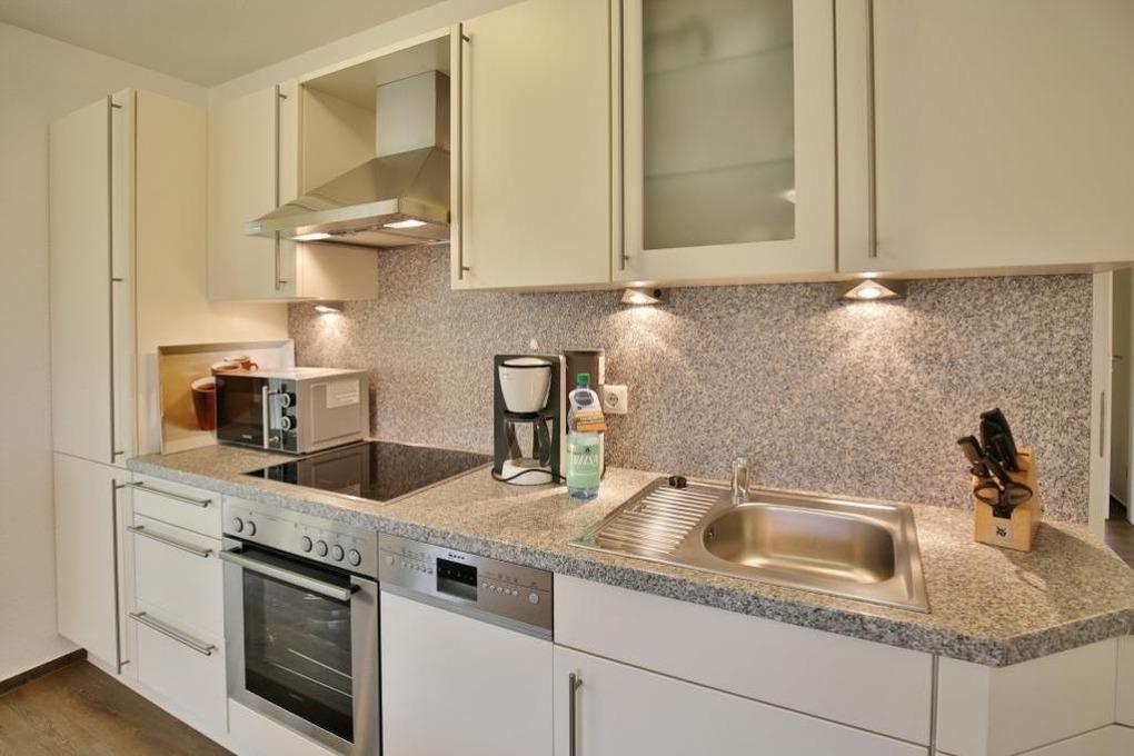 Sehr hochwertige 3-Zimmer-Wohnung (62m²), 1. Etage mit Aufzug, Wohnzimmer mit vollausgestatteter Küchenzeile (Back., Mikrow., Geschirrspüler) Kabel-TV mit Bluray-Player, Radio, kostenloses W-LAN-Internet, 1 Schlafzimmer mit Doppelbett, 1 Schlafzimmer mit Einzelbett, Du/Wc,[nbsp][nbsp]großer Balkon (süd) mit Balkonmöbeln und Sonnenschirm (saisonabhängig), alle Zimmer mit elektr. Rollläden, Parkplatz #4, keine Haustiere erlaubt, Nichtraucher.