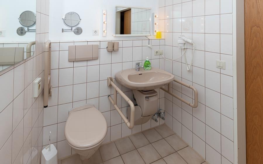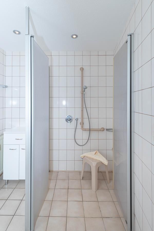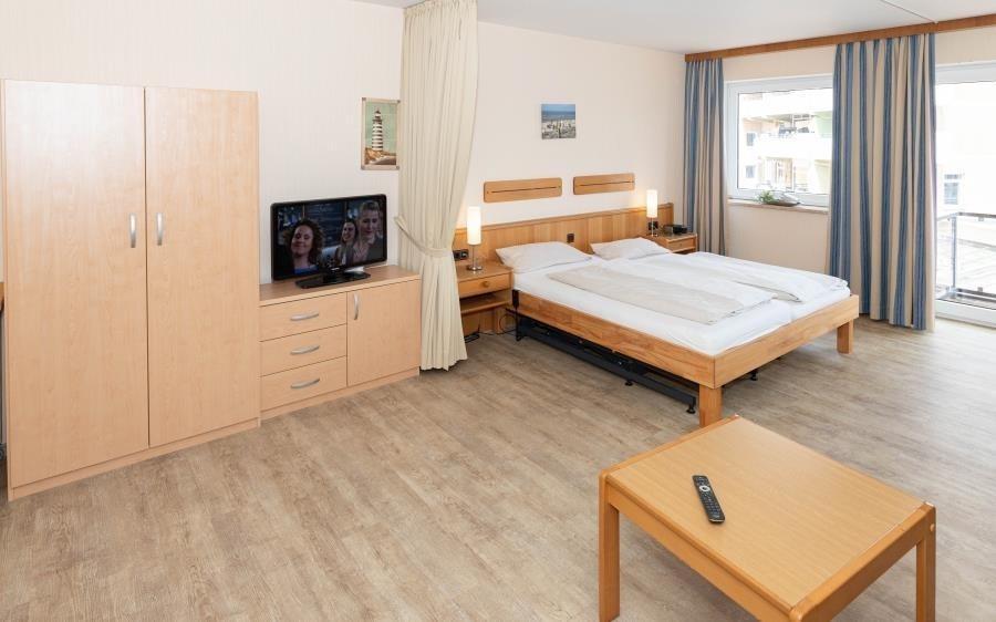 1 Raum Ferienwohnung im Appartementhaus Düne mit Seeblick für bis zu 2 Personen. Barrierefrei und rollstuhlfreundlich: Das Bad ist rollstuhlgerecht und das Haus hat ein Fahrstuhl. Hier erwartet Sie eine gepflegte 1 Zimmer Ferienwohnung mit einem Wohn- (mit Flachbildfernseher und Radio), Ess- und Schlafbereich (die linke Seite vom Doppelbett verfügt über ein Bettenlift, welche bis zu einer Höhe von ca. 68cm plus Matratzenstärke hochgefahren werden kann!). Das Rollstuhlfreundliche Duschbad hat neben der ebenerdigen Dusche, verschiedene Haltegriffe und ein höhenverstellbares Waschbecken. Um mal ein kleines Abendessen zu zaubern, oder um am Morgen gemütlich zu Frühstücken bietet Ihnen de Küchenzeile genügend Ablagefläche und ist ausgestattet mit einem Geschirrspüler, 2 Ceranfeld-Kochplatten, Mikrowelle und einem Kühlschrank mit Gefrierfach. Der Bodenbelag der gesamten Wohnung ist Allergiker freundlich. Vom Balkon (Osten) aus dem 2.OG des Hauses "Appartementhaus Düne" haben Sie eine schöne Sicht auf den Dorfbrunnenplatz und die Nordsee.