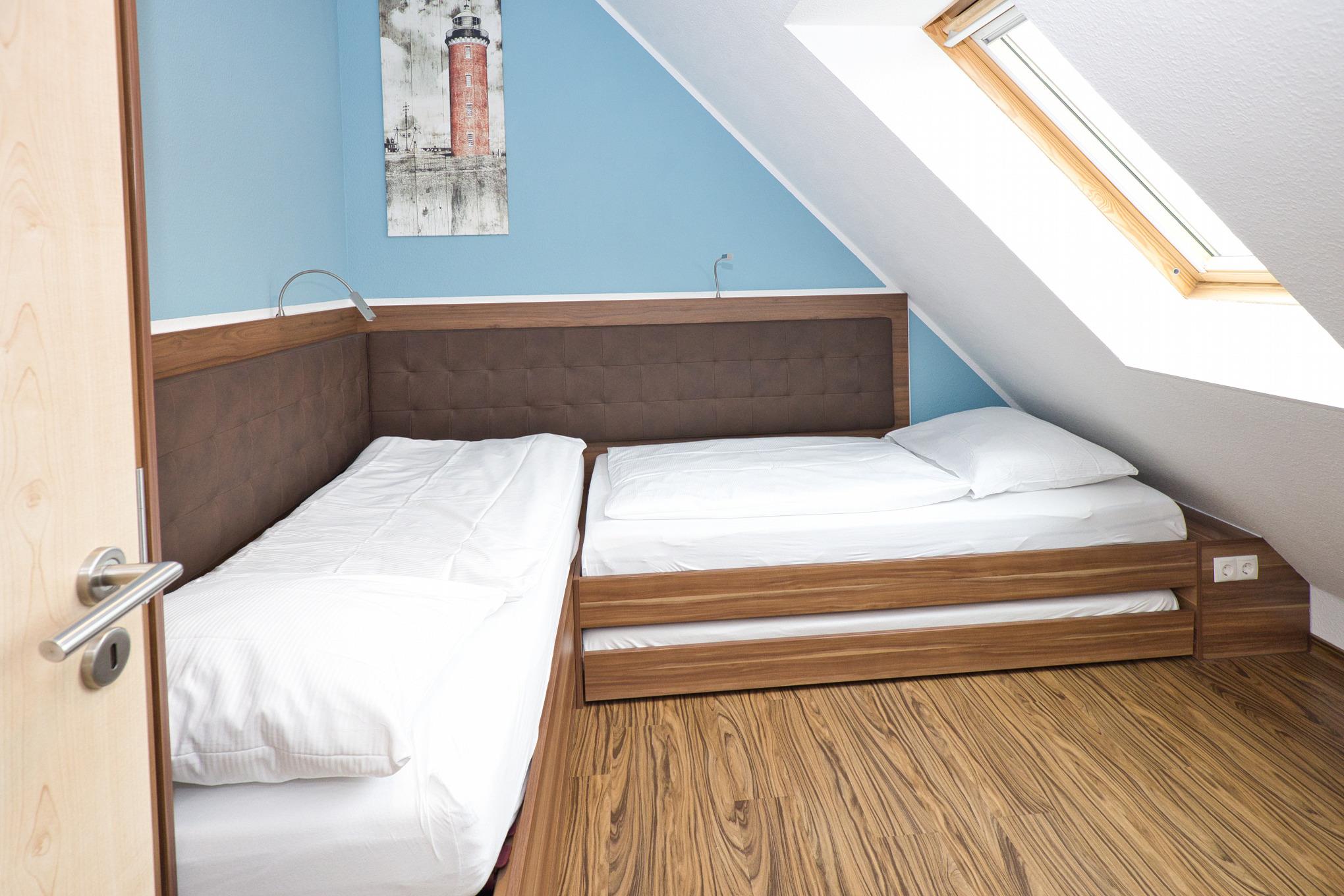 Beide Schlafzimmer sind gemütlich und durchdacht gestaltet – inkl. Treppenschutzrollo oben und unten für kleine Entdecker