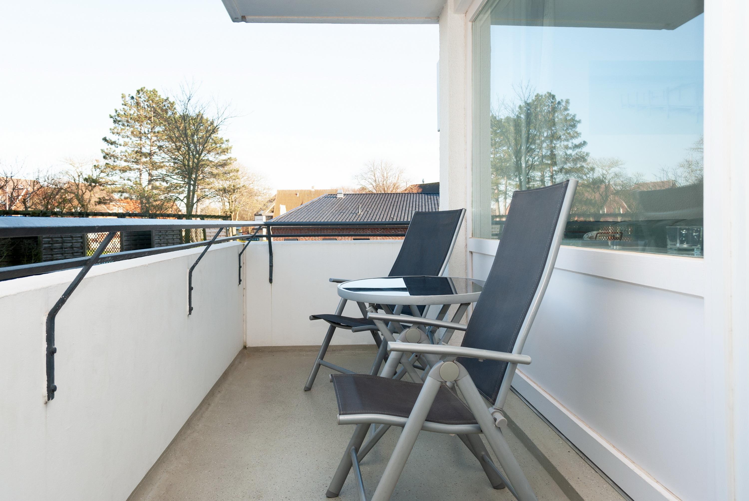 Das Apartment 109 ist ein 1-Raum-Apartment im 1. Obergeschoss für bis zu 4 Personen mit 40 qm. Der Ostbalkon mit Meerblick bietet Ihnen vormittags Sonne und nachmittags Schatten.