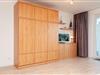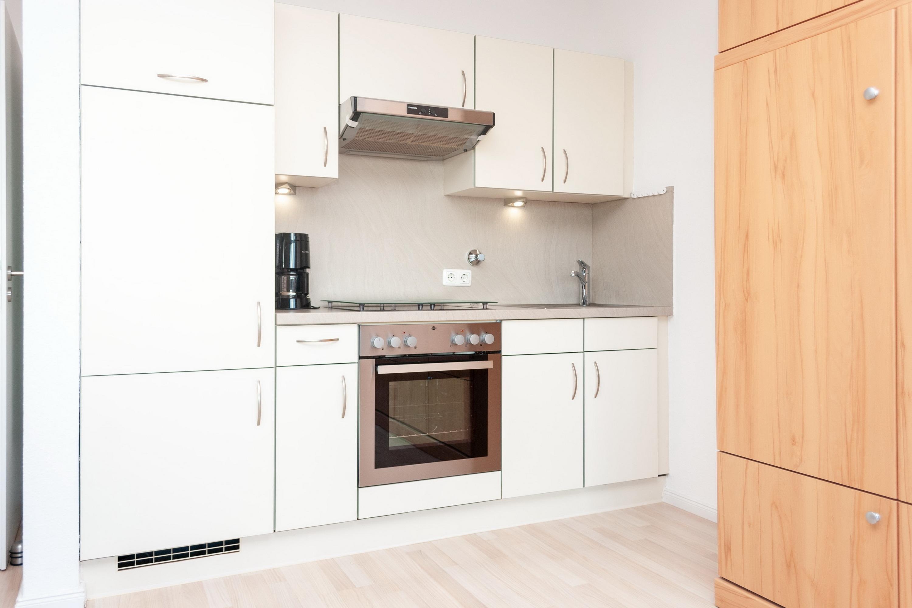 Das Apartment besteht aus einem Wohnbereich mit Schrankbett für 2 Personen und Zusätzlichem Etagenbett in einer Nische im Flur einem Badezimmer mit Dusche sowie WC. Die Ferienwohnung beinhaltet eine gut ausgestattete offene Küche.