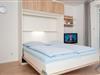 Das Apartment besteht aus einem Schlafzimmer mit 2 Einzelbetten, einem Wohnbereich mit zusätzlichem Schrankbett für 2 Personen und einem Badezimmer mit Dusche sowie WC. Die Ferienwohnung beinhaltet eine voll ausgestattete offene Küche.