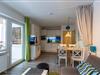 Die Wohnung verfügt über ein Schlafzimmer (kann mit dem elektrischen Rollladen verdunkelt werden) mit Doppelbett (180x200) sowie ein Badezimmer mit Dusche und WC. In der voll ausgestatteten Küchenzeile, im Wohnzimmer, finden Sie alles was Sie für die Zubereitung Ihrer Mahlzeiten benötigen (Kühlschrank mit Gefrierfach, Cerankochfeld mit 2 Kochstellen, Wasserkocher, Kaffeemaschine, Toaster, Kombi aus Mini Backofen/Mikrowelle). Das Wohnzimmer verfügt neben der Küchenzeile über ein Sofa (das als Schlafsofa genutzt werden kann), TV und einen Essplatz, von hieraus gelangt man auf den Balkon.