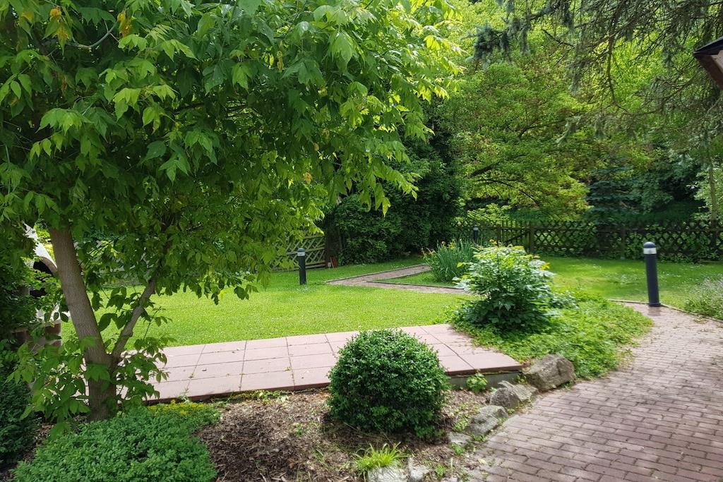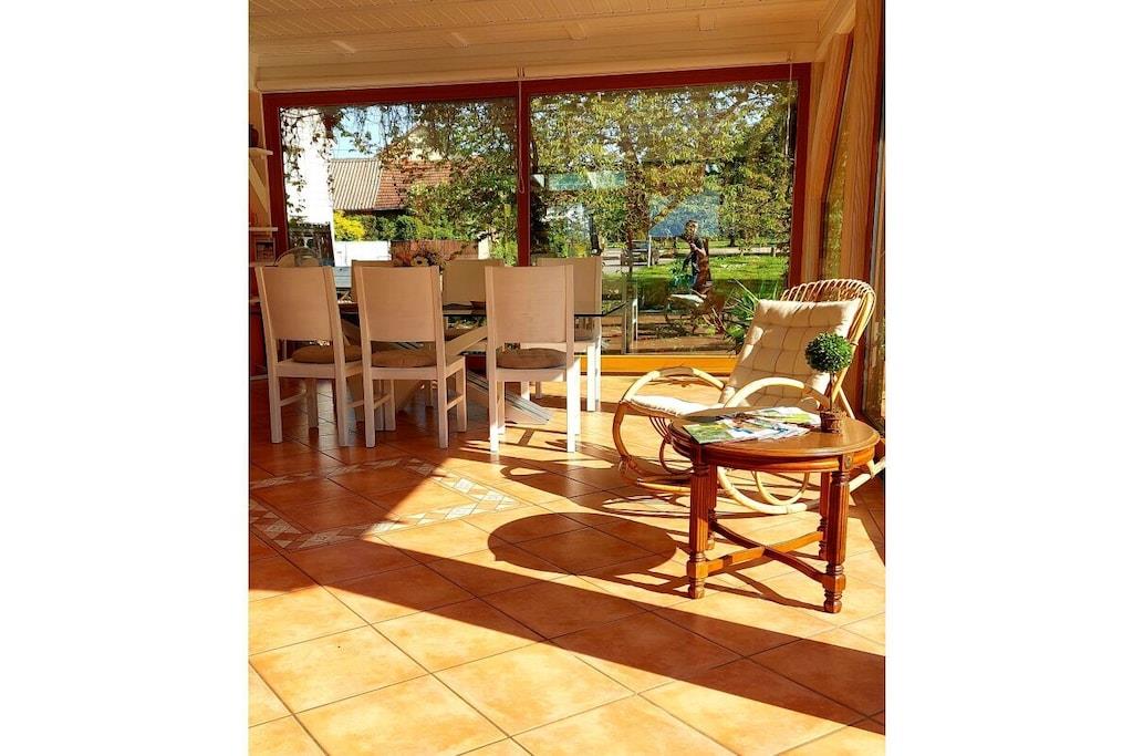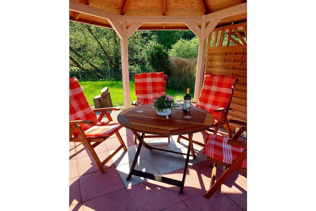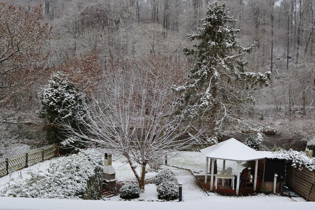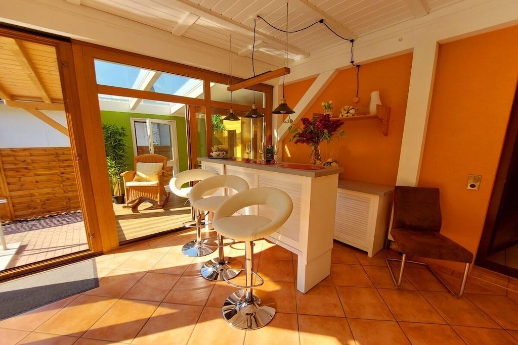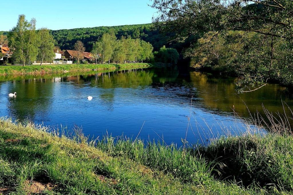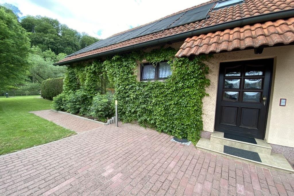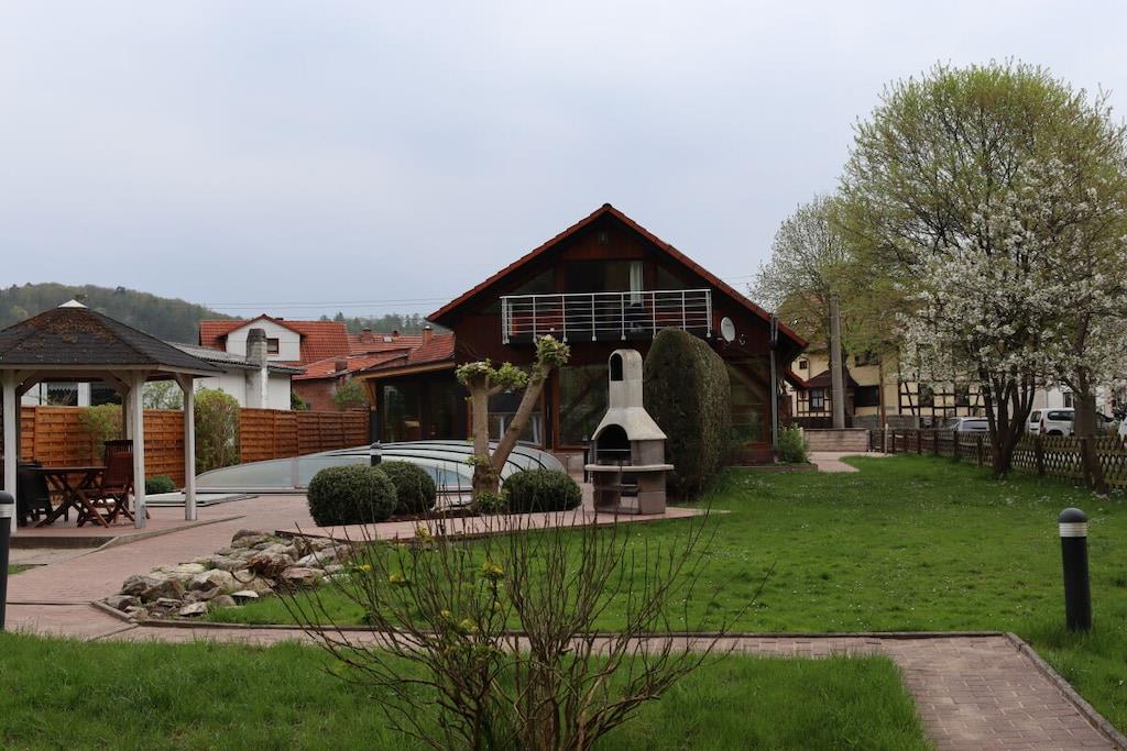 Vakantiehuis aan de Werra-oever, waterperceel, grote serre, barbecueplaats, groot op zonne-energie verwarmd zwembad, honden toegestaan, omheinde tuin met paviljoen