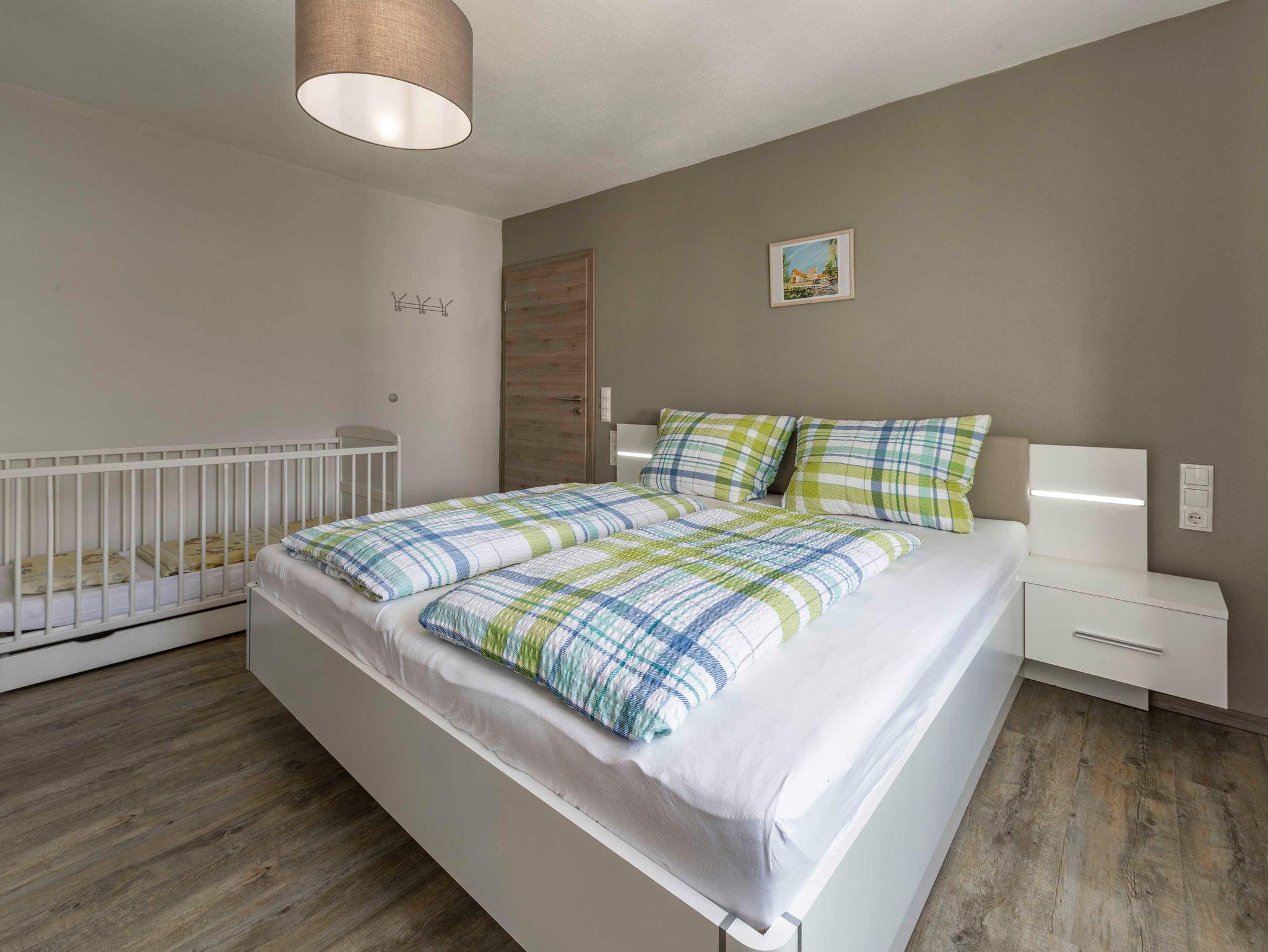 Für unsere kleinen Gäste steht ein Gitterbett (bis 5 Jahre) bereit sowie auf Wunsch ein weiteres Reisebett (bis 3 Jahre) und ein Hochstuhl zur Verfügung.