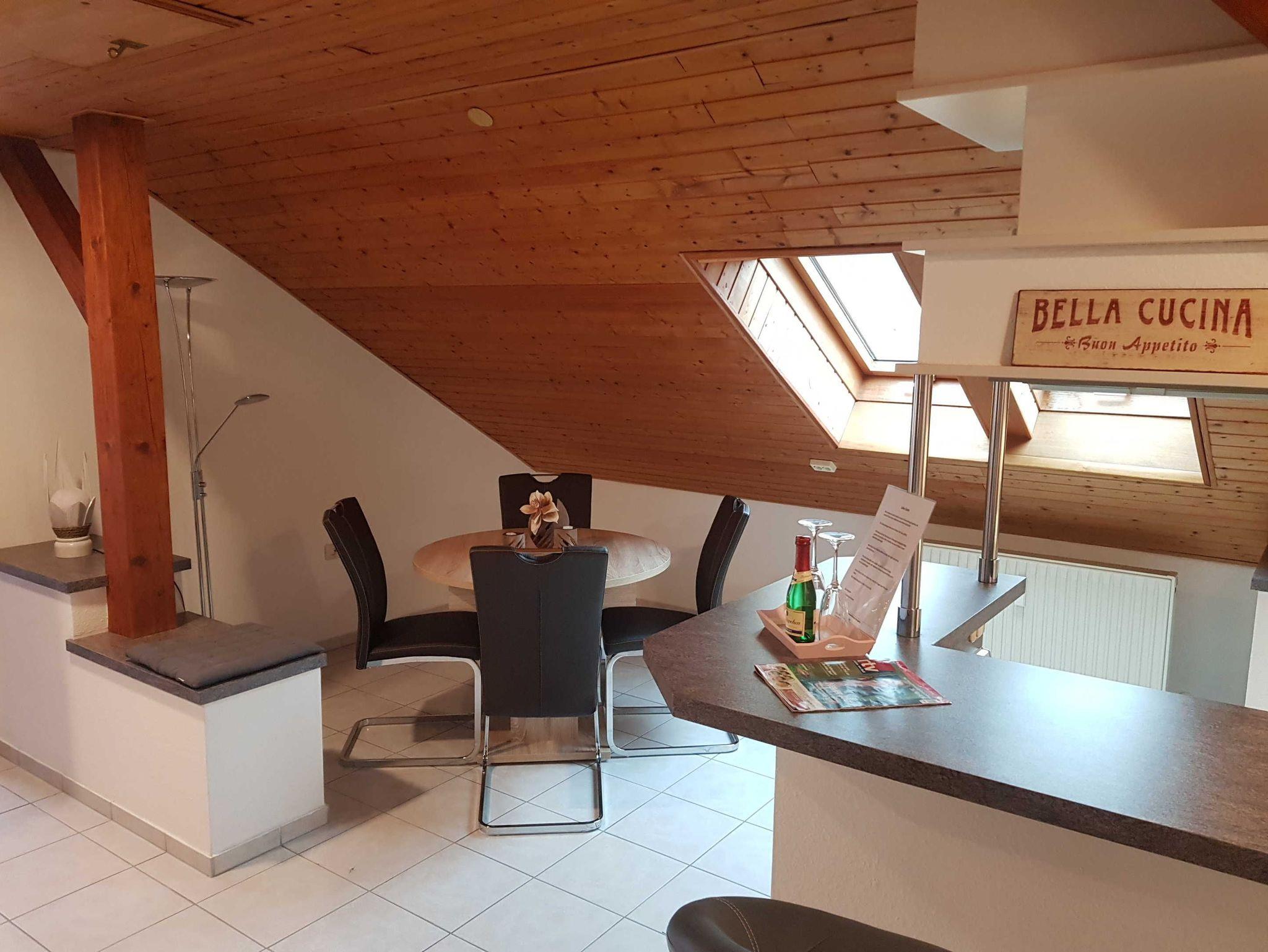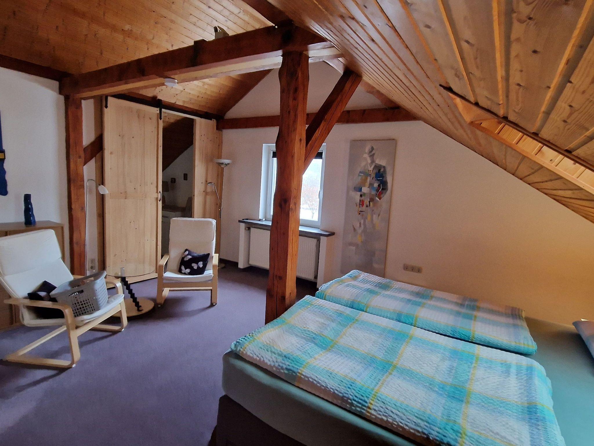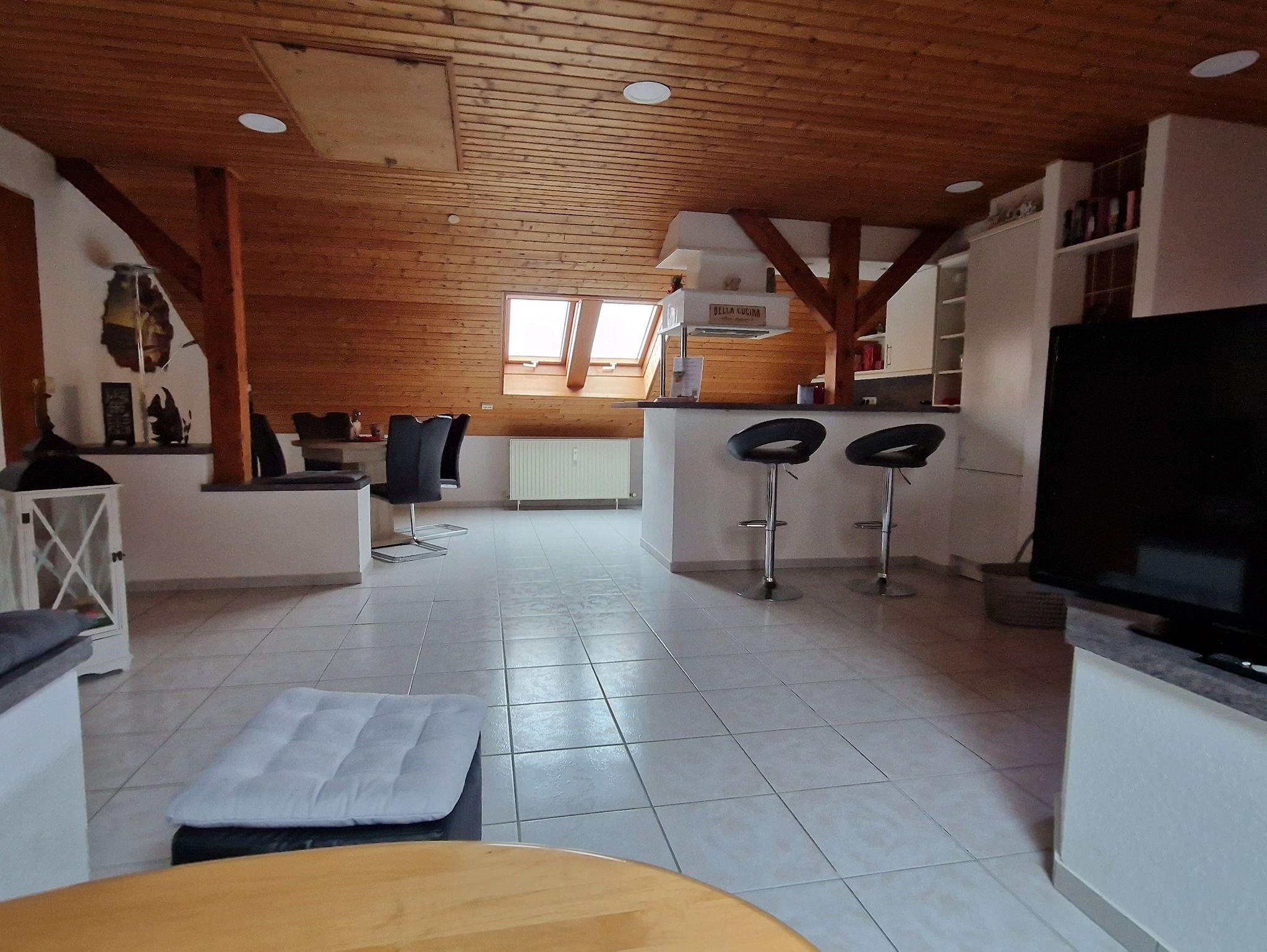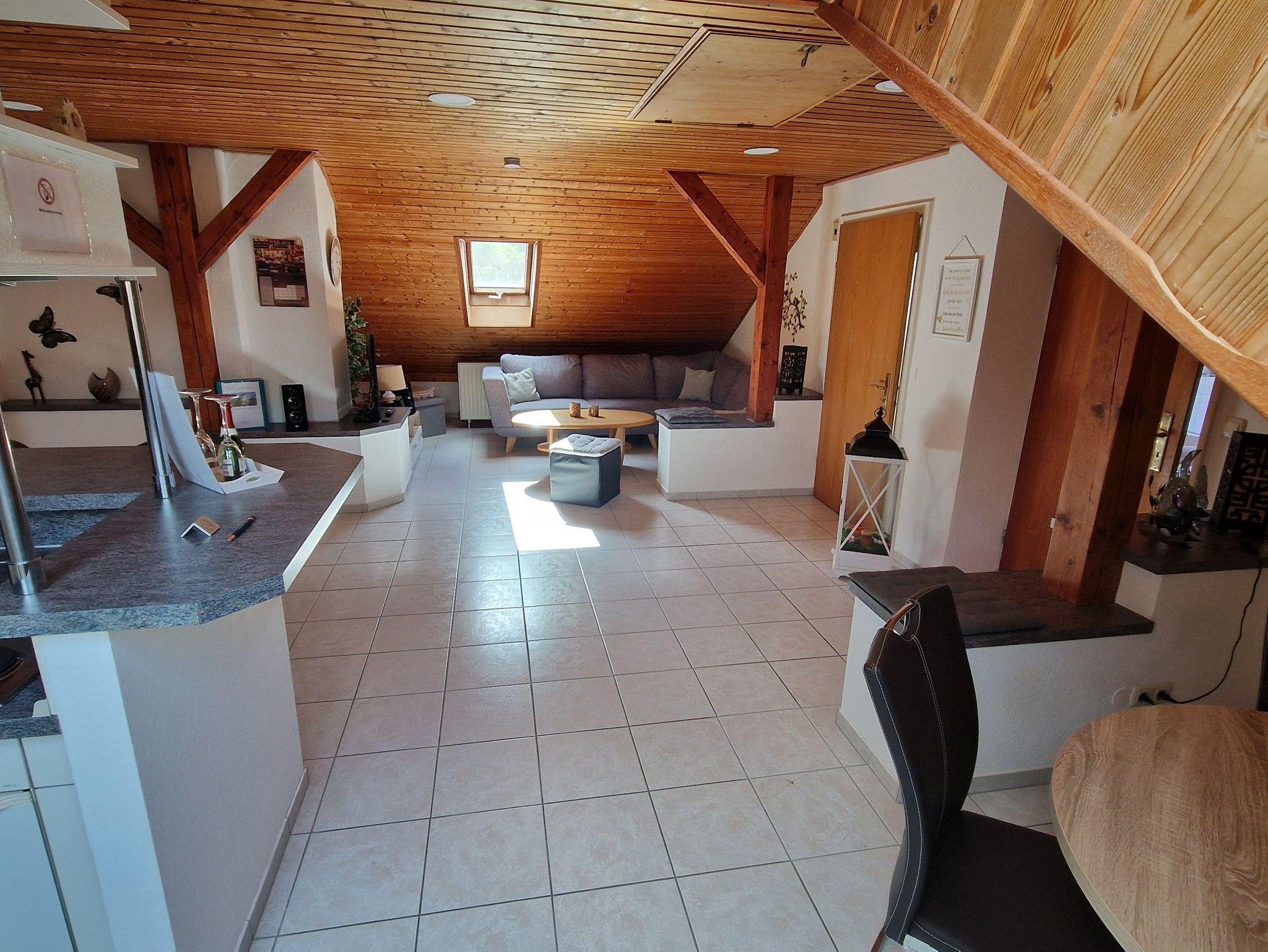 Die große und komfortable Mansarden-Ferienwohnung befindet sich im 2. Obergeschoss (Treppen) des Hauses und hat ca. 70 qm.