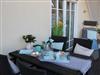Ein besonderes Plus: der idyllische Hofgarten mit gemütlichem Freisitz unter Weinreben - ein wunderbarer Ort zum Entspannen.