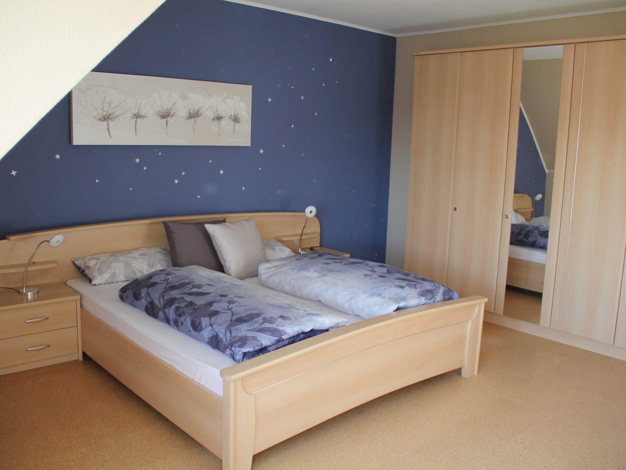 - Schlafzimmer 1 (21 m²) mit Doppelbett (1,80 x 2,00 m), Nachttischen, großem Kleiderschrank mit Spiegel und Chaiselongue