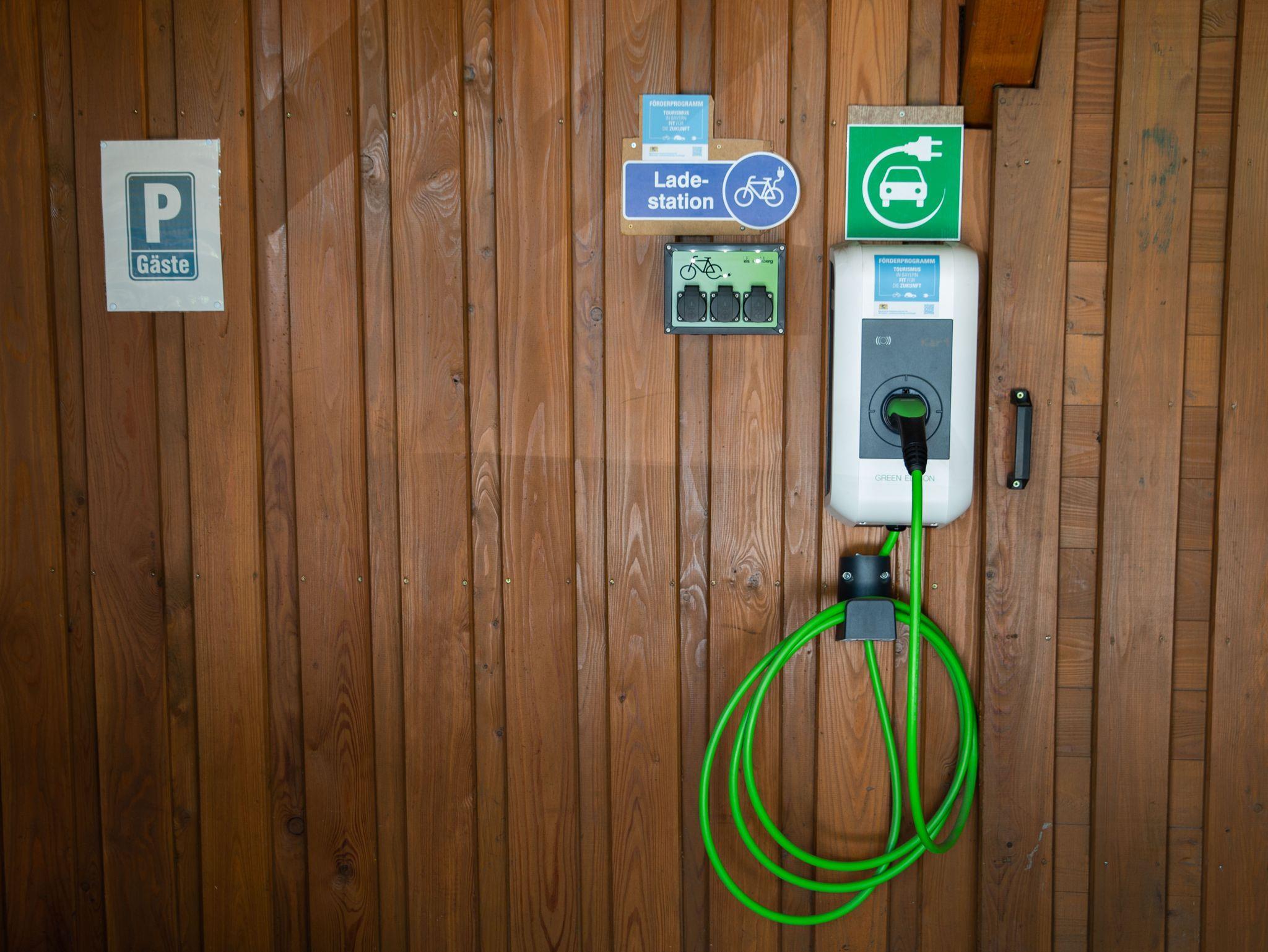 Eine Wallbox für E-Autos sowie eine Ladestation für E-Bikes stehen zur Verfügung.
