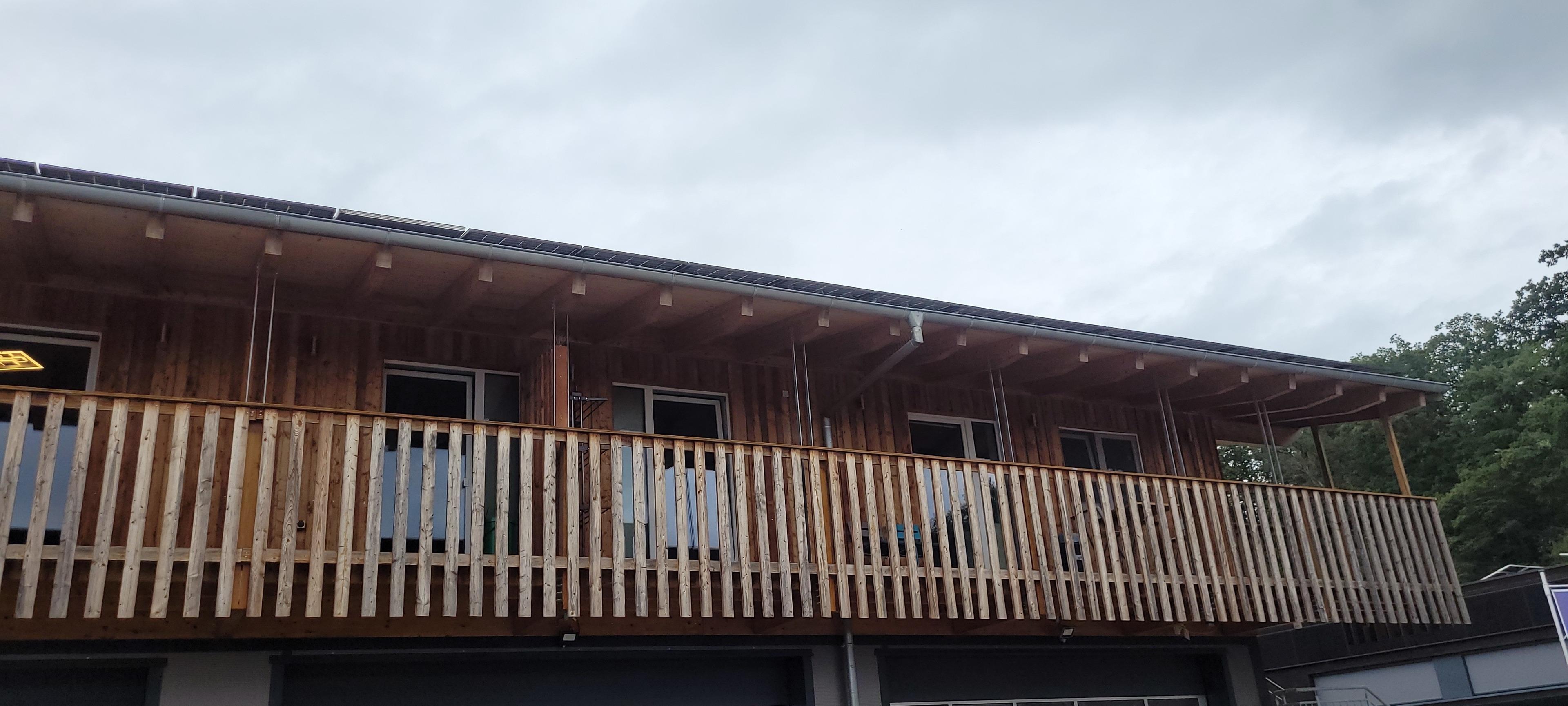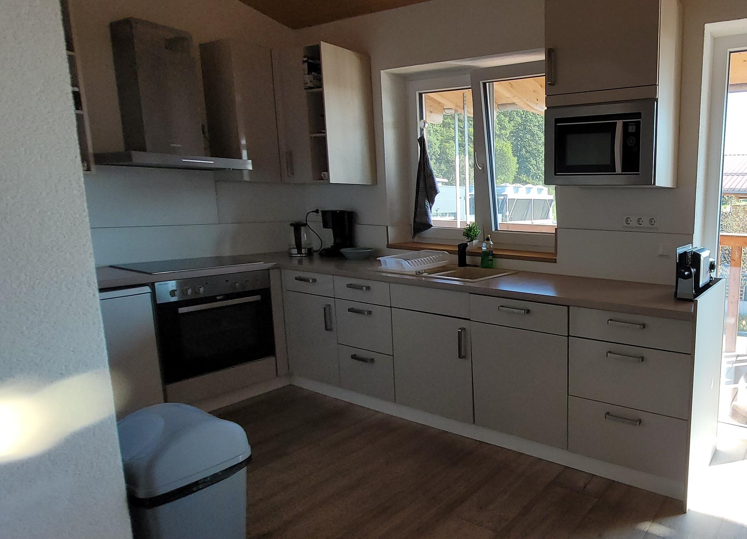 Am Waldrand gelegene schönes neues 3 Zimmer Apartment, mit 2 einzelnen Schlafzimmer in einem Holzgebäude. Ca.8 km von der A8 gelegen.