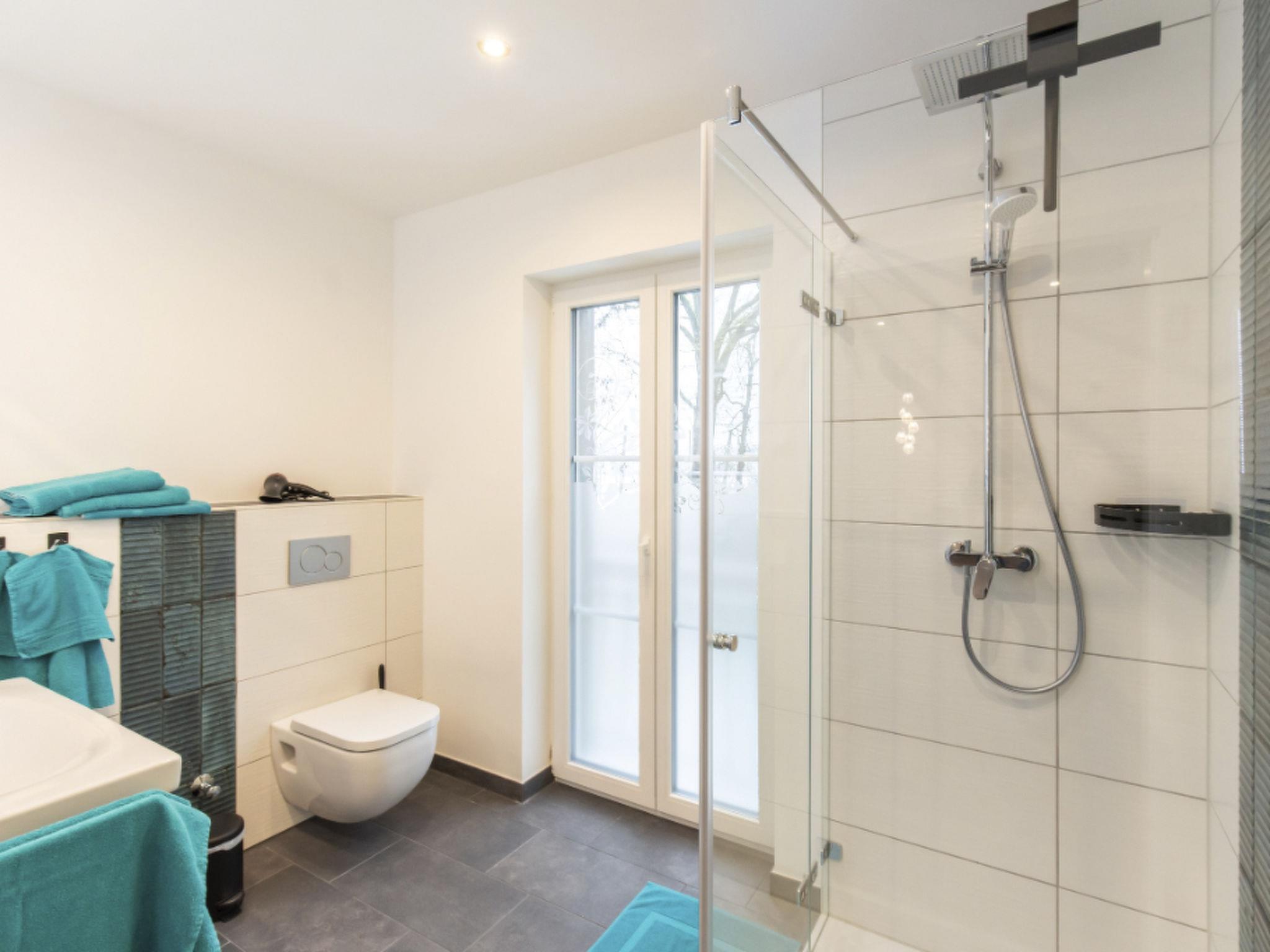 The flat with approx. 50 square metres is located on the 1st floor, accessible via a bright staircase with motion detectors.