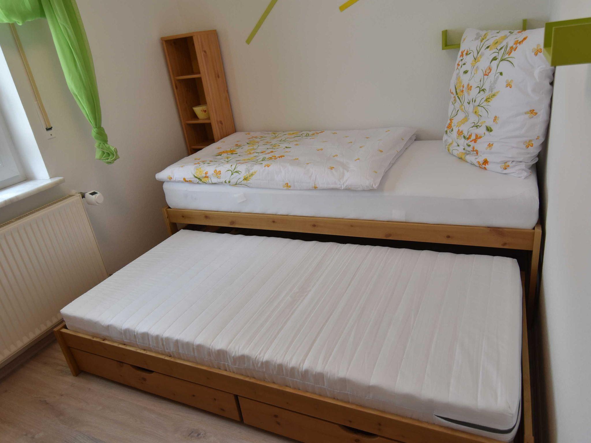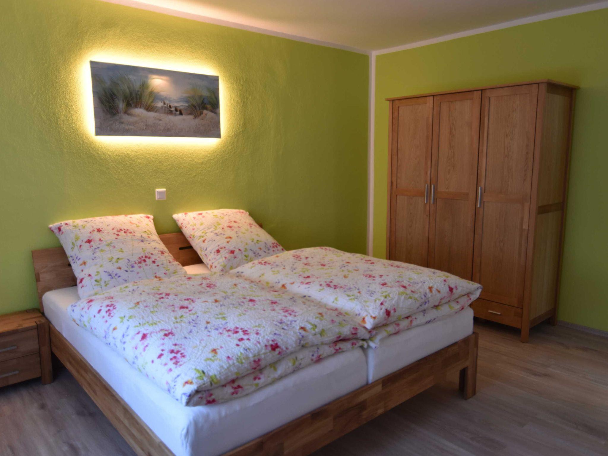 Die Ferienwohnung Sunlight umfasst zwei Schlafzimmer. Ein Schlafzimmer ist mit einem Doppelbett ausgestattet. Das zweite kleinere Schlafzimmer verfügt über ein Funktionsbett zum ausziehen.