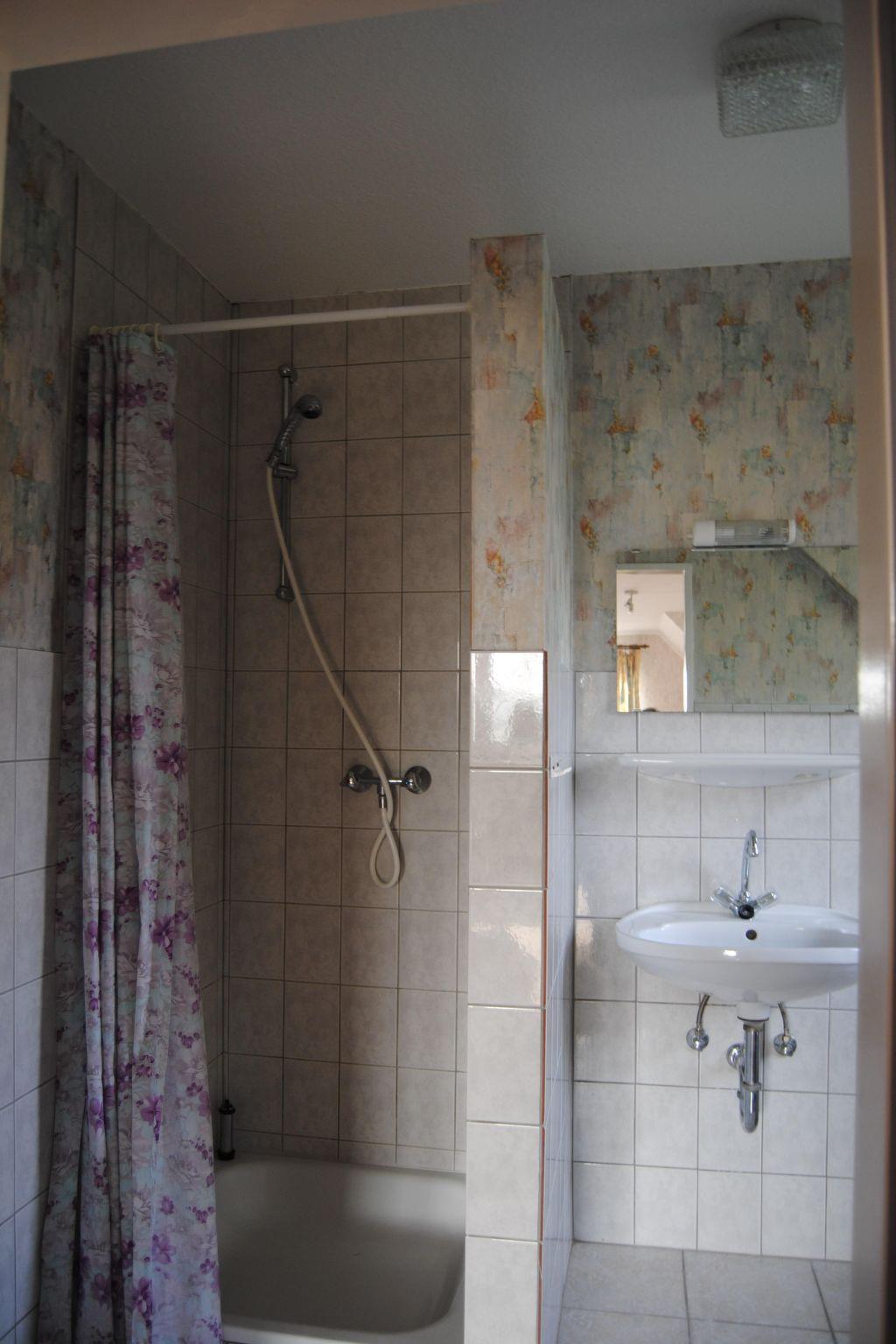 The one-room flat is comfortably furnished and offers space for a maximum of three people and is approx. 45m² in size. The room is furnished with a double bed (2 x 0.90m x 2.00m) and a single bed (0.90m x 2.00m). It has its own kitchen and bathroom with shower and WC. The kitchenette is fully equipped with cutlery and crockery and also has a coffee machine and kettle. There is central heating, radiators can be found in every room.