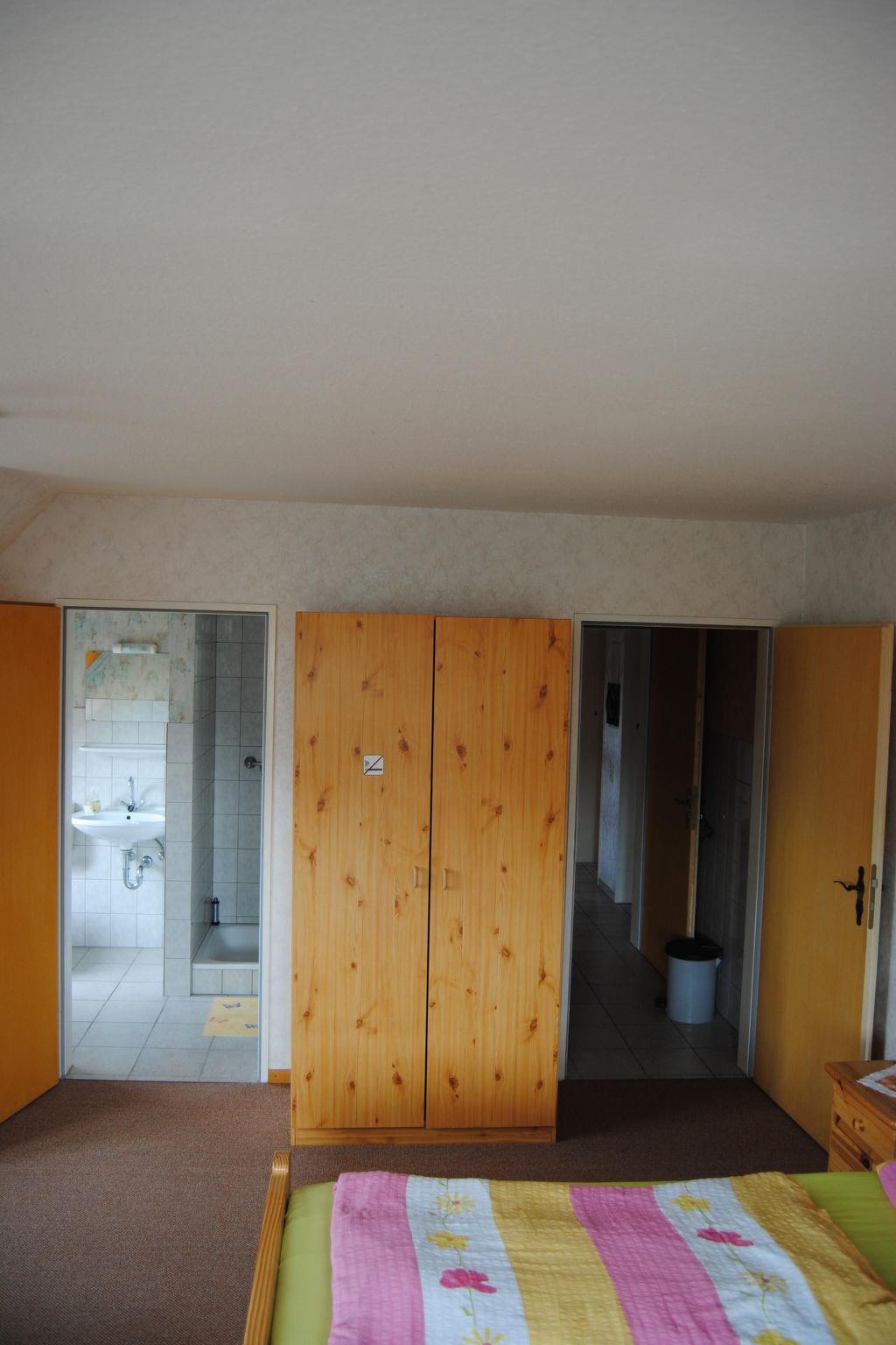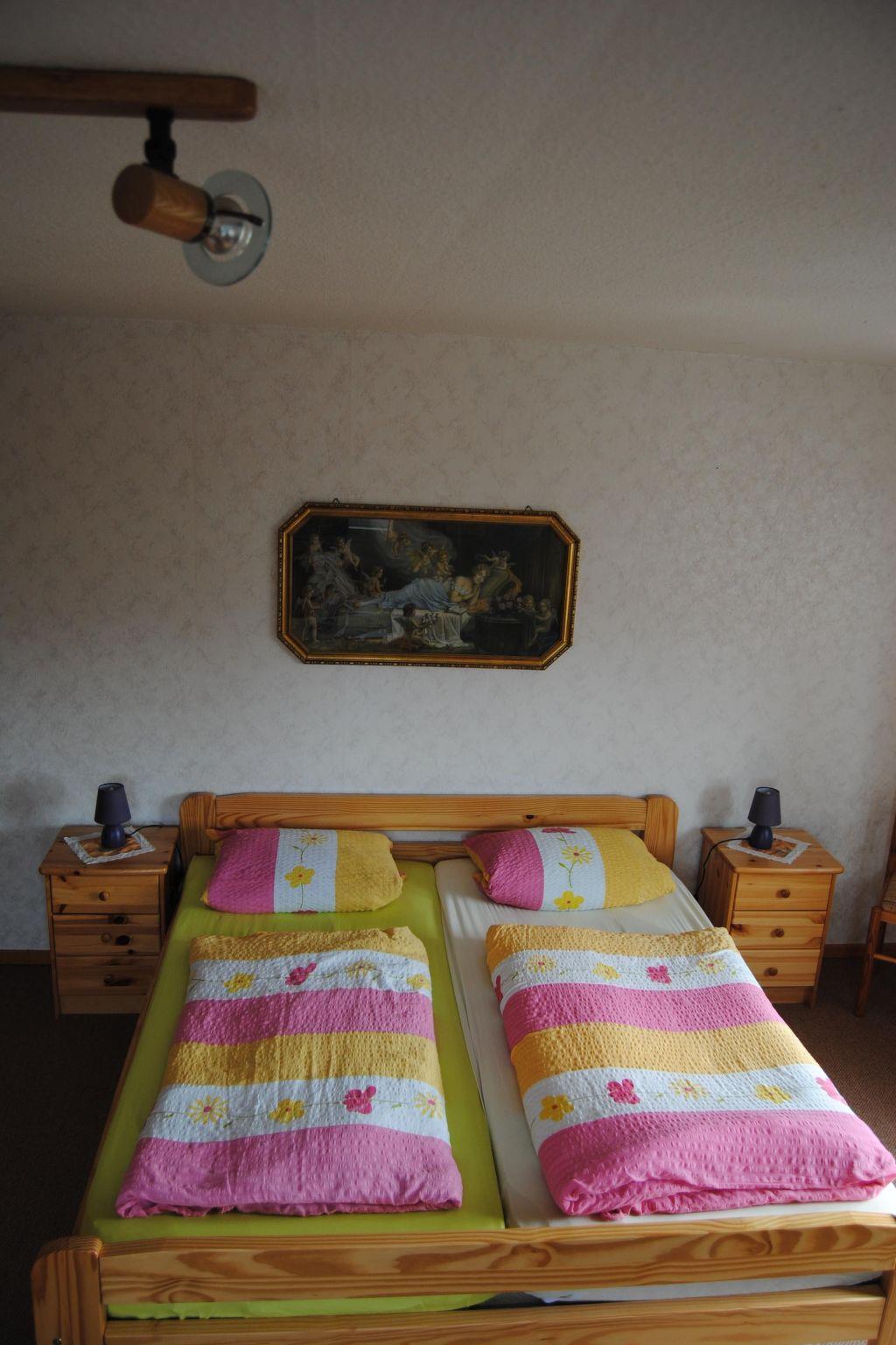The one-bedroom flat is cosily furnished and offers space for a maximum of three people and is approx. 35m² in size. The room is furnished with a double bed (2 x 0.90m x 2.00m) and a single bed (0.90m x 2.00m). It has its own kitchen and bathroom with shower and WC. The kitchenette is fully equipped with cutlery and crockery and also has a coffee machine and kettle. There is central heating and radiators in every room.