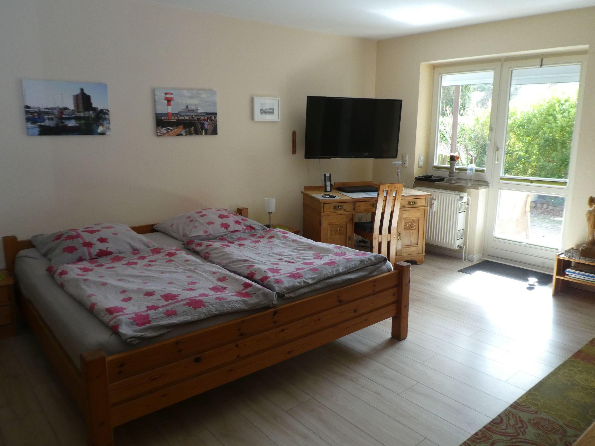 The cosy holiday flat has recently been completely renovated. The living room/bedroom with its large double bed (2m x 2m) offers a comfortable and spacious place to sleep. Even if a small child crawls into bed at night, there is still enough space for everyone. But there is also a travel cot (up to 3-4 years) available. A cosy sofa bed is available for a third person/larger child. There is also a computer/laptop with WLAN internet access, CD/DVD player and a large flat-screen TV. A very well-equipped fitted kitchen with ceramic hob, modern convection oven, dishwasher, microwave, coffee machine, hot water maker, toaster etc. completes the beautiful flat.