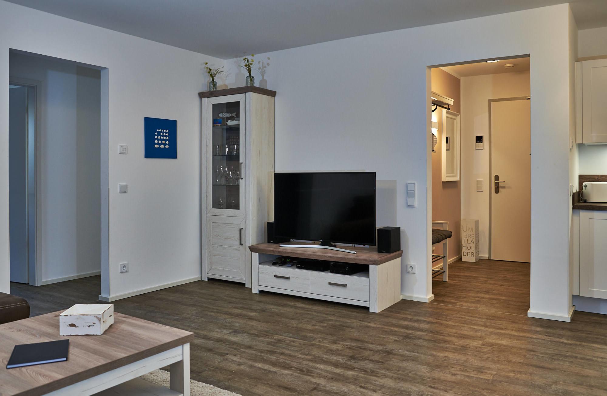 Der harmonisch und modern eingerichtete Wohn- und Essbereich, mit voll ausgestatteter Küche, la¨dt zum gemeinsamen Entspannen und Kochen ein! Die Ferienwohnung verfügt über einen sonnigen Balkon und eine Innenhofterrasse.